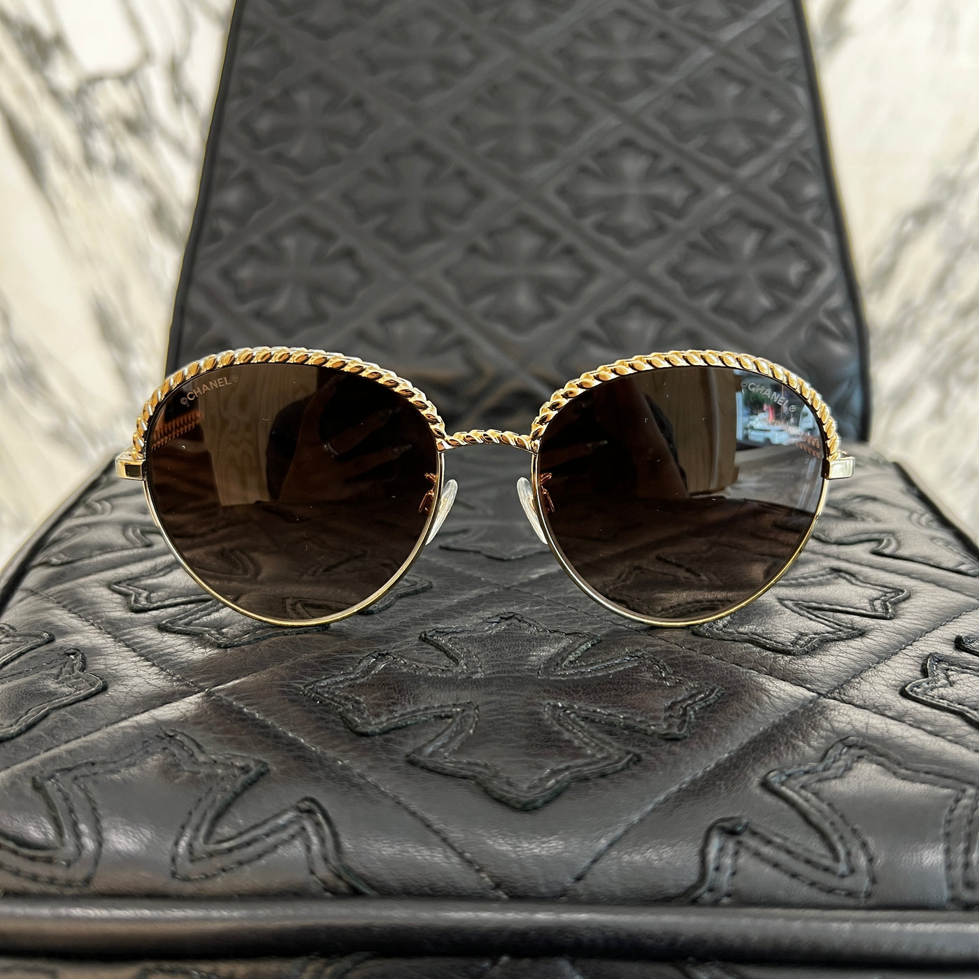 CHANEL 2019SS Chain Around Coco Chain Panto Shape Sunglasses 4242 C395-S5 Size 55□17 135 シャネル チェーンアラウンド ココチェーンパントシェイプ サングラス サイズ55□17 135