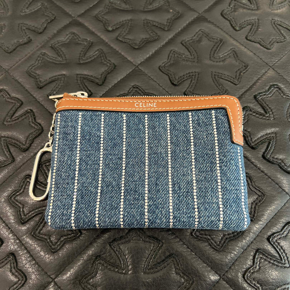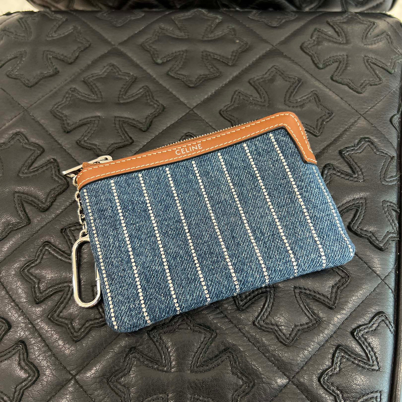 CELINE 2025SS Rhinestone Stripes Denim Coin Case 10C662GEU.07FX セリーヌ ラインストーンストライプ デニムコインケース