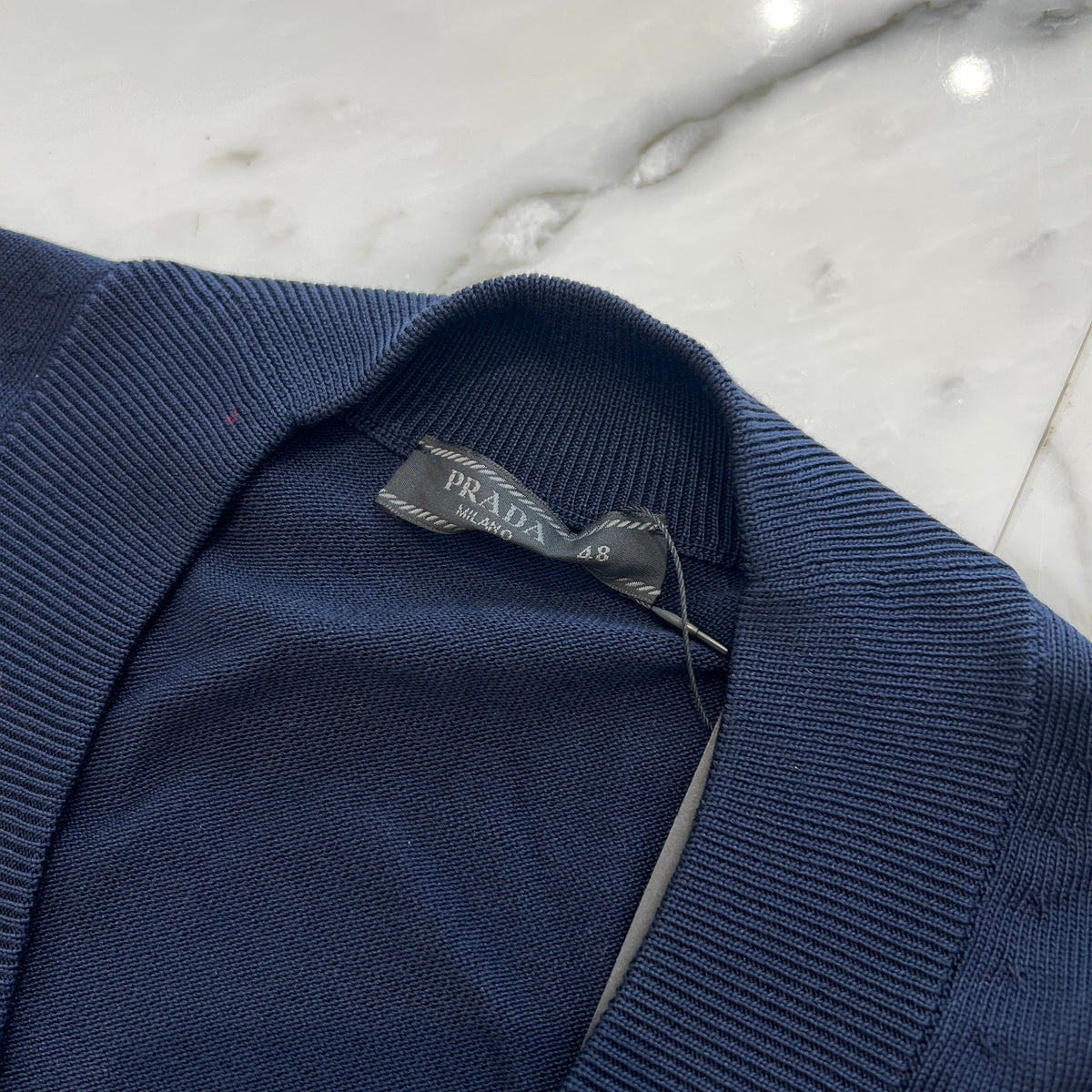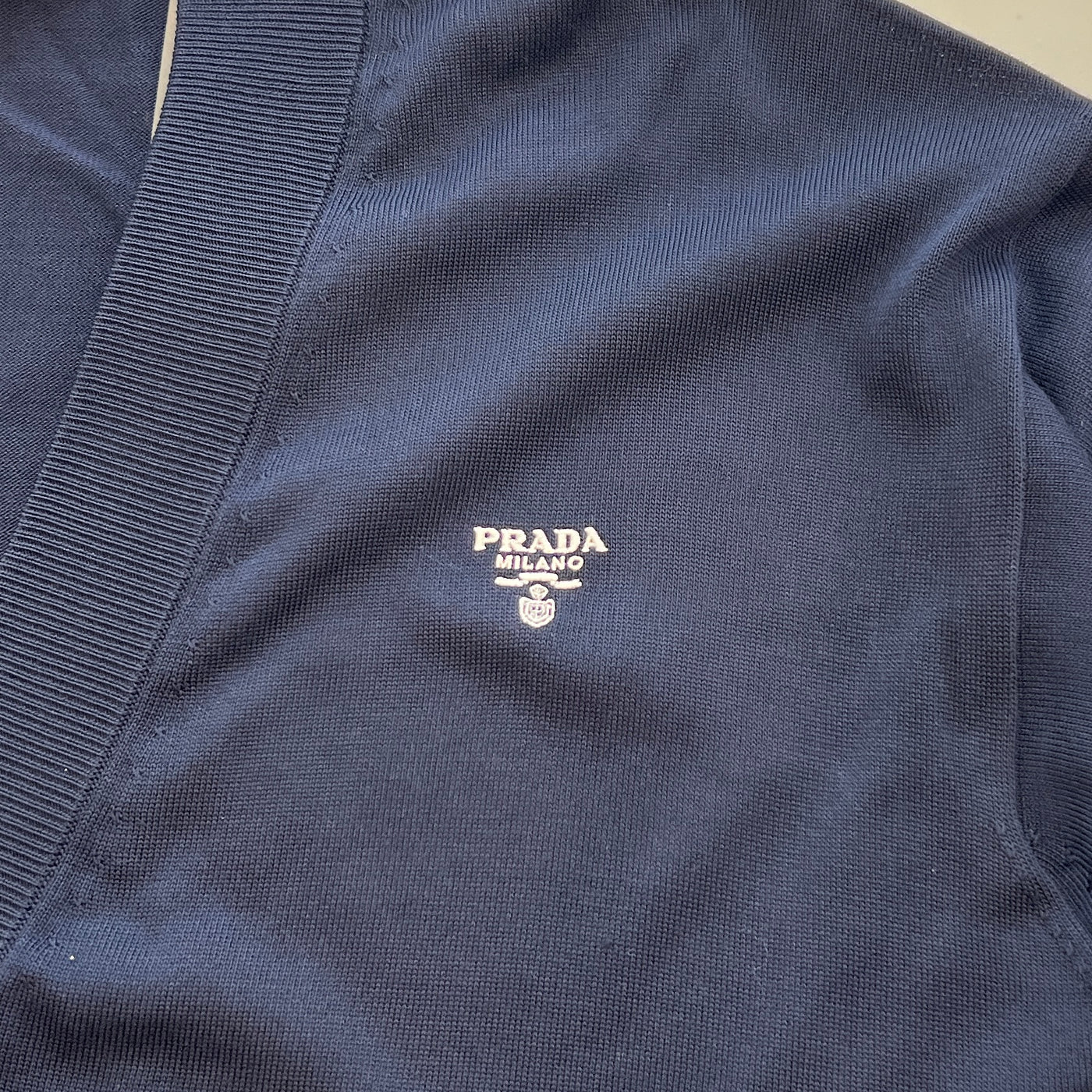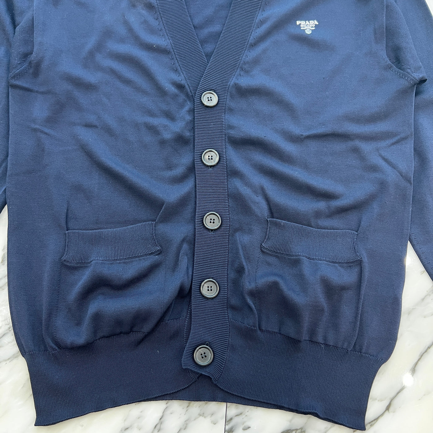 PRADA 2023AW Logo Embroidered V-Neck Silk Cardigan Size 48 プラダ ロゴ刺繍Vネックシルクカーディガン サイズ48