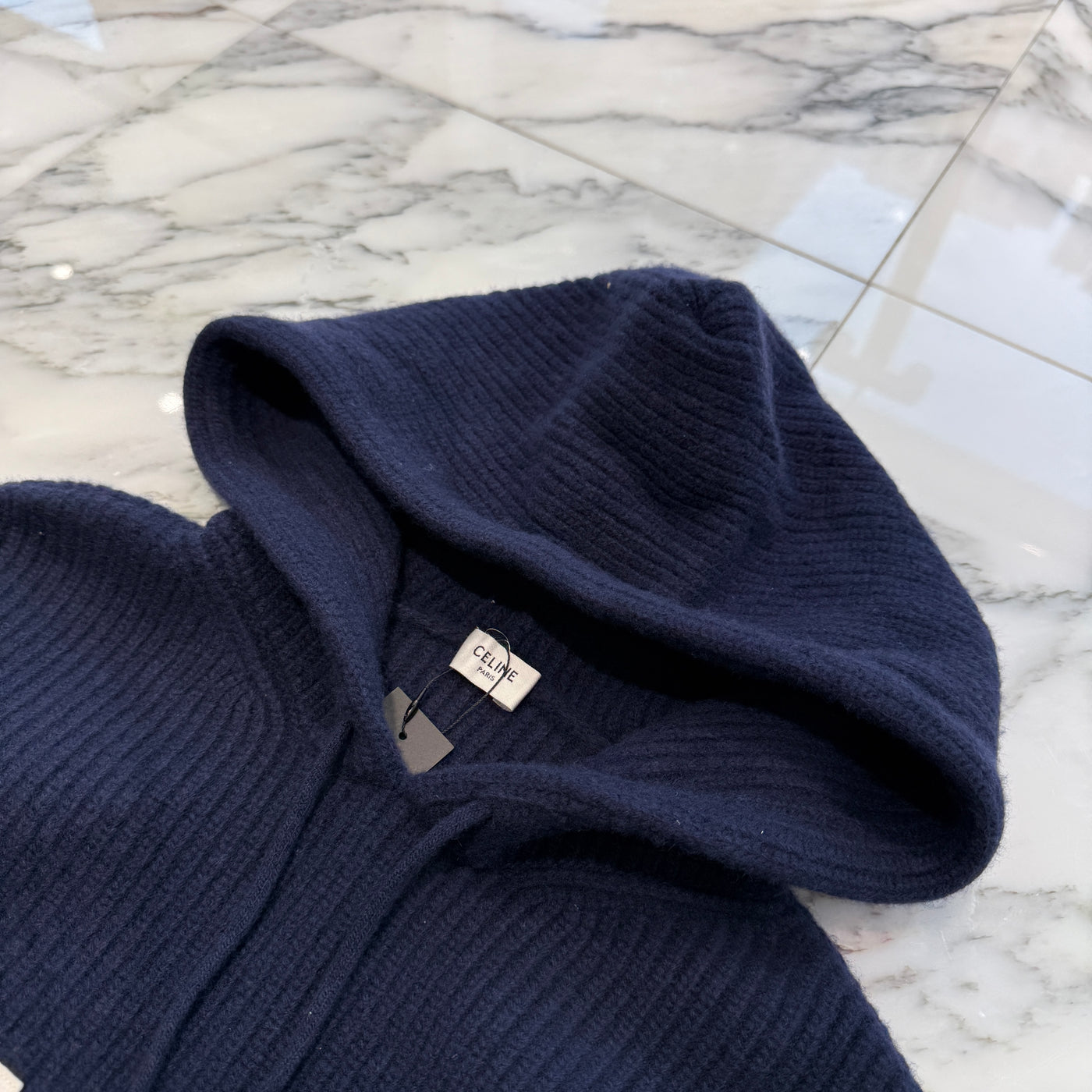 CELINE 2021AW Logo Patch Pullover knit Hoodie 2A85W423P Size XS セリーヌ ロゴパッチ プルオーバー ニットフーディ サイズXS