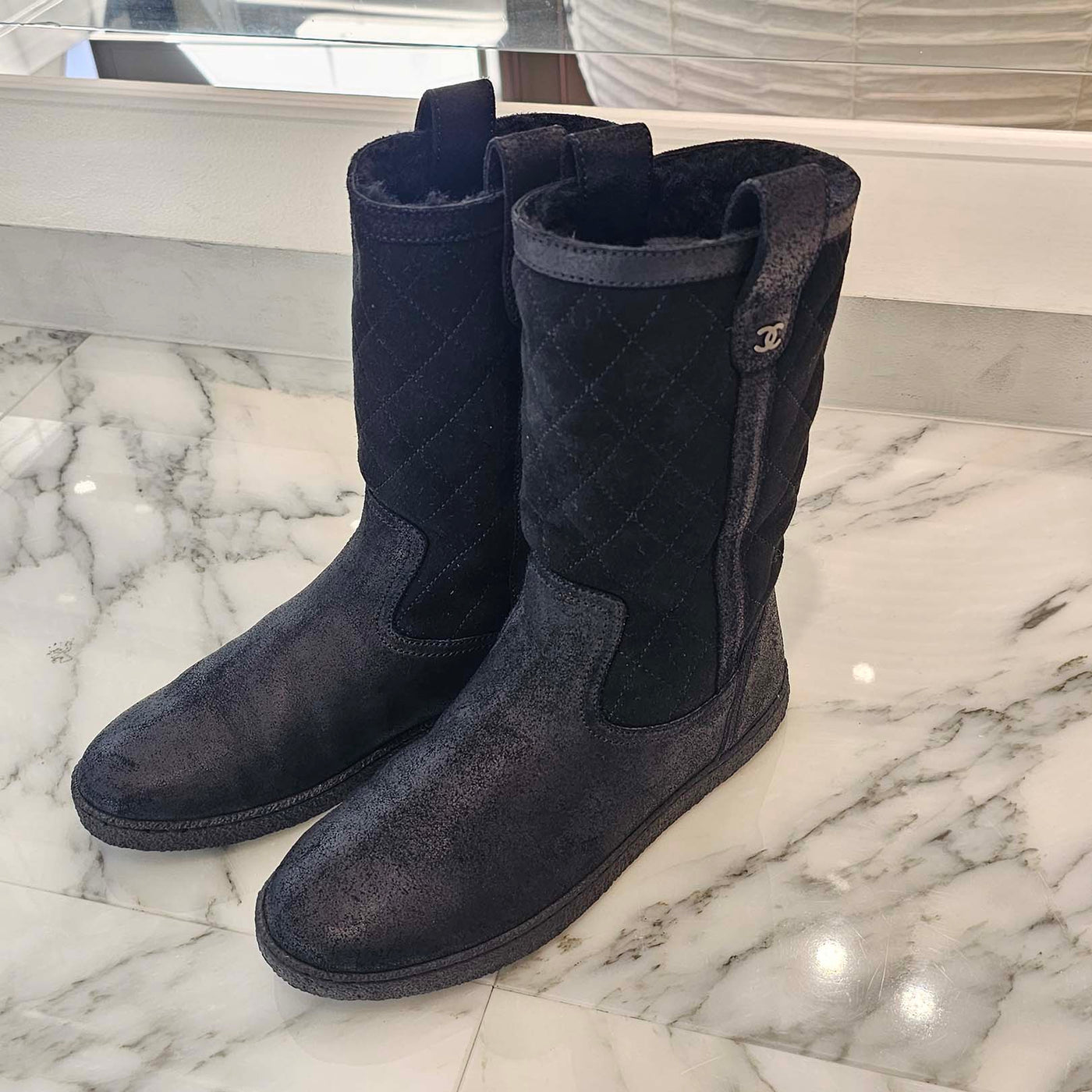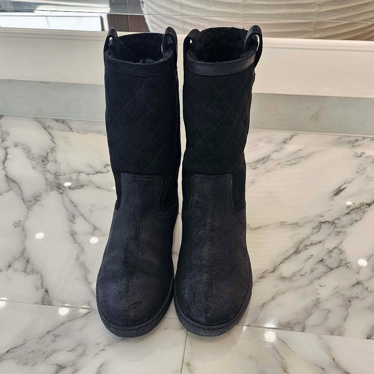 CHANEL Matelasse Coco Mark Suede Sheepskin Boots Size 36 シャネル マトラッセココマークスエードムートンブーツ サイズ36