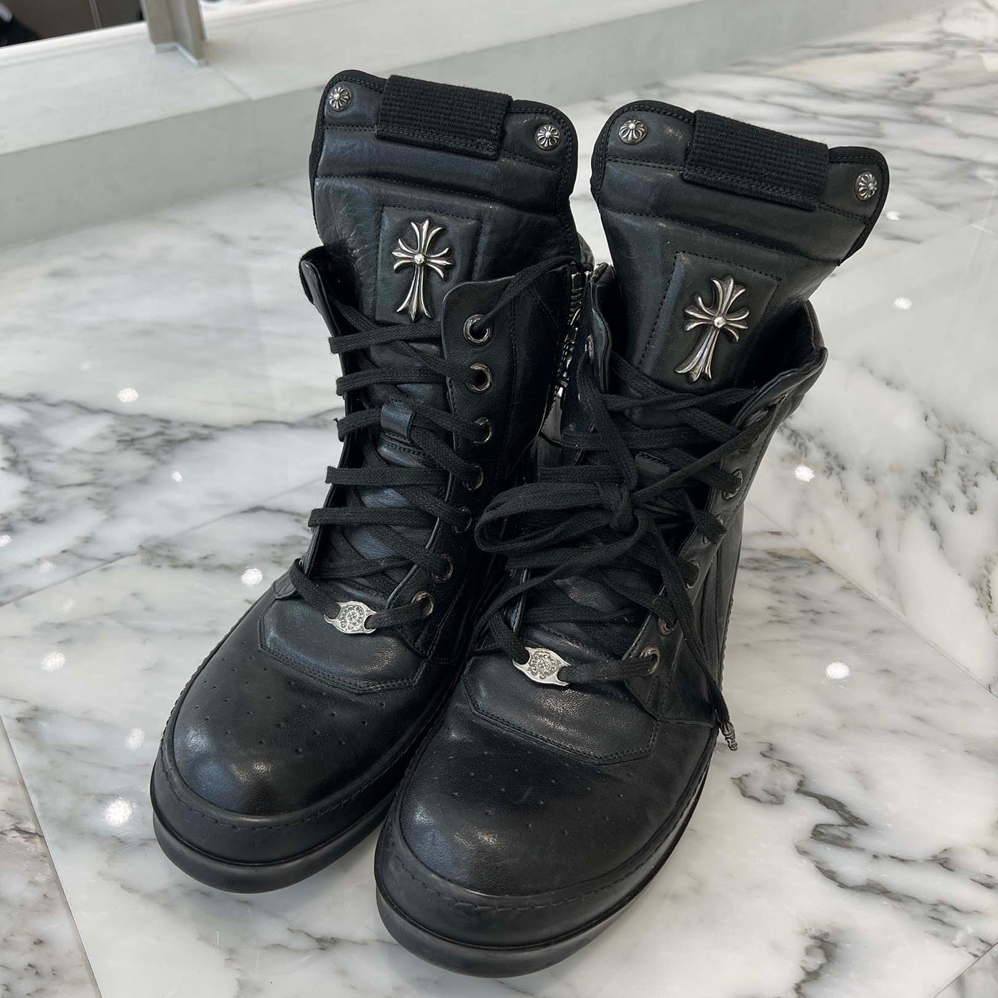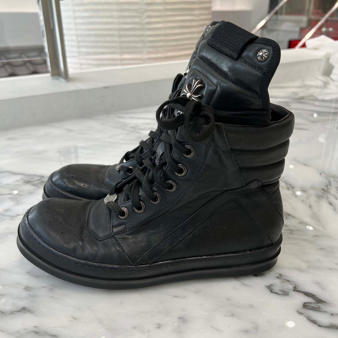 CHROME HEARTS × Rick Owens Geobasket Leather Sneakers Size 43 (27.5cm) クロムハーツ×リックオーエンス ジオバスケット レザースニーカー サイズ43 (27.5cm)