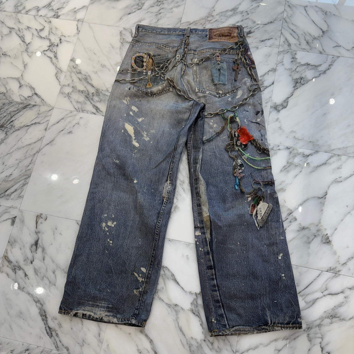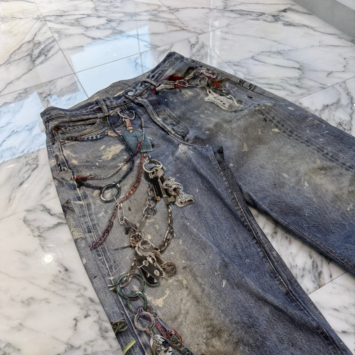 Acne Studios 2024SS Trompe L'oeil Chain Graphic Over Denim Pants FN-MN-TROU001020 Size 48 アクネストゥディオズ トロンプルイユ チェーングラフィックオーバーデニムパンツ サイズ48