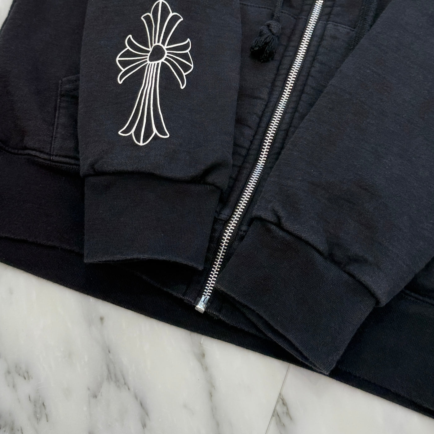 CHROME HEARTS Back Cemetery Cross Scroll Logo Print Zip Up Hoodie Size M クロムハーツ バックセメタリークロス スクロールロゴ プリント ジップアップフーディ サイズM