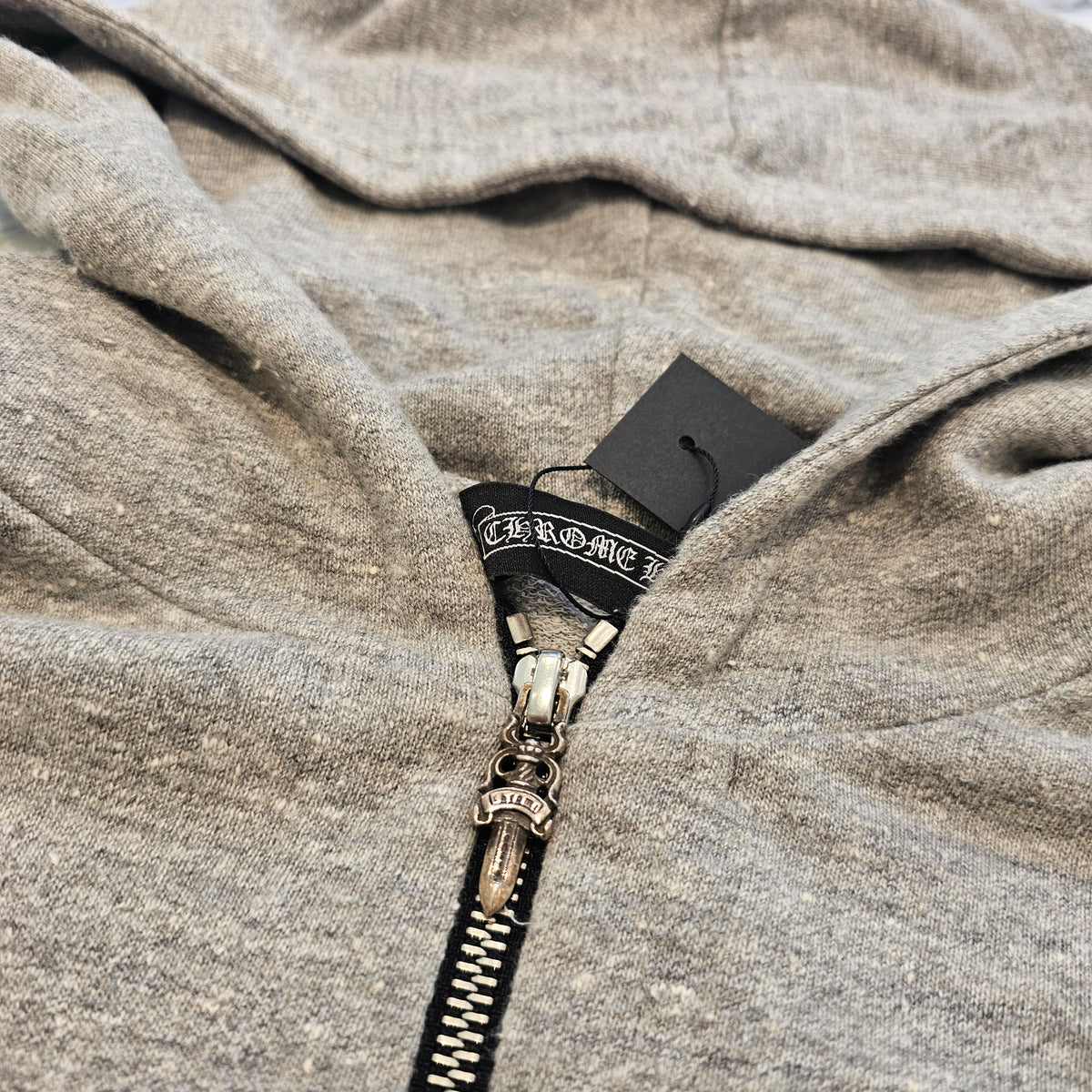 CHROME HEARTS Half Zip Leather Cross Patch Pullover Hoodie Size M クロムハーツ ハーフジップ レザークロスパッチ プルオーバー フーディ サイズM