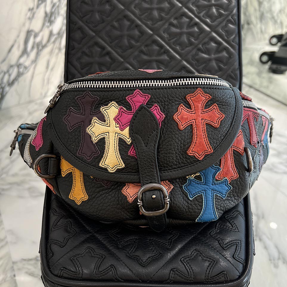 CHROME HEARTS Multi Color Cemetery Cross Patch 1 SNAT PACK MEDIUM LEATHER WAIST BAG クロムハーツ マルチカラー セメタリークロスパッチ 1スナットパック ミディアムレザー ウェストバッグ