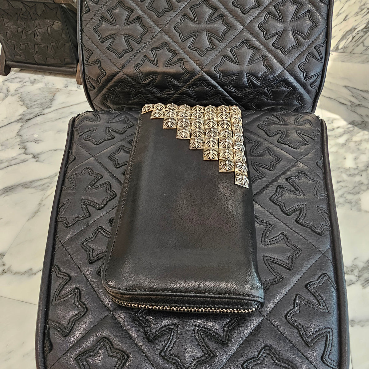 CHROME HEARTS REC F ZIP Pyramid Studs Leather Wallet クロムハーツ REC F ジップ ピラミッド スタッズ レザーウォレット