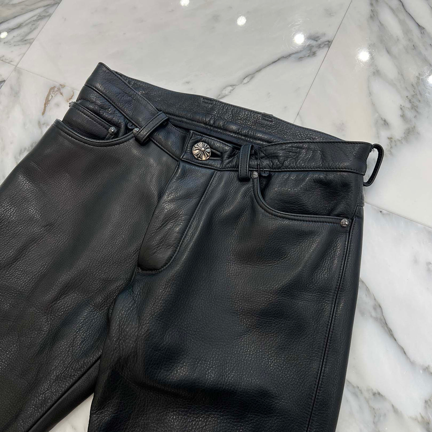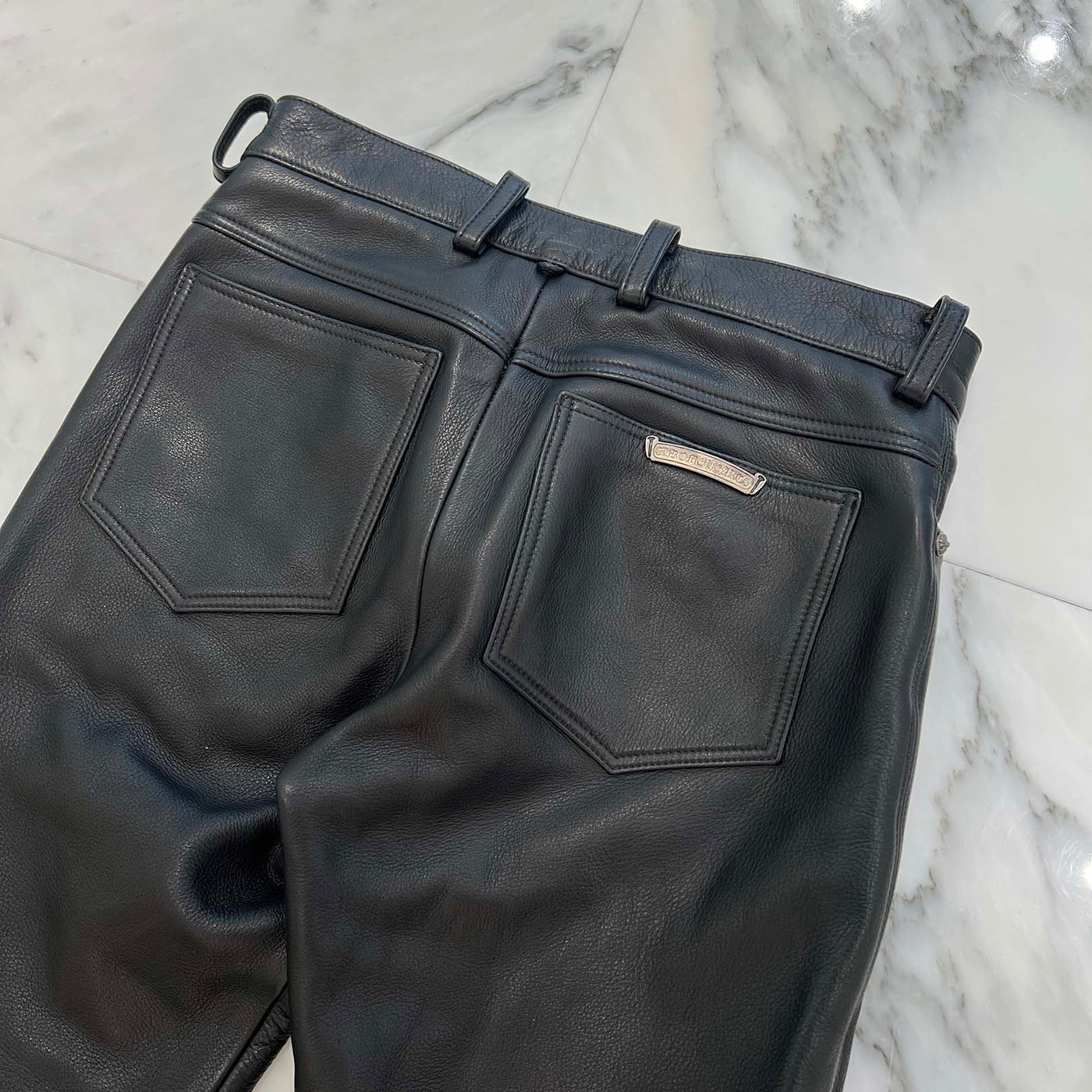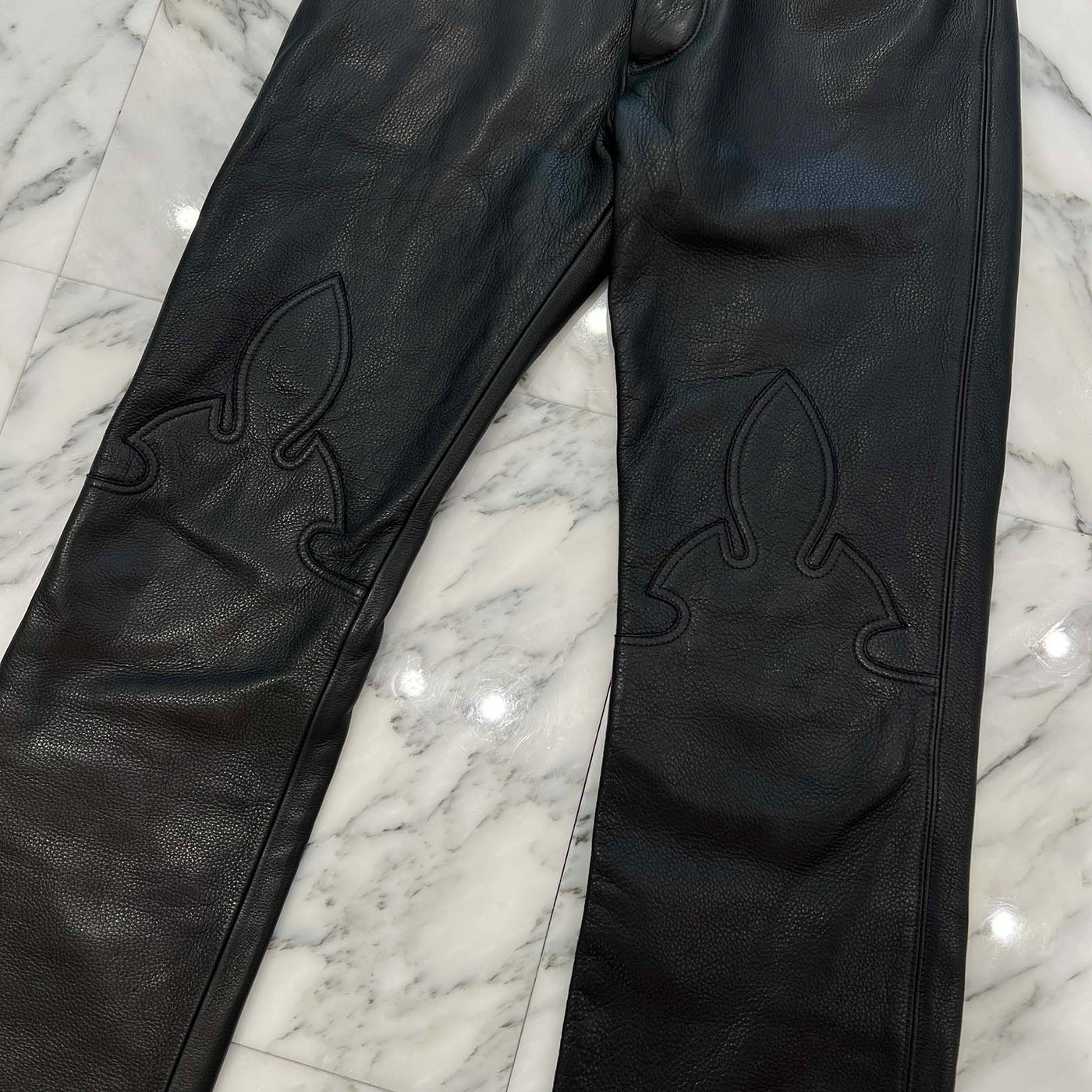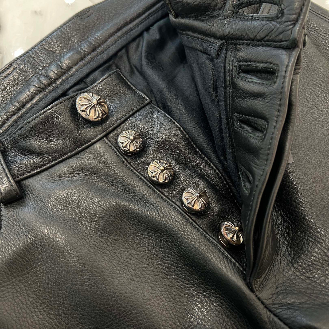 CHROME HEARTS Flare Knee Cross Ball Button Leather Pants Size 30 クロムハーツ フレアニー クロスボールボタン レザーパンツ サイズ30