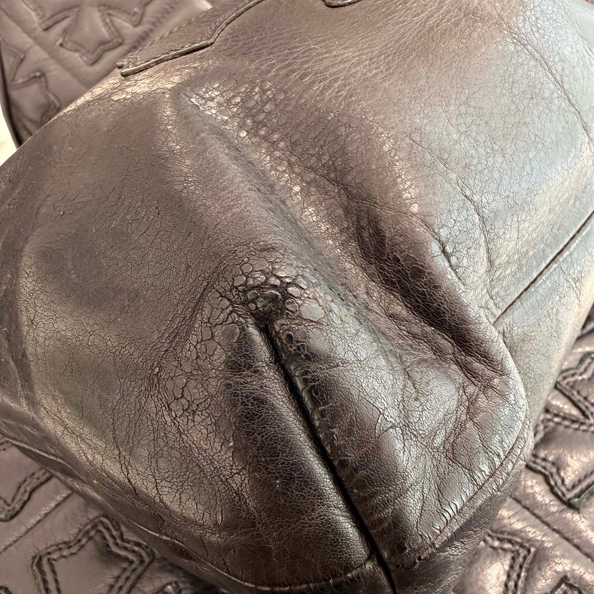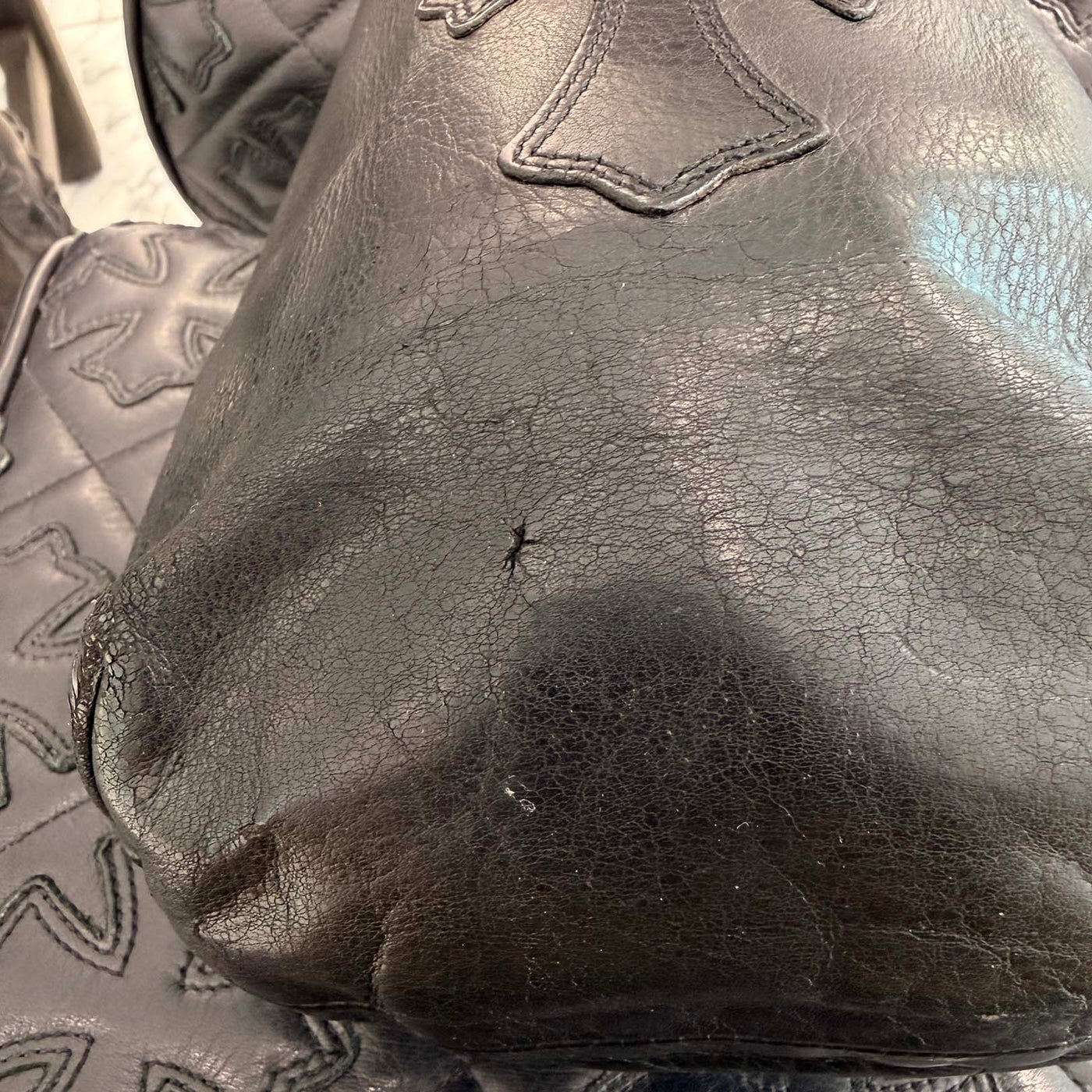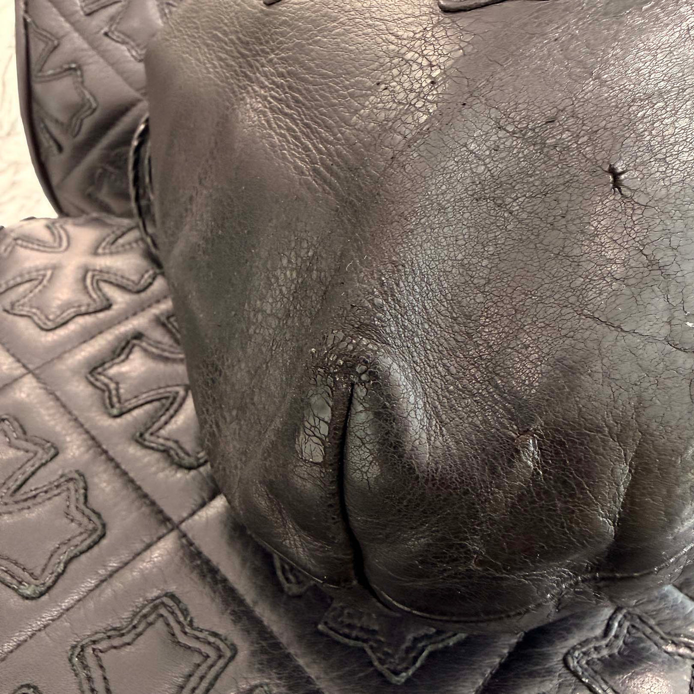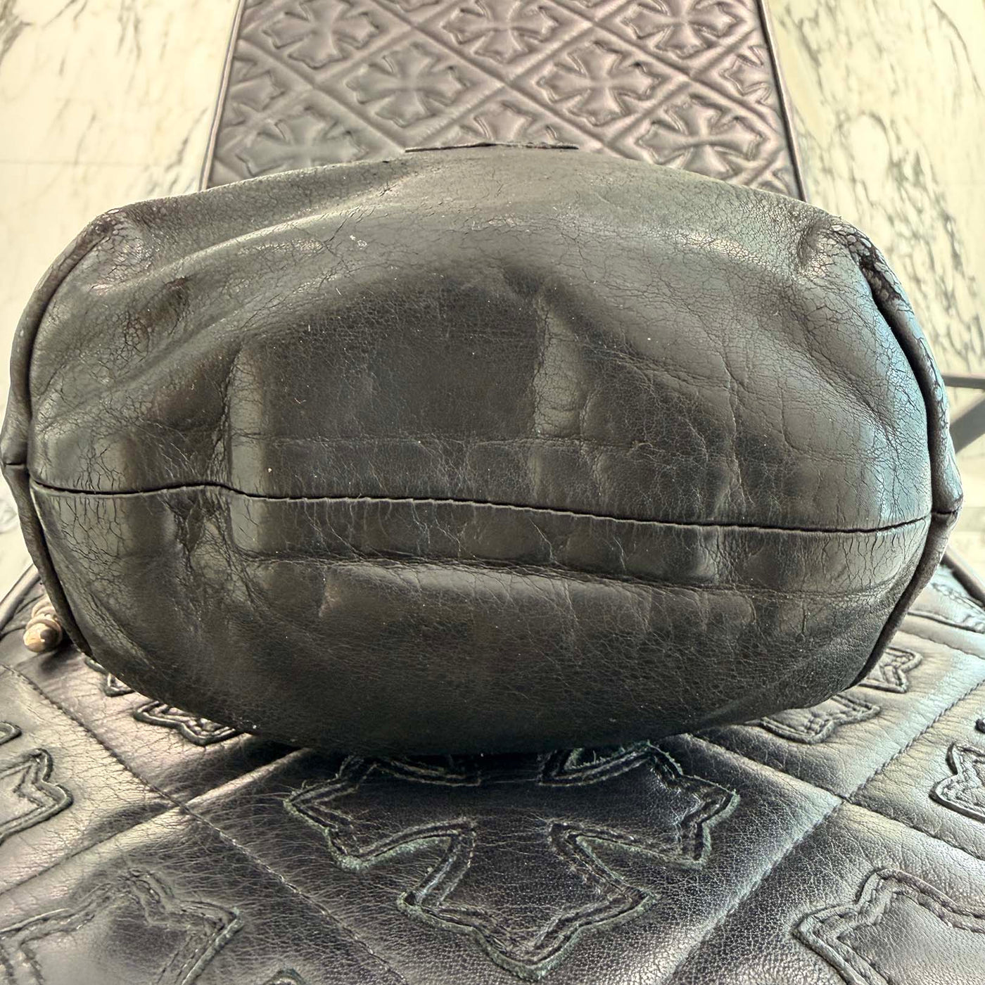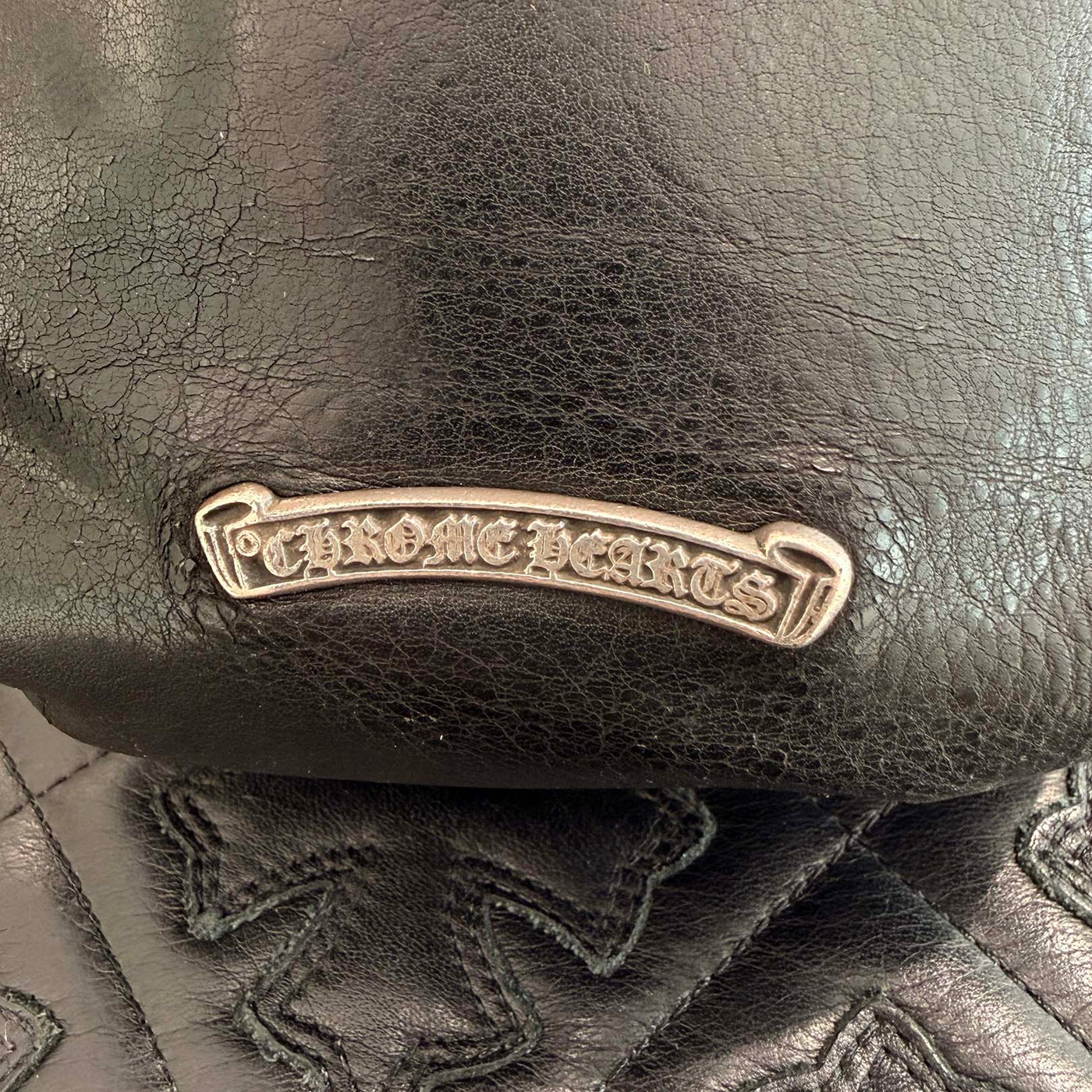 CHROME HEARTS Leather Cross Patch Drawstring Sack Leather Bag クロムハーツ レザークロスパッチ ドローストリング サックレザーバッグ 巾着