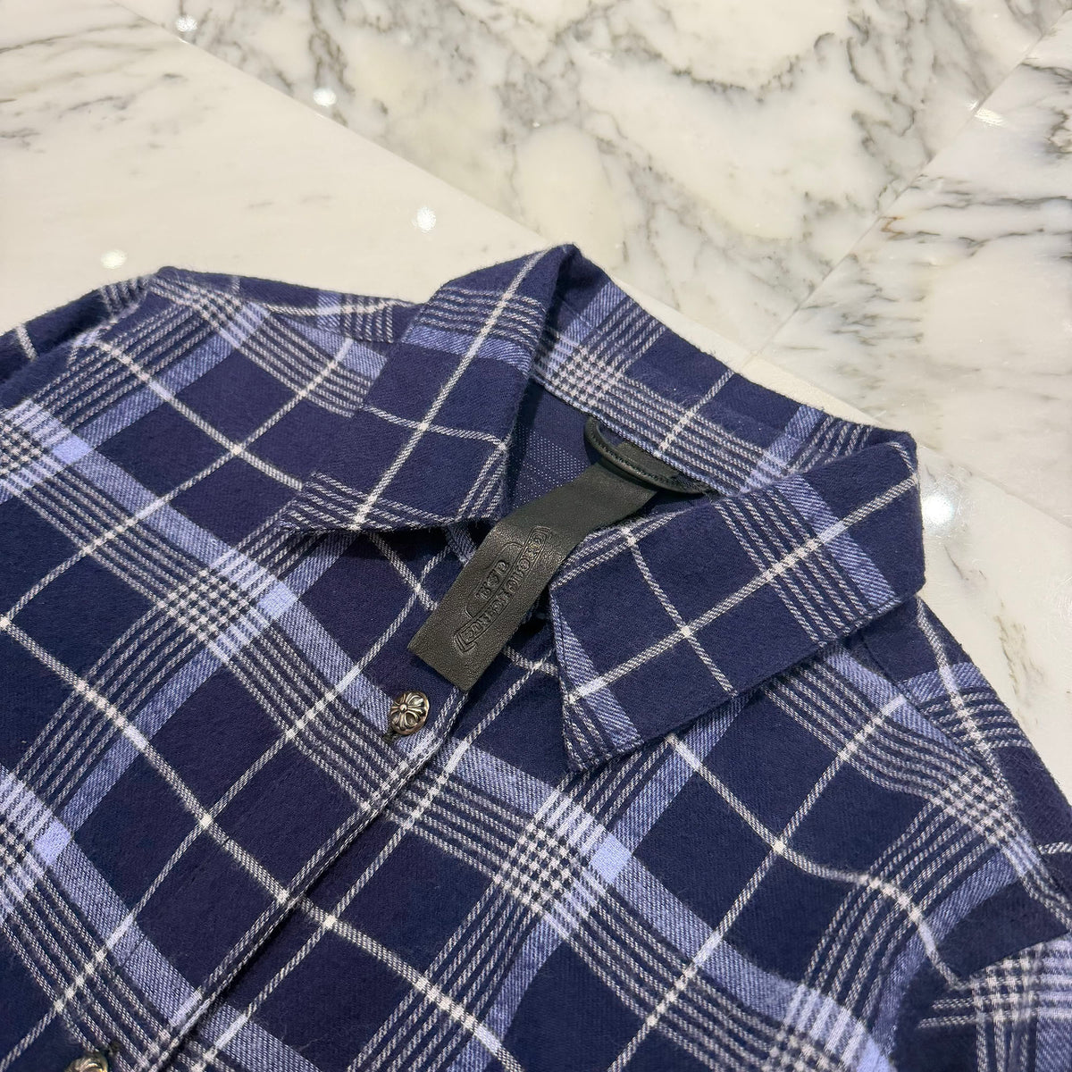 CHROME HEARTS Loose Ends Cross Patch Back Flare Knee Flannel Check Shirt Size S クロムハーツ ルーズエンド クロスパッチ バックフレア ニー フランネル チェックシャツ サイズS