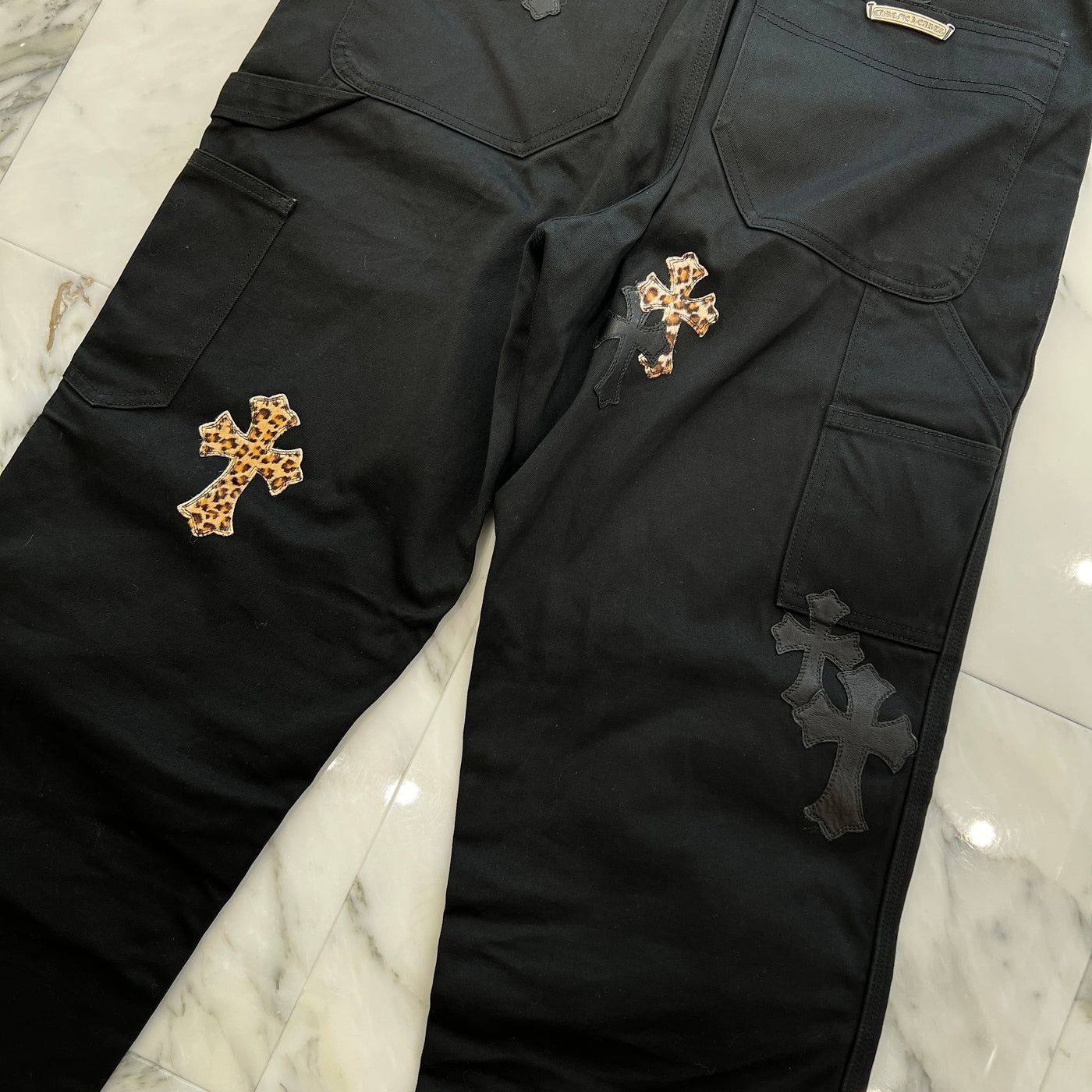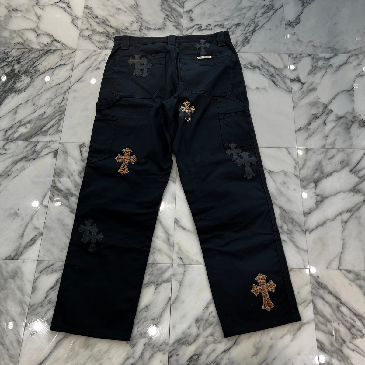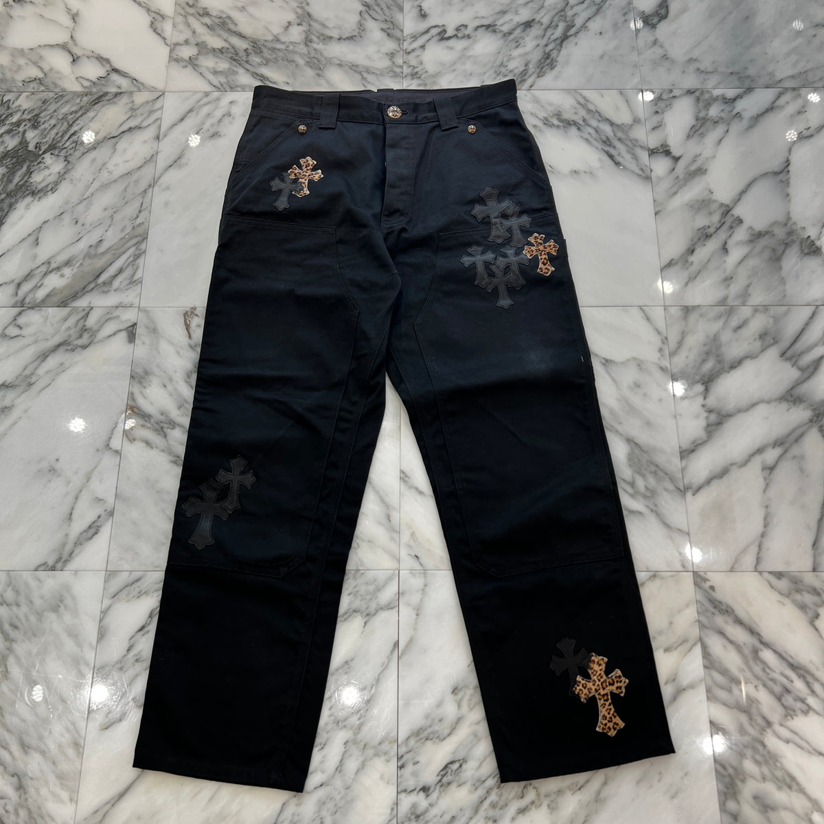 CHROME HEARTS Multi Leather Patch Carpenter Cross Ball Button Denim Pants Size 36 クロムハーツ マルチレザーパッチ カーペンター クロスボールボタン デニムパンツ サイズ36