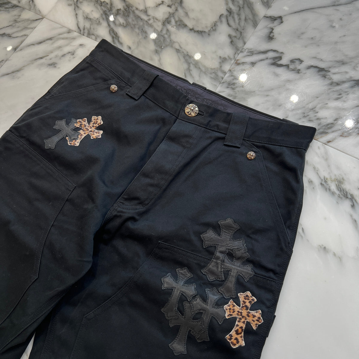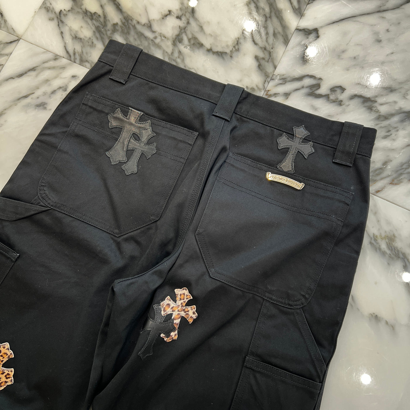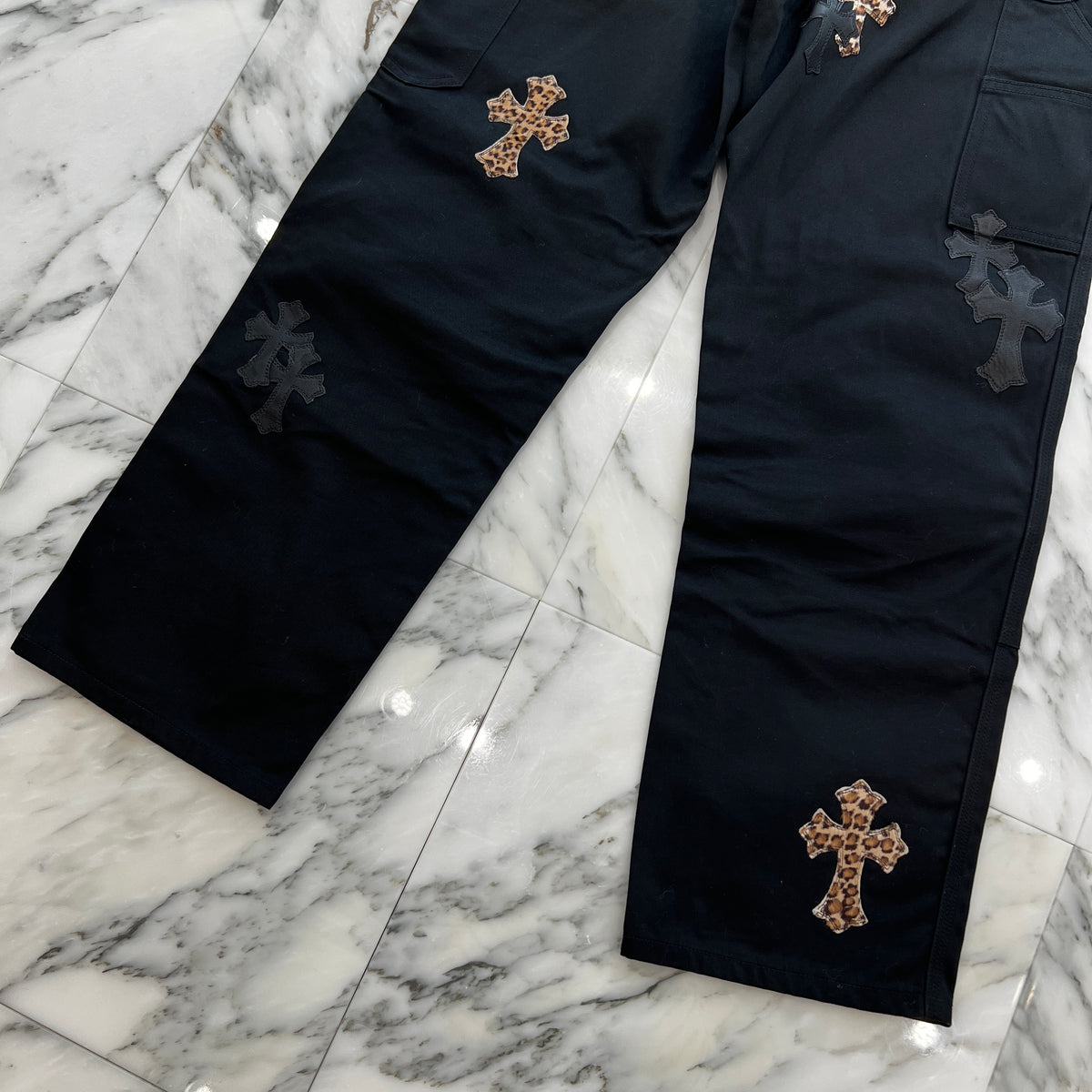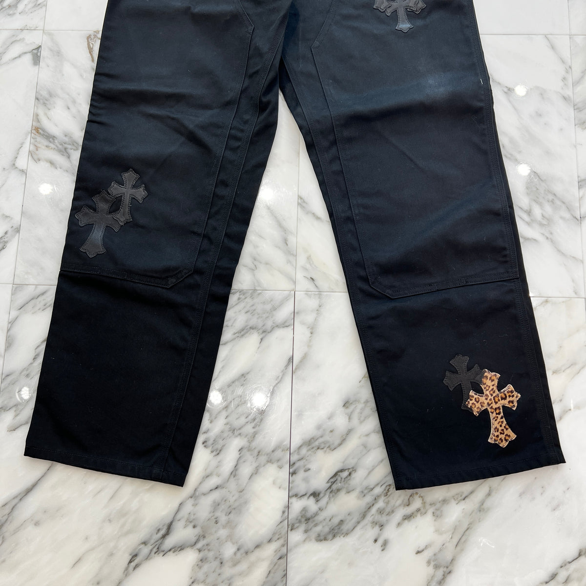 CHROME HEARTS Multi Leather Patch Carpenter Cross Ball Button Denim Pants Size 36 クロムハーツ マルチレザーパッチ カーペンター クロスボールボタン デニムパンツ サイズ36