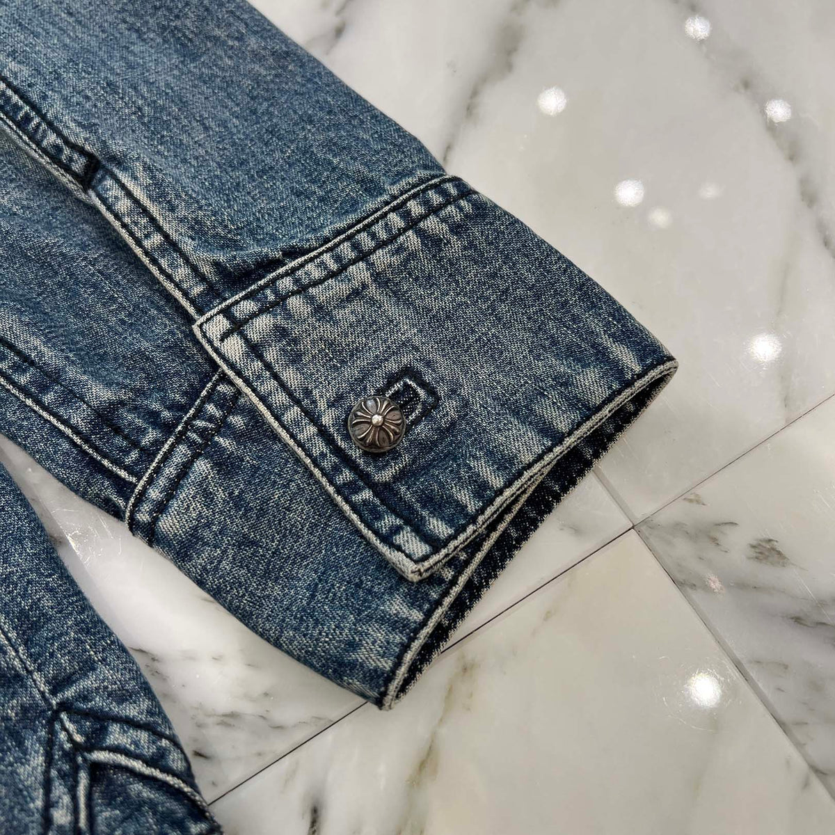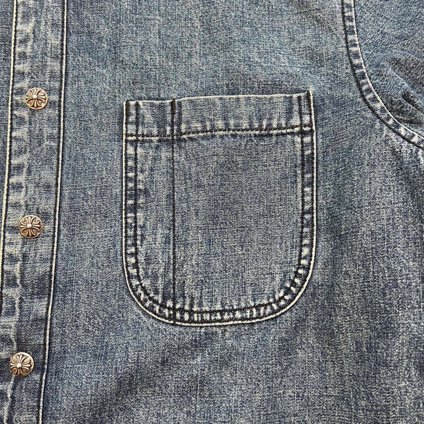 CHROME HEARTS Y NOT Cross Ball Button LAST BITE Denim Shirt Size L クロムハーツ ワイノット クロスボールボタン ラストバイト デニムシャツ サイズL