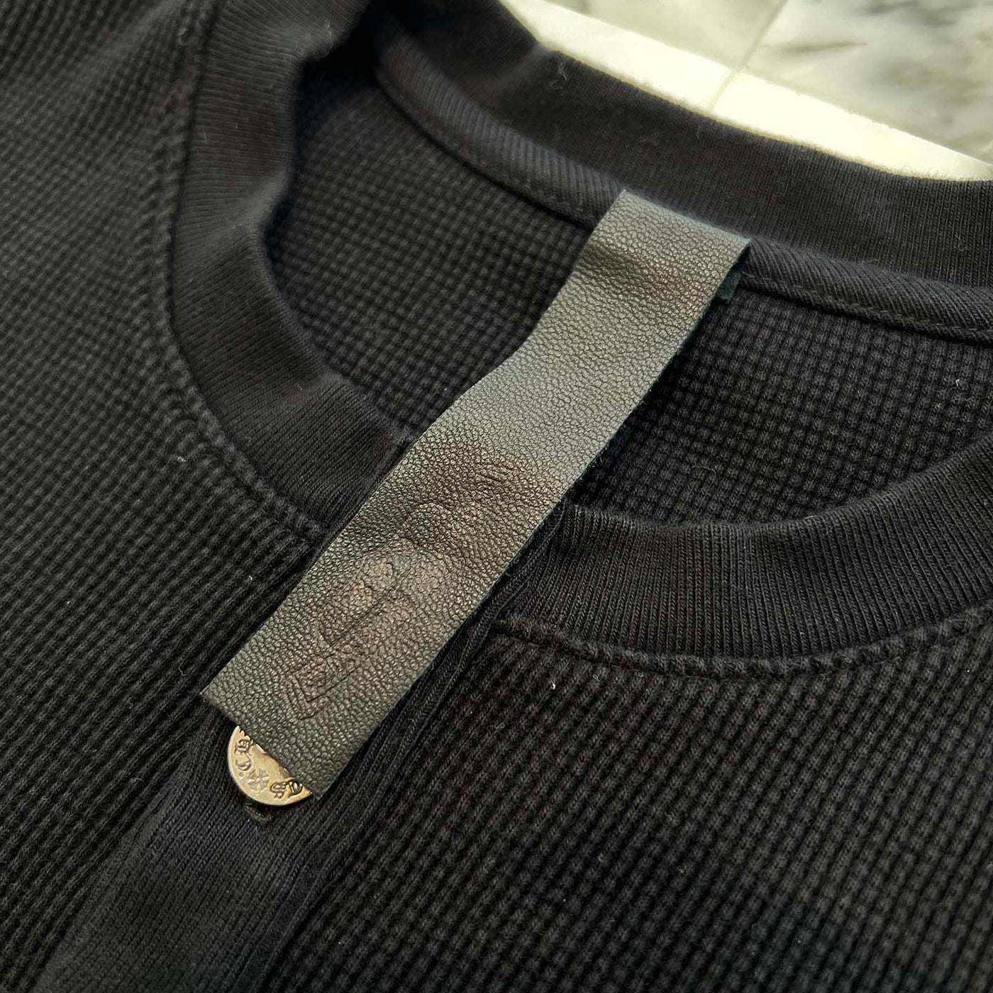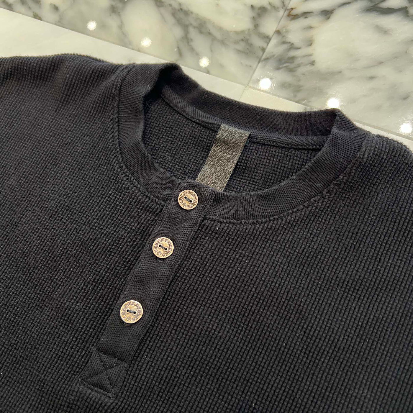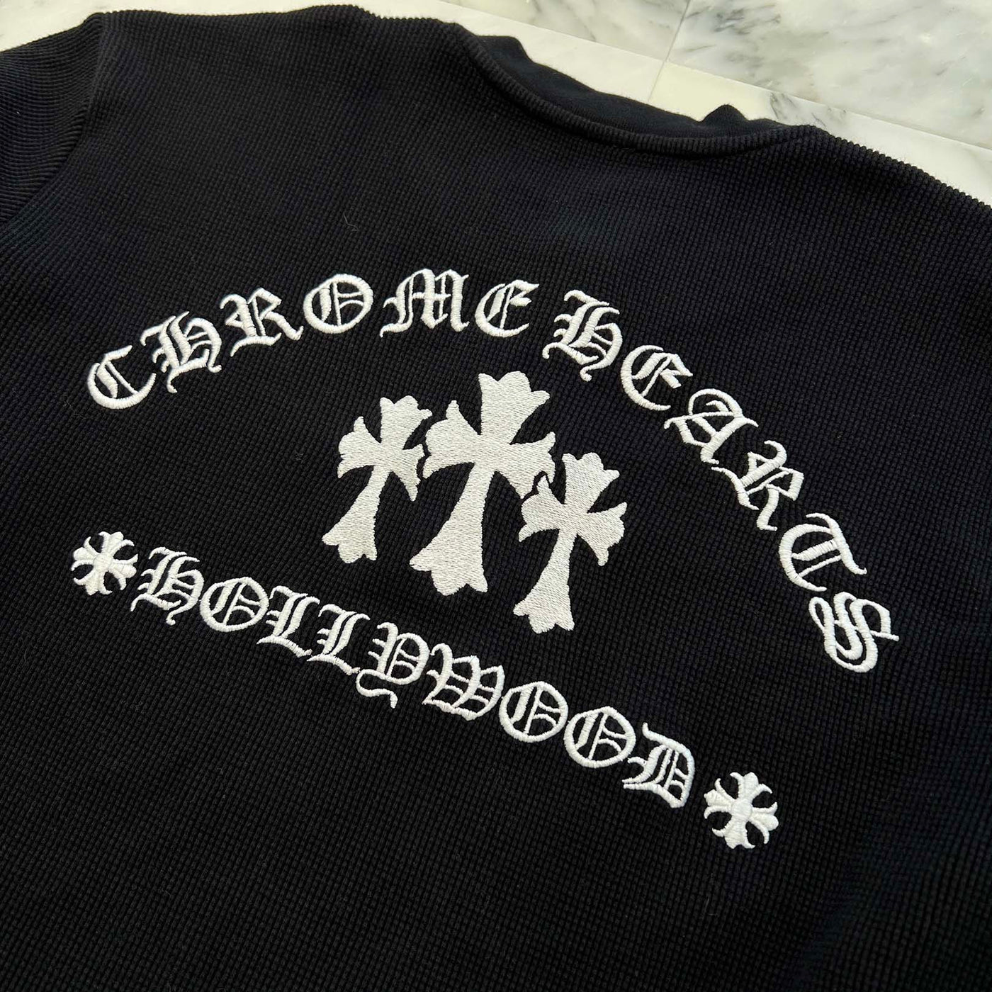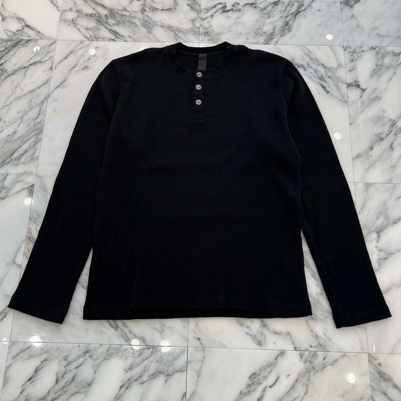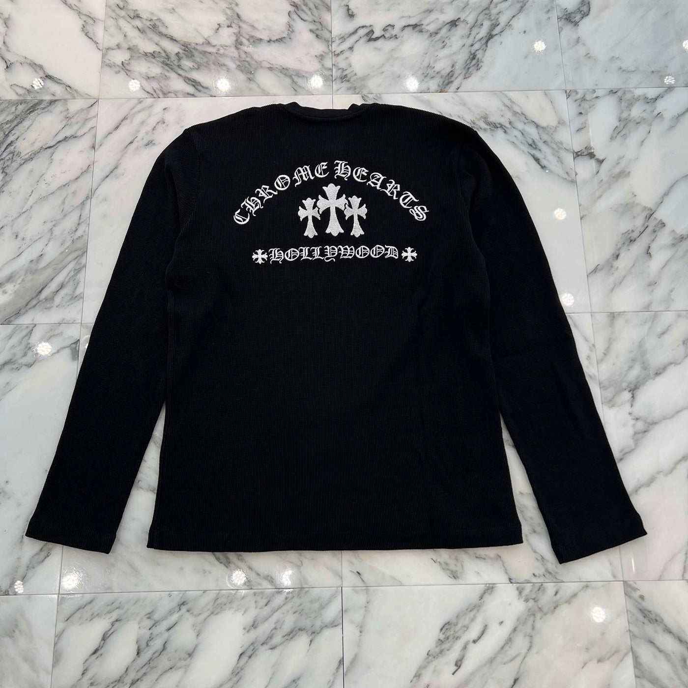 CHROME HEARTS Y NOT King Taco 3 Cemetery Cross Embroidery Thermal Henry Neck Long Sleeve Tee Size XL クロムハ―ツ ワイノット キングタコ 3セメタリークロス刺繍 サーマル ヘンリーネックロングスリーブTシャツ サイズXL