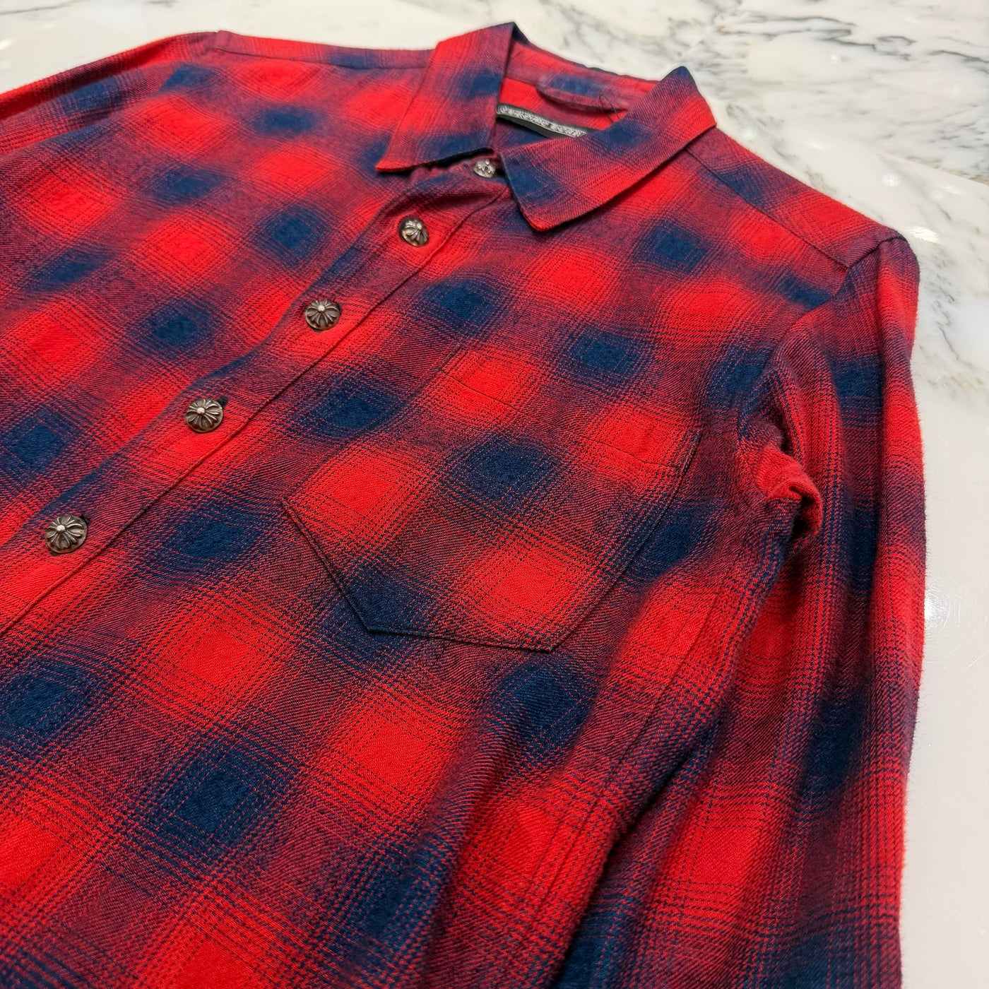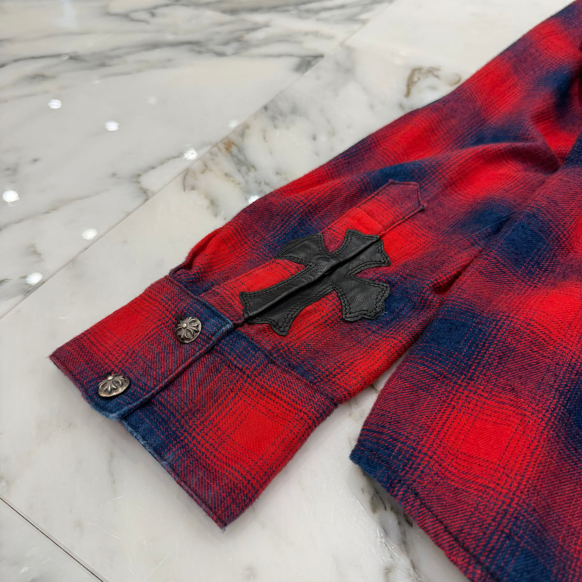 CHROME HEARTS Y NOT Leather Cross Patch Flannel Check Shirt Size M クロムハーツ ワイノット レザークロスパッチ フランネルチェックシャツ サイズM
