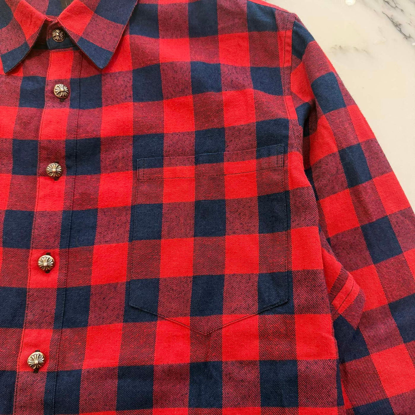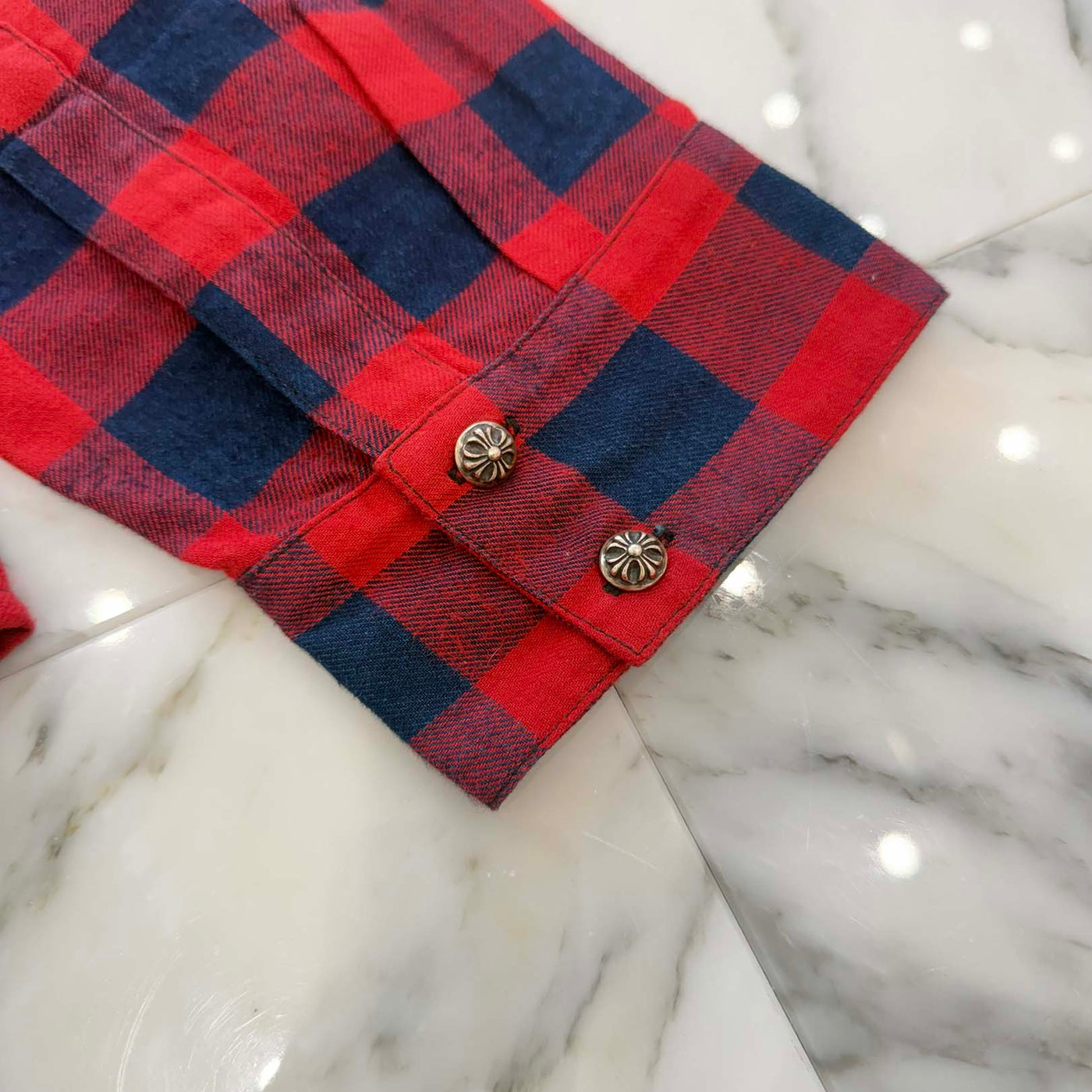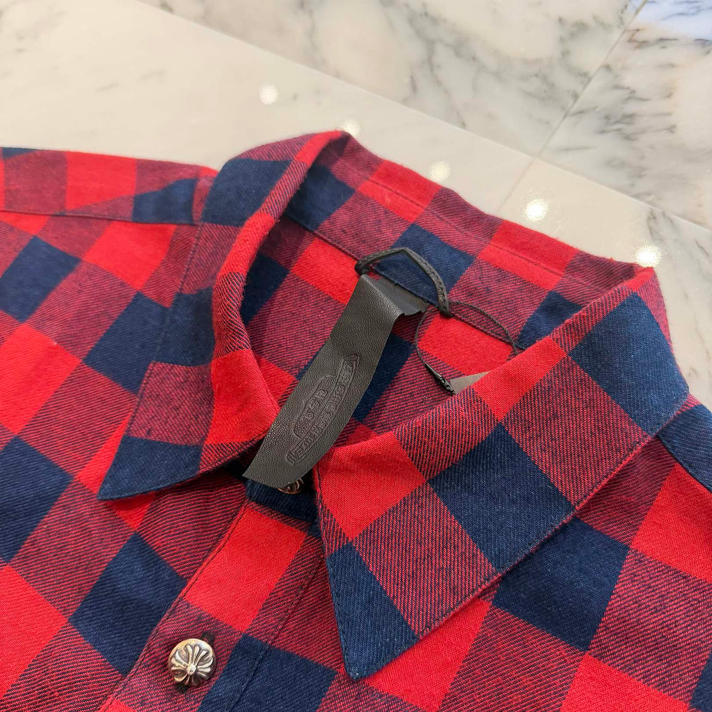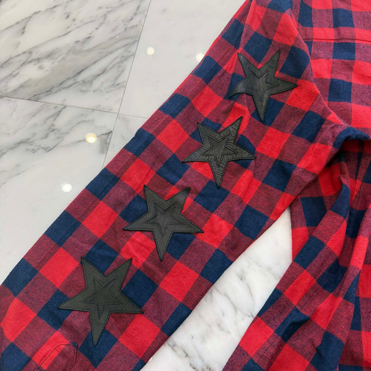 CHROME HEARTS Y NOT Loose Ends Star Leather Patch Check Shirt Size XL クロムハーツ ワイノット ルーズエンド スターレザーパッチ チェックシャツ サイズXL