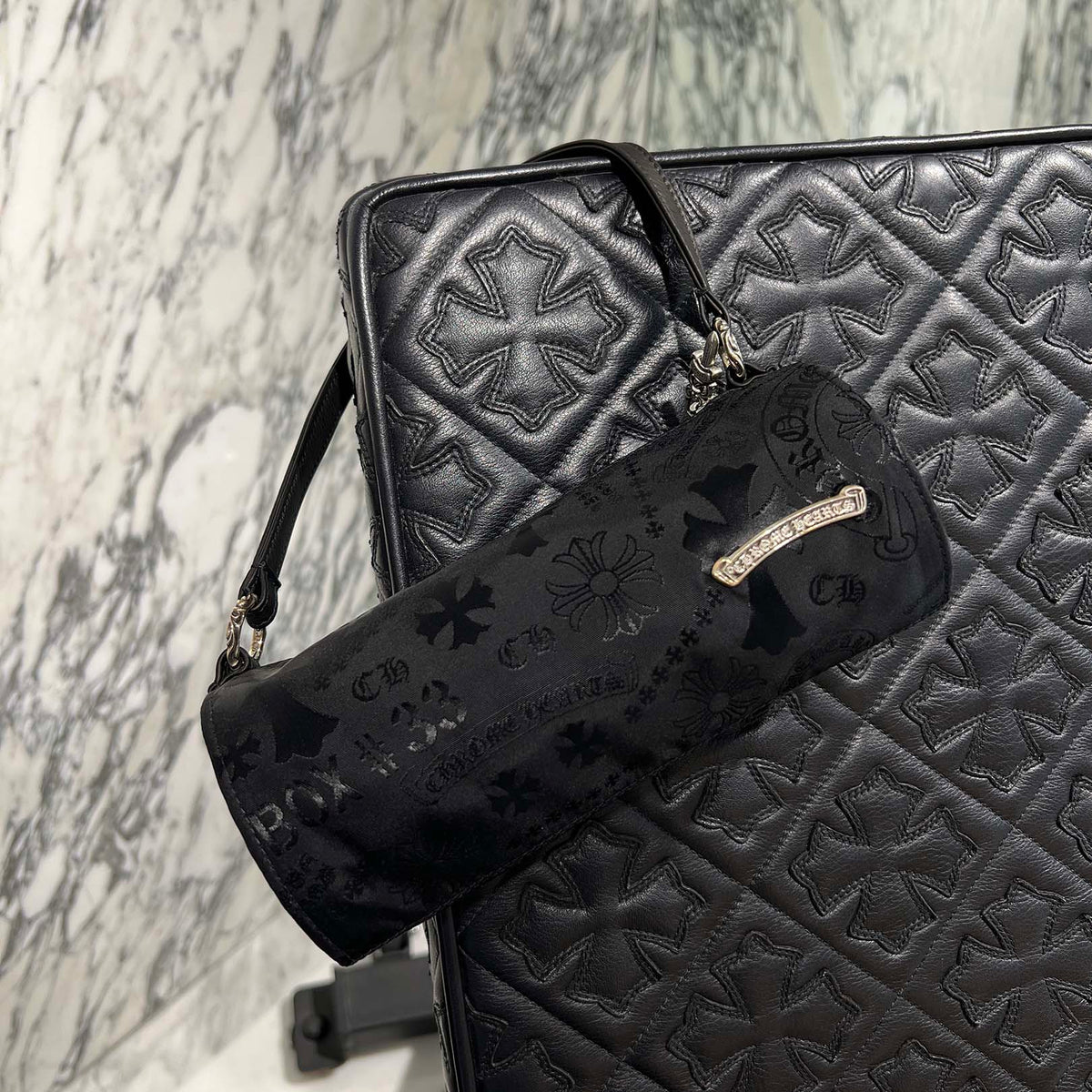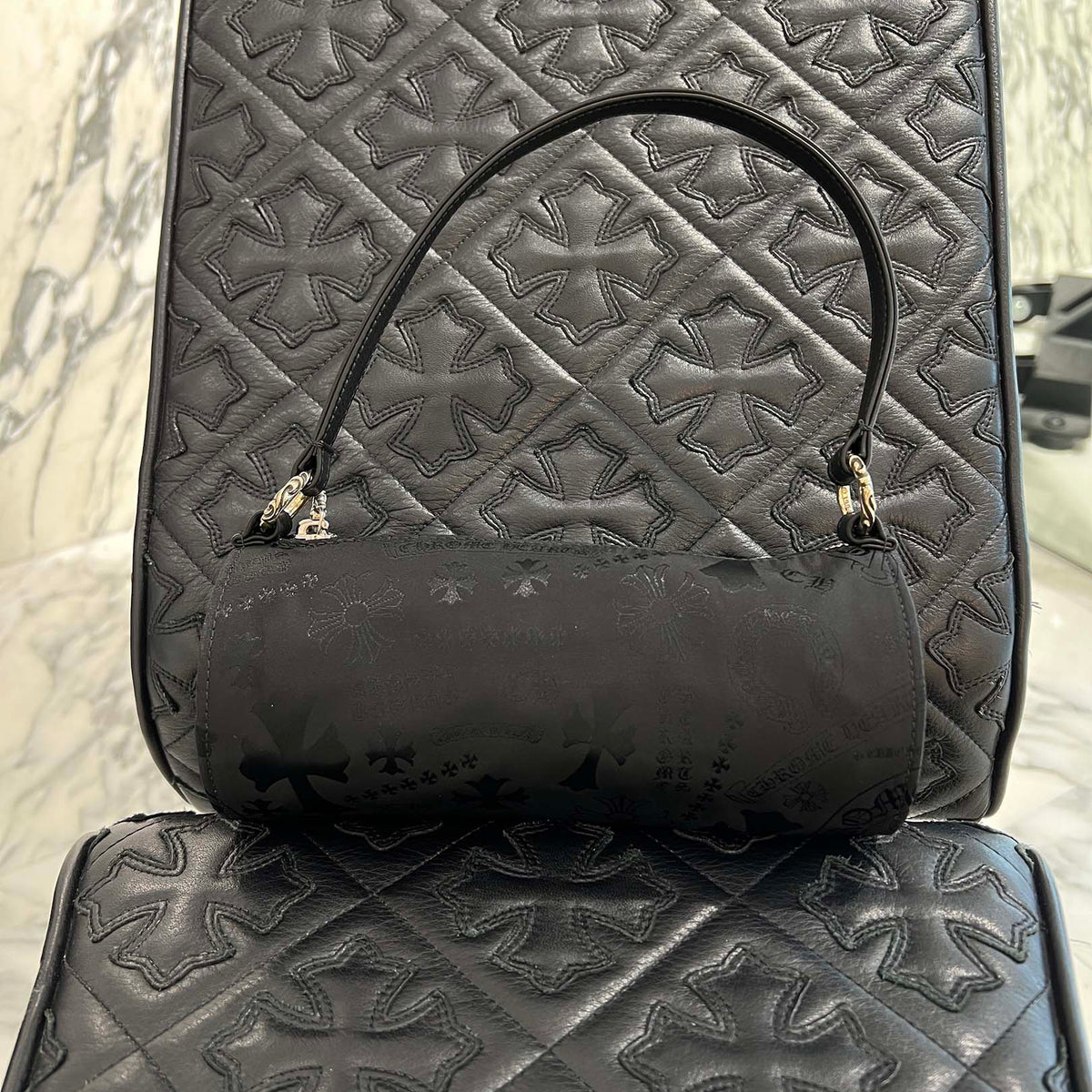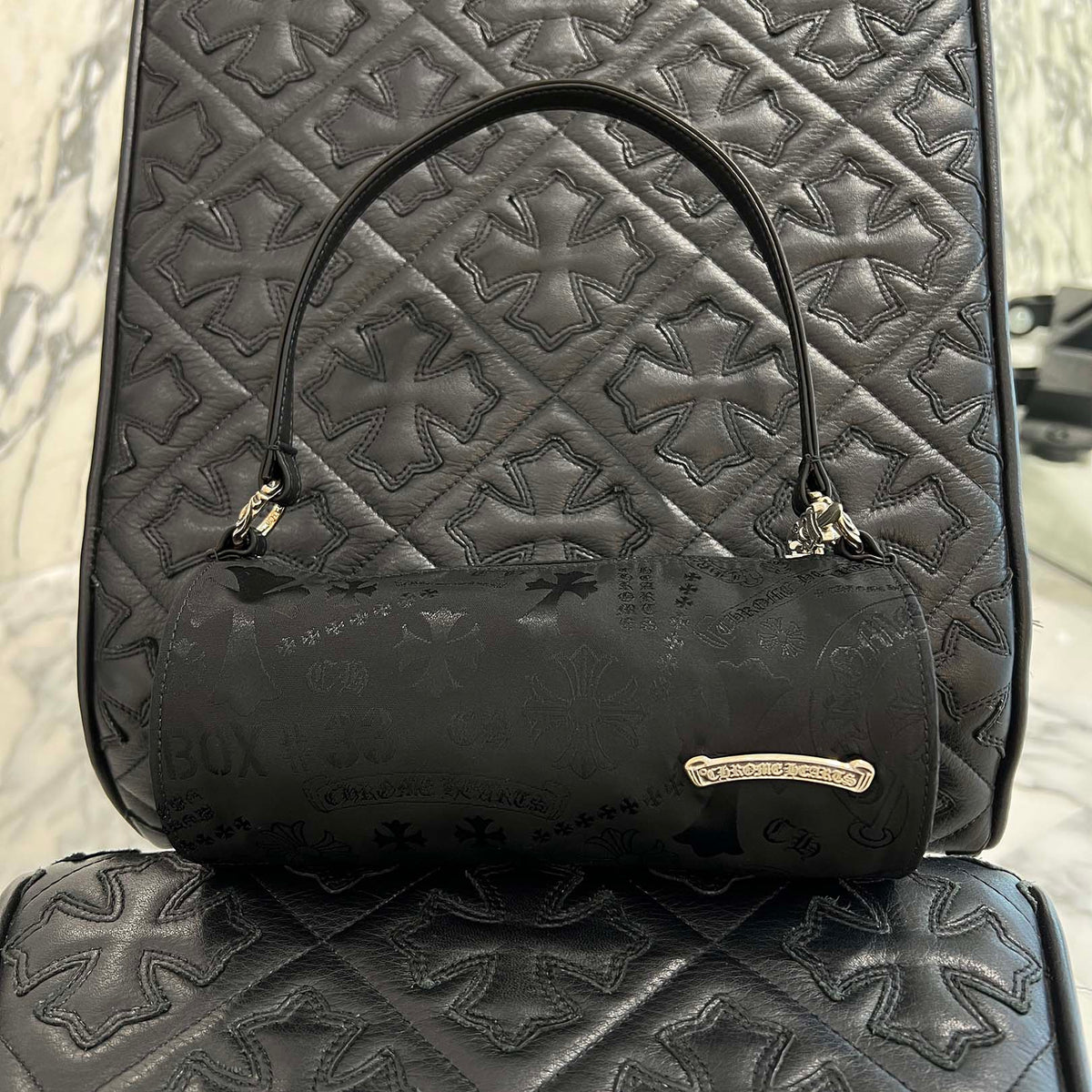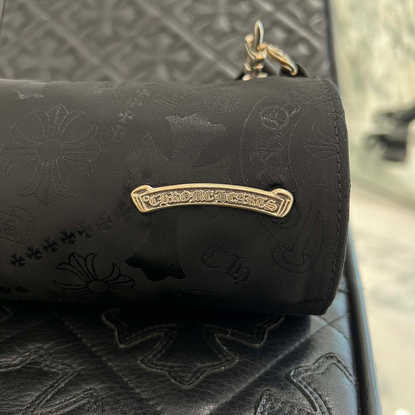 CHROME HEARTS Stencil Pattern GRINDS Nylon Leather Hand Bag クロムハーツ ステンシル柄 グラインズ ナイロンレザー切替 ハンドバッグ