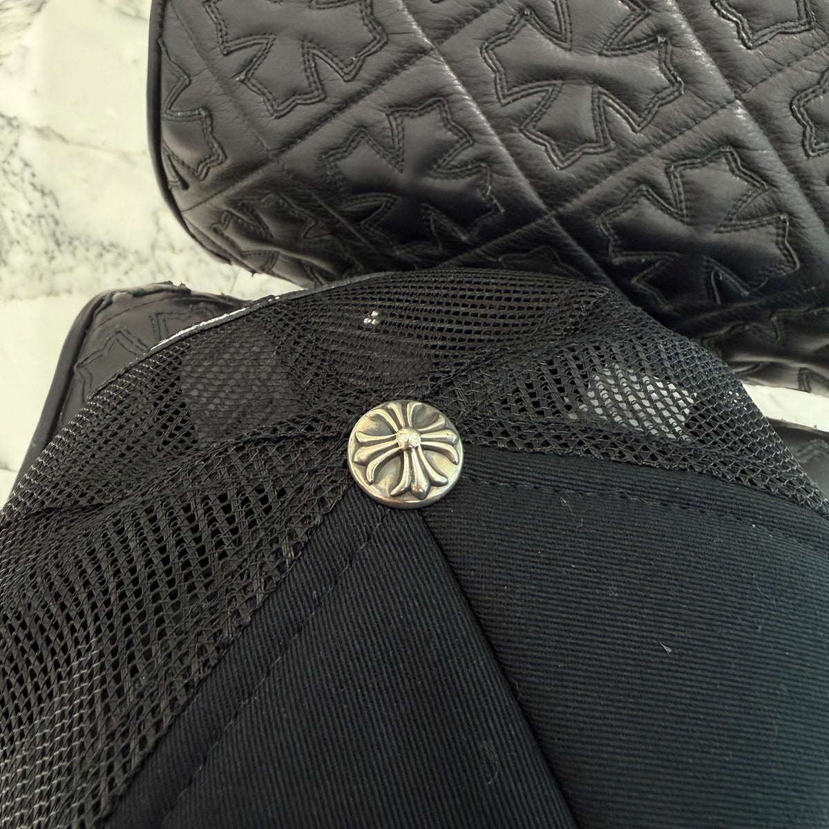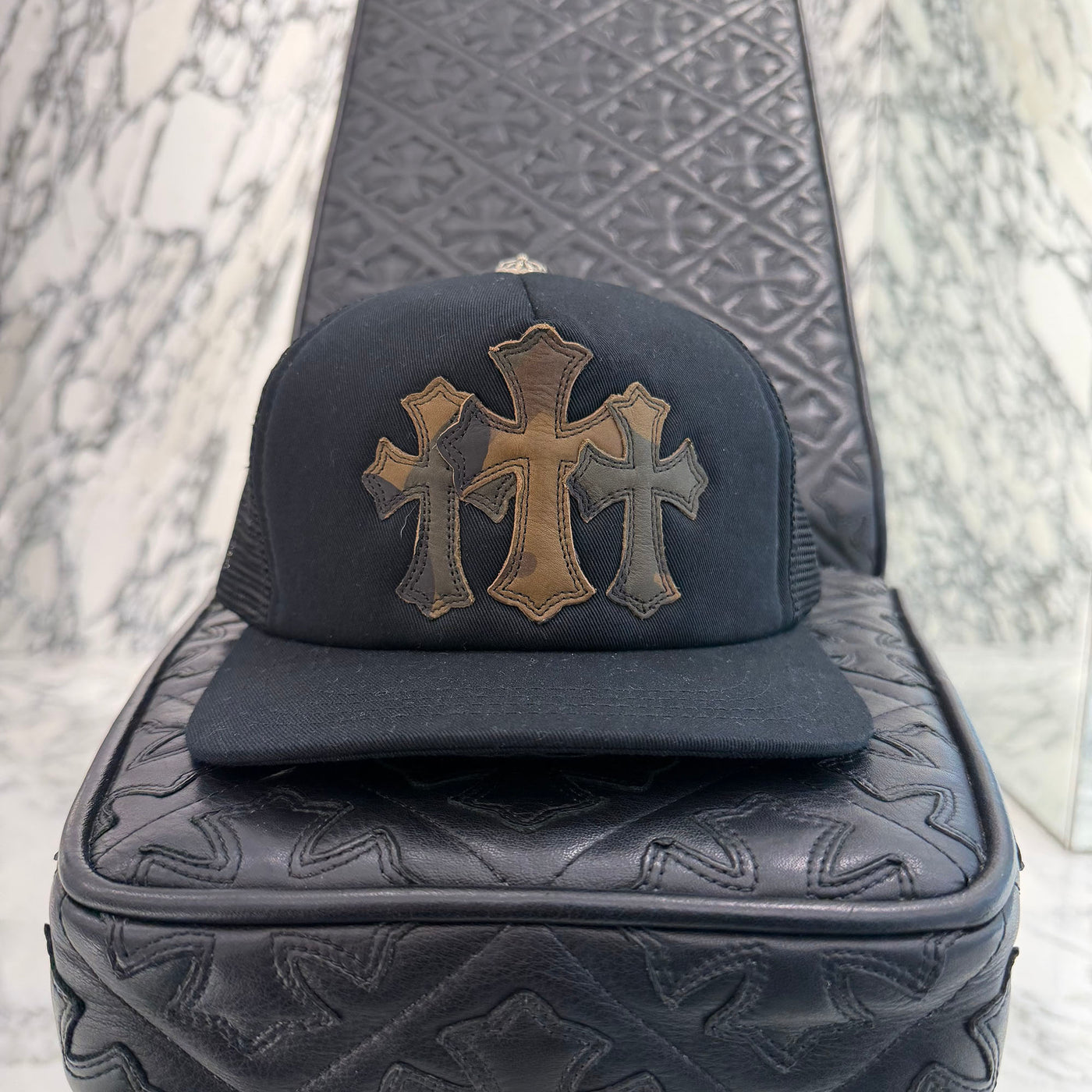 CHROME HEARTS Camo Triple Cross Leather Patch Trucker Cap ONE SIZE (51-61) クロムハーツ カモ トリプルクロス レザーパッチ トラッカーキャップ サイズONE SIZE (51-61)