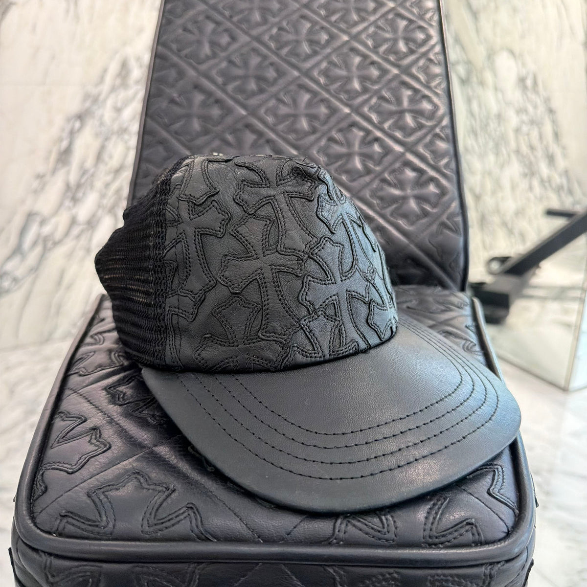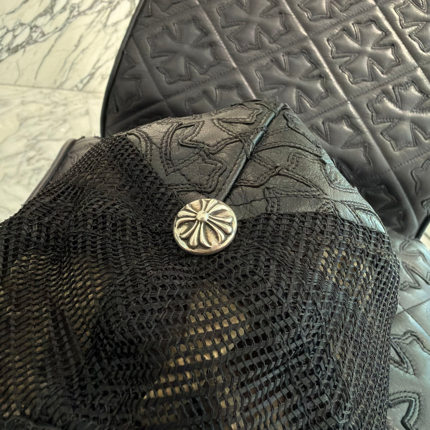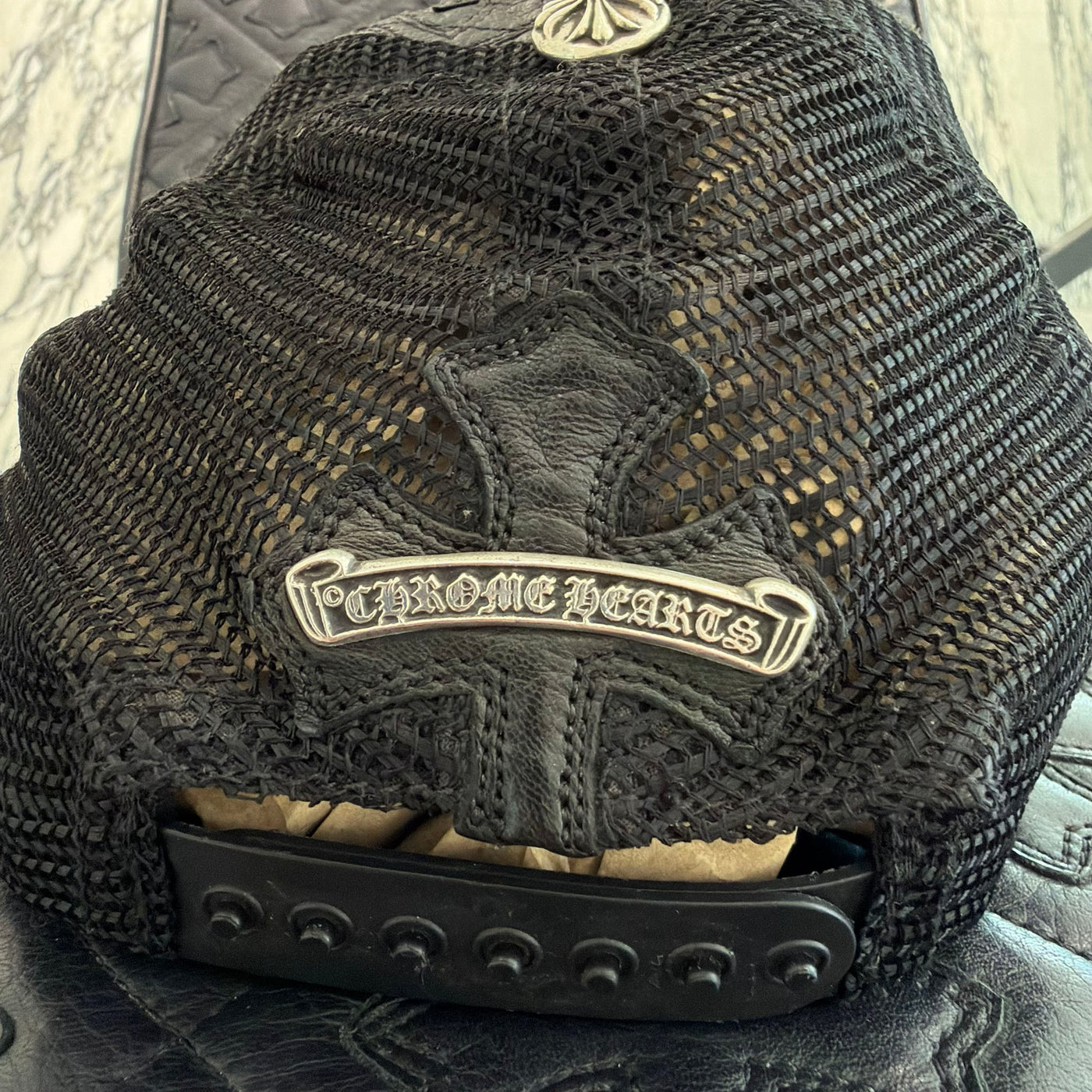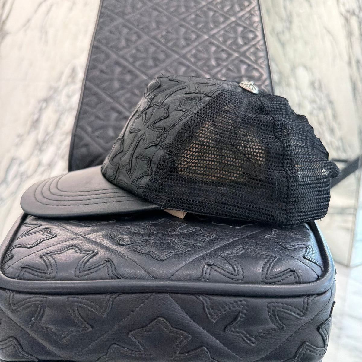 CHROME HEARTS Cemetary Cross Leather Patch Trucker Cap クロムハーツ セメタリークロス レザーパッチ トラッカーキャップ