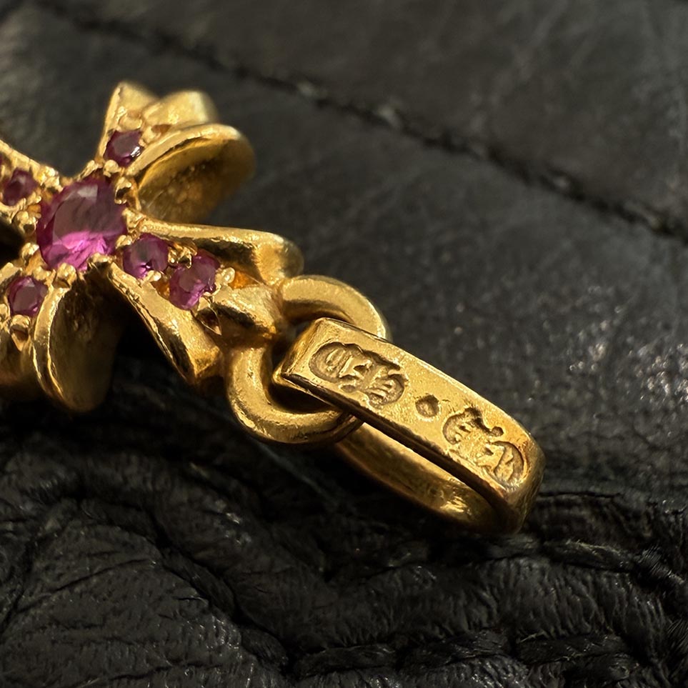 CHROME HEARTS 22K Baby Fat Cross Pave Pink Sapphire Pendant Top クロムハーツ 22K ベビーファット クロス パヴェ ピンクサファイア ペンダントトップ