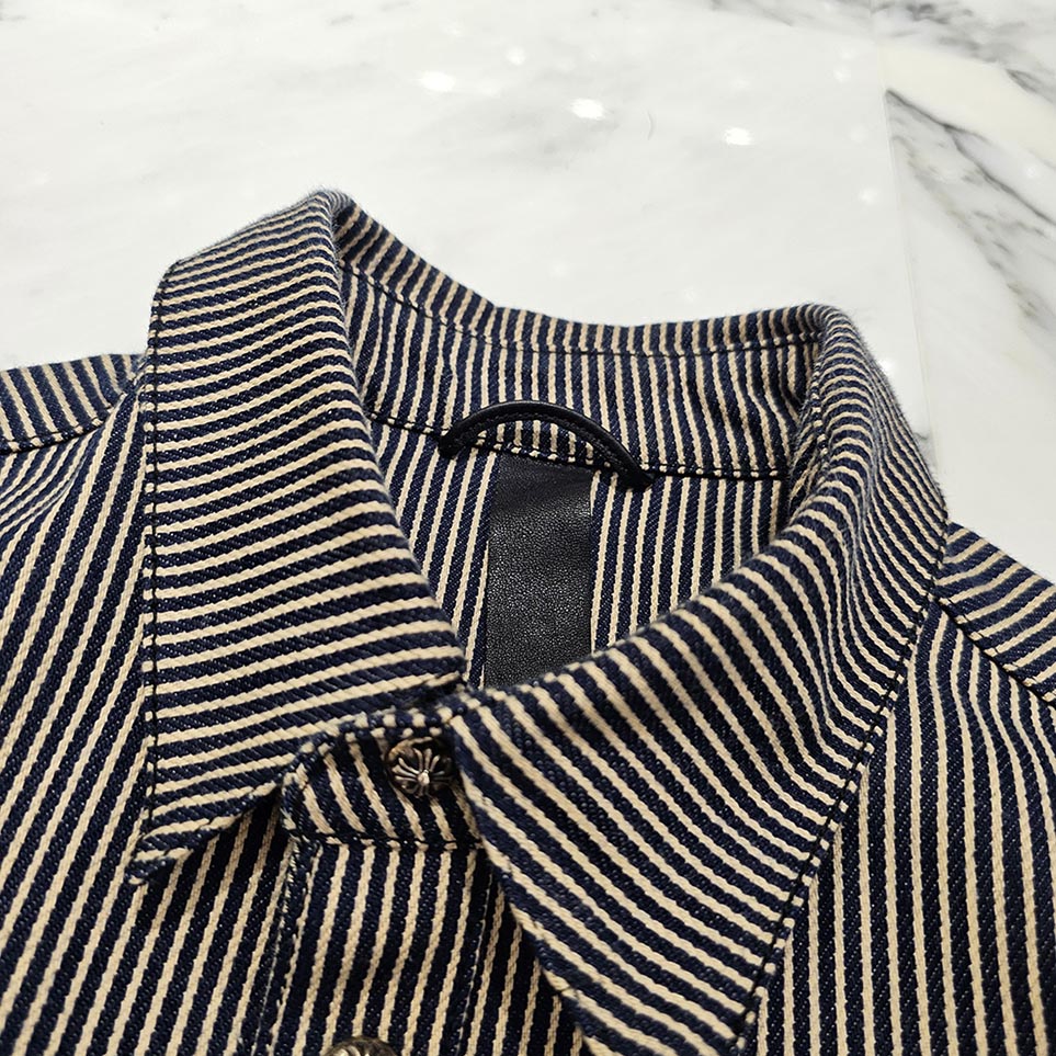 CHROME HEARTS Y NOT WORK DOG Striple Horseshoe Print Cotton Shirt Jacket Size M クロムハーツ ワイノット ワークドグッグ ストライプ ホースシュー プリント コットン シャツジャケット サイズM