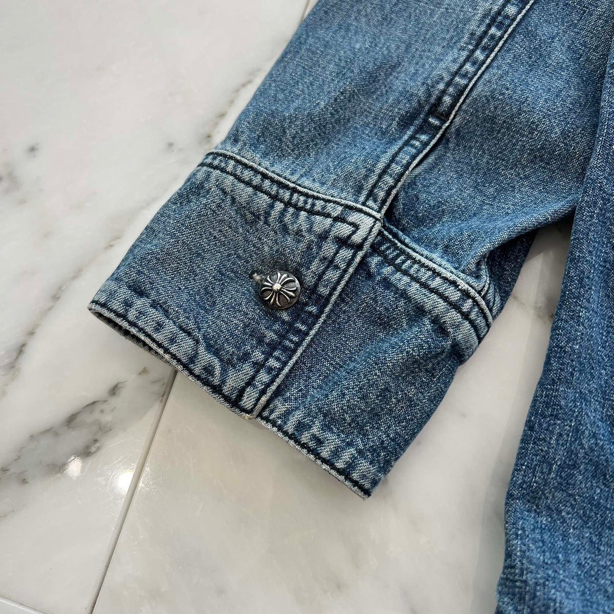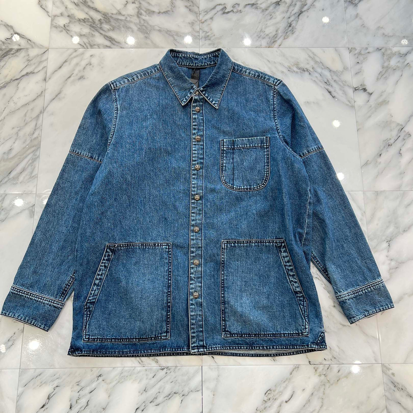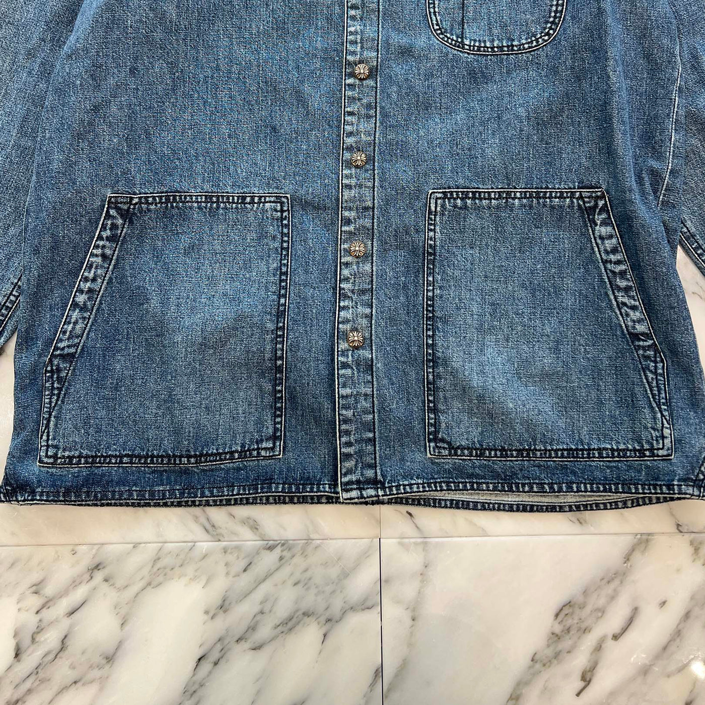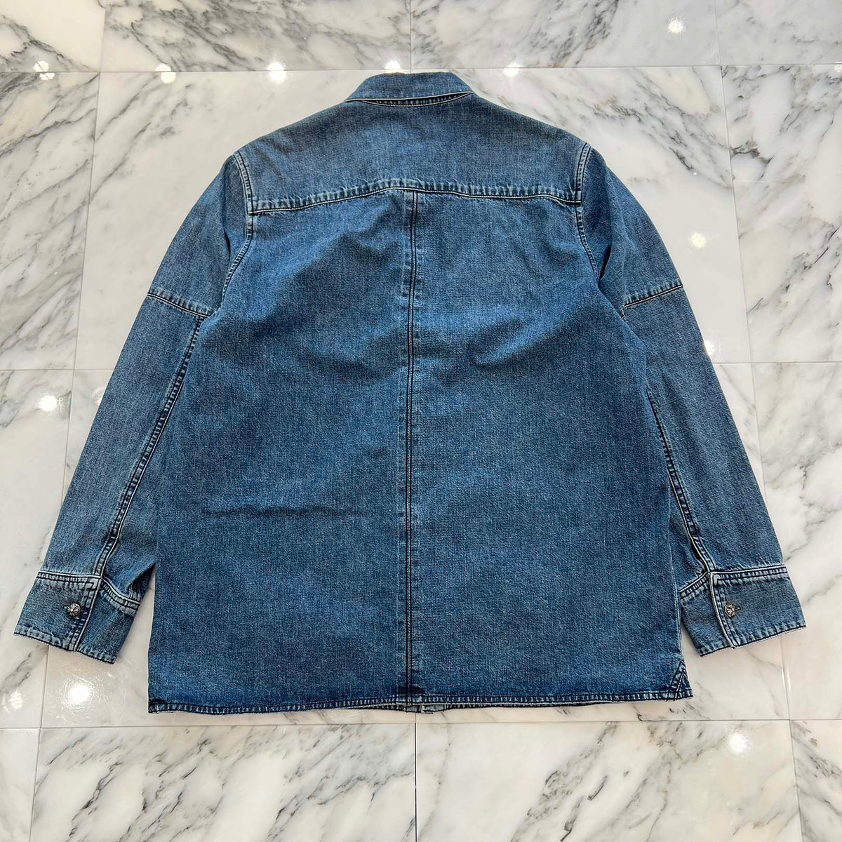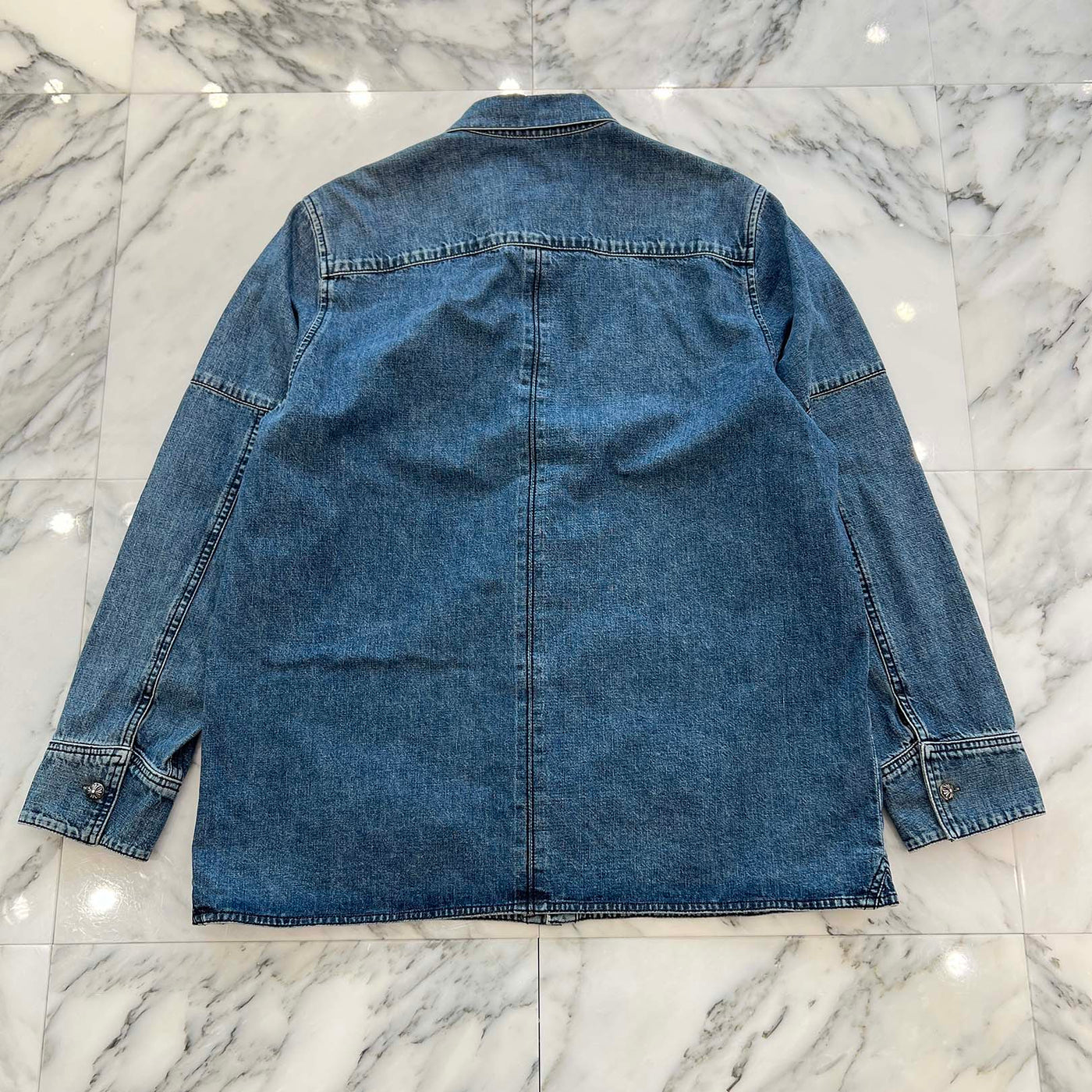 CHROME HEARTS Y NOT Cross Ball Button LAST BITE Denim Shirt Size L クロムハーツ ワイノット クロスボールボタン ラストバイト デニムシャツ サイズL