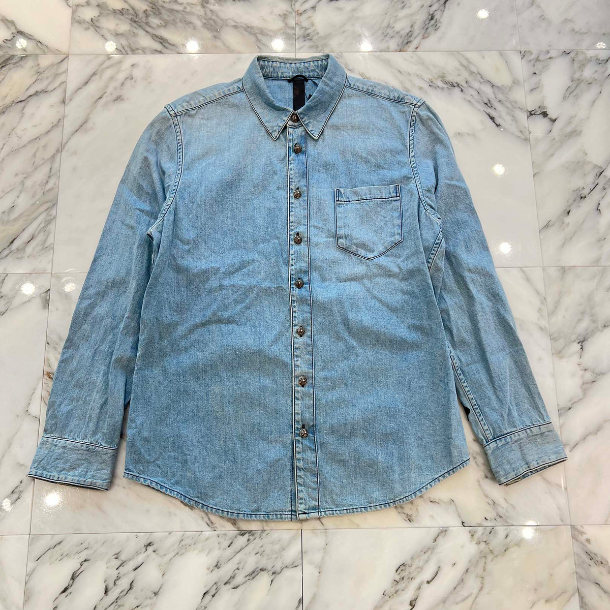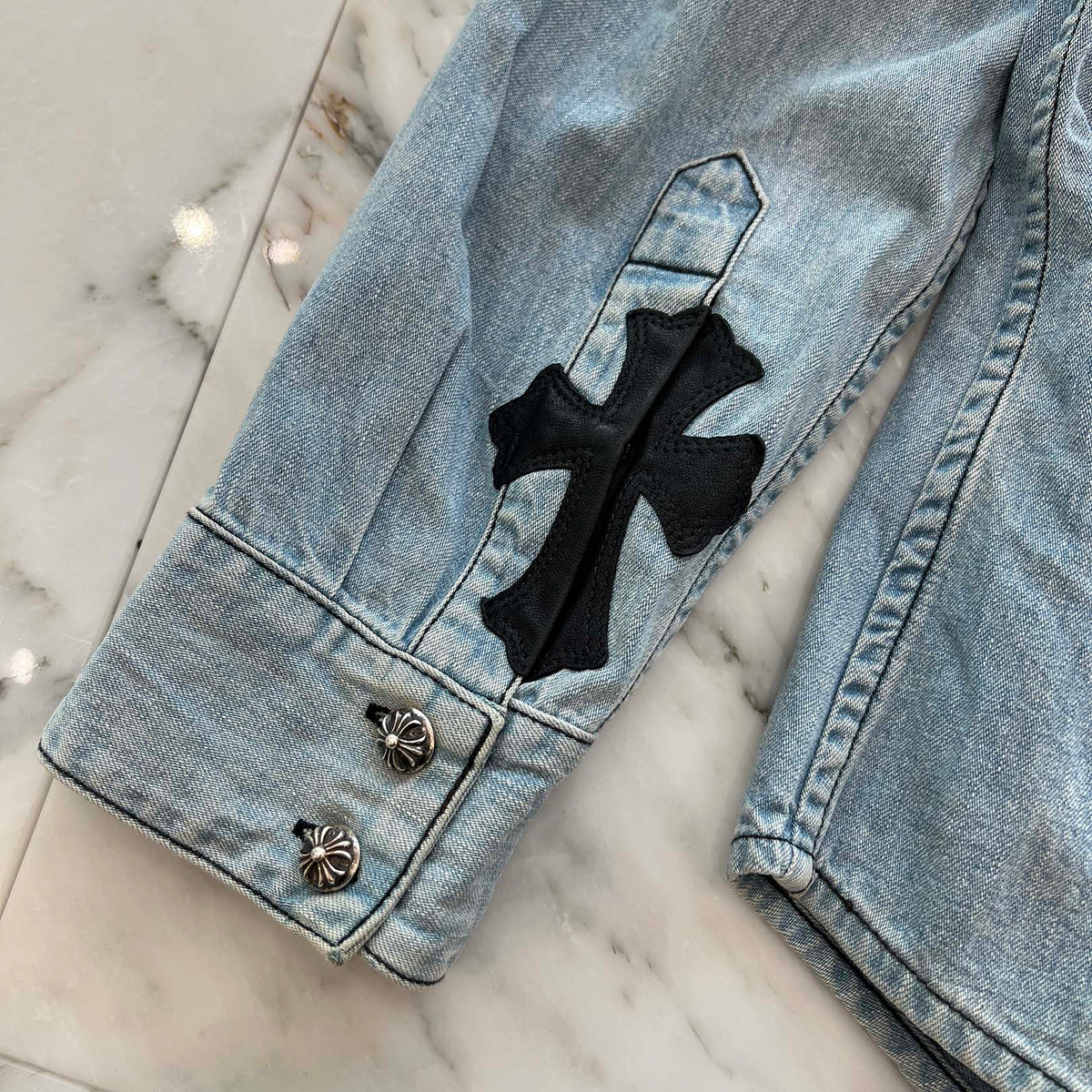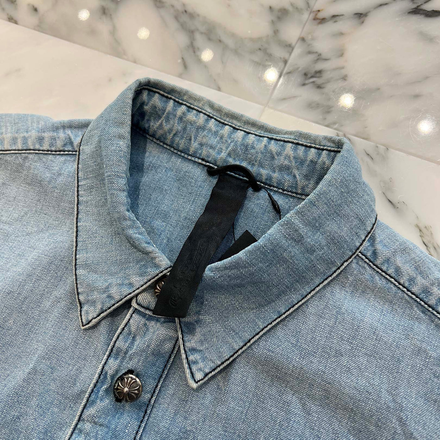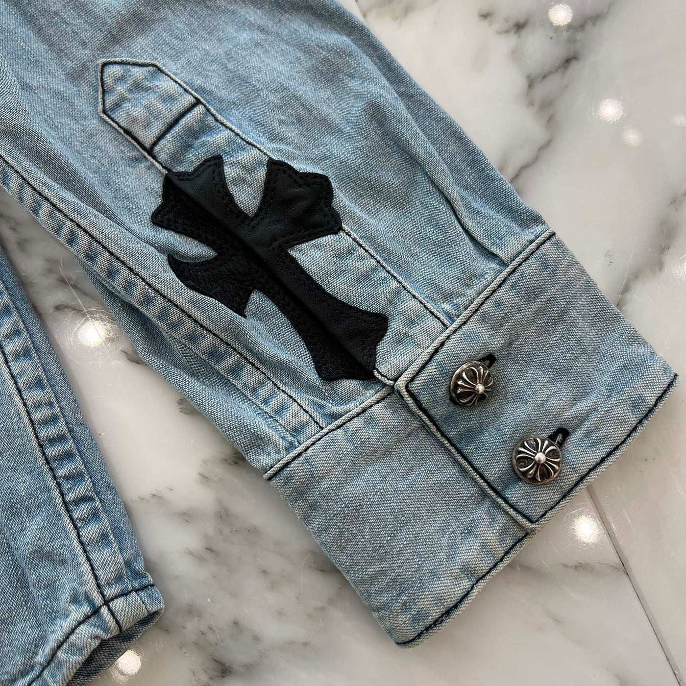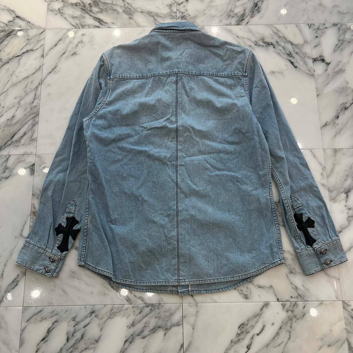 CHROME HEARTS Y NOT Leather Cross Patch Denim Shirt Size L クロムハーツ ワイノット レザークロスパッチ デニムシャツ サイズL