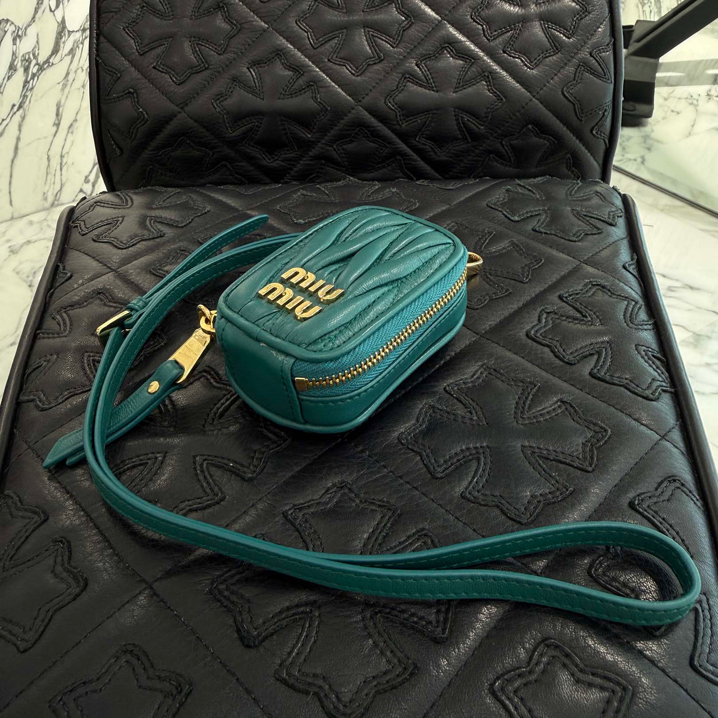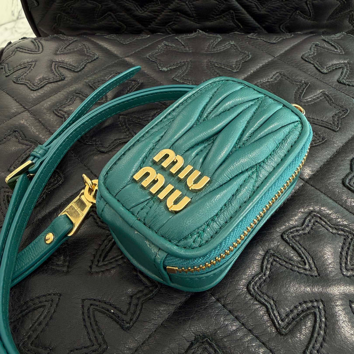 MIU MIU Matelassé Leather Neck Mini Pouch 5TT172 2FPP FOK41 ミュウミュウ マテラッセ レザー ネック ミニ ポーチ
