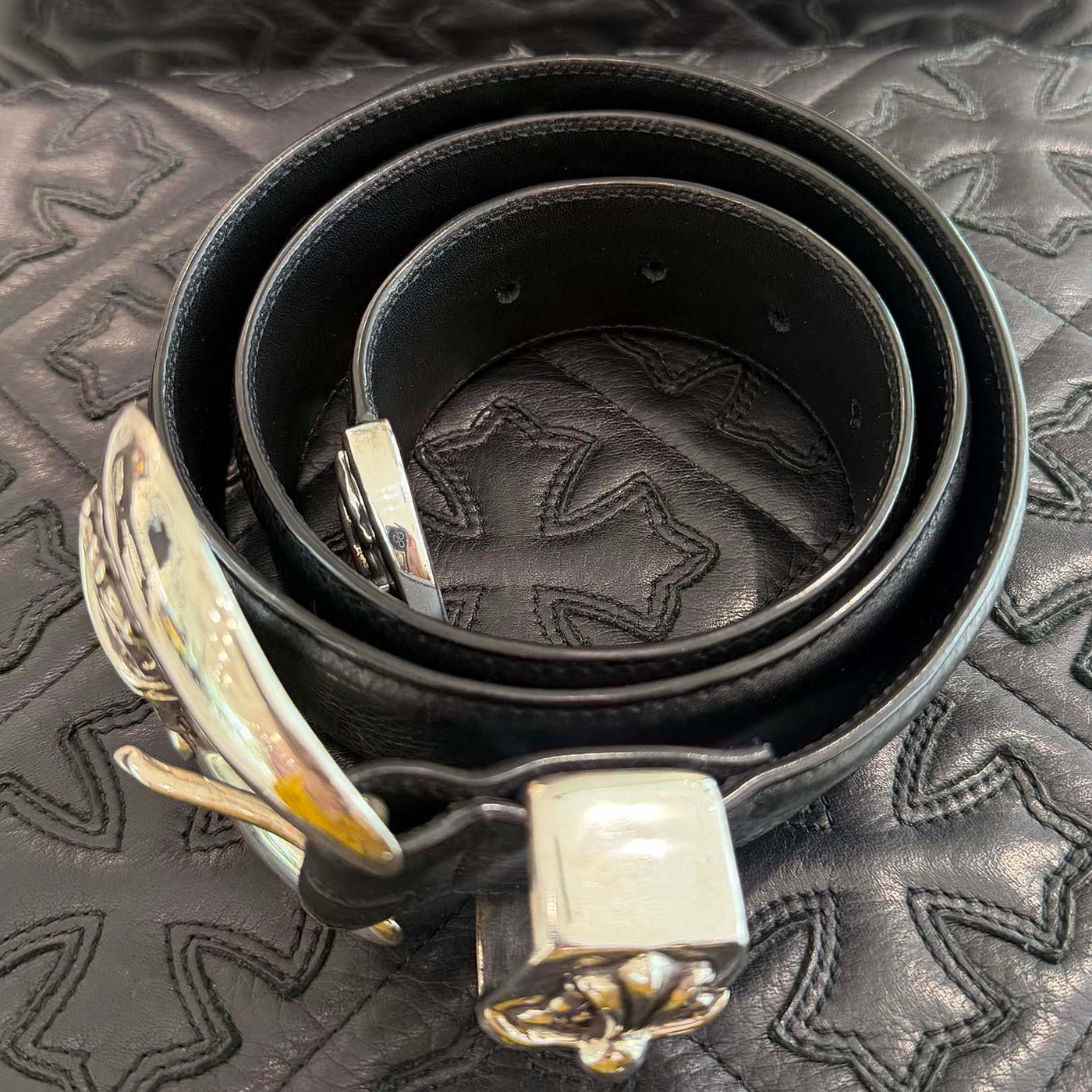 CHROME HEARTS 3PC Classic Leather Belt Size 34 Inch クロムハーツ 3PC クラシック レザーベルト サイズ34インチ