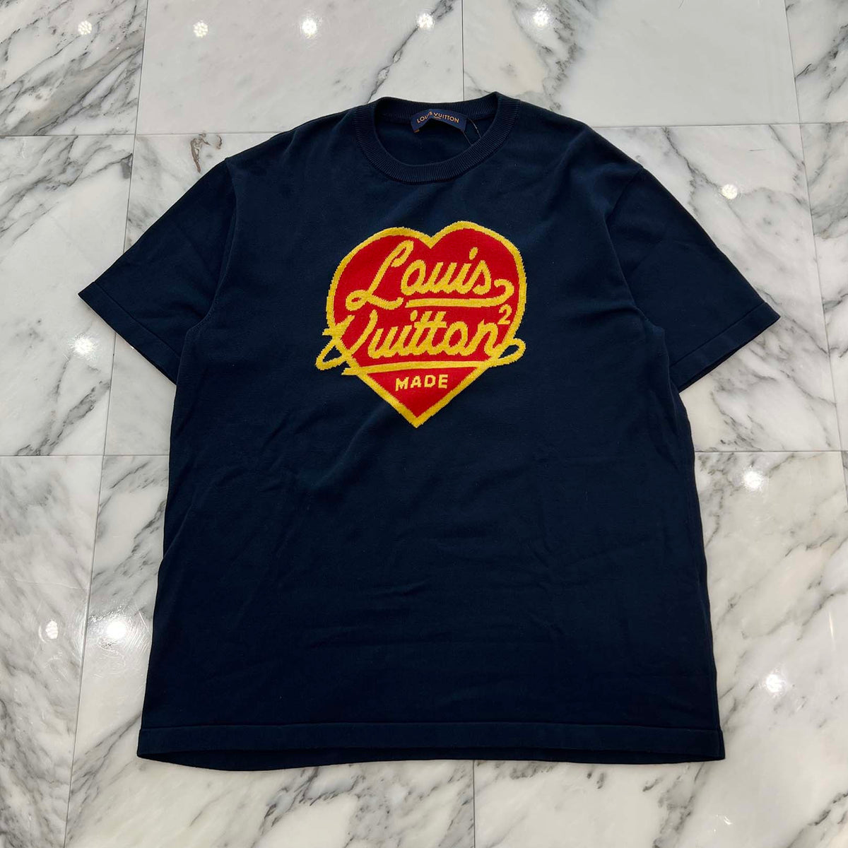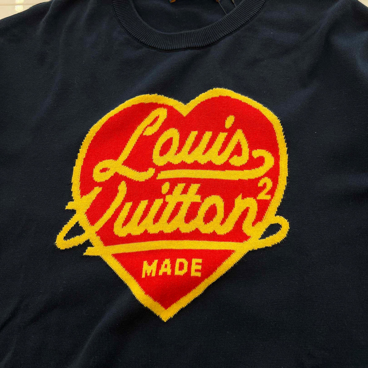 LOUIS VUITTON × HUMAN MADE 2022SS Intarsia Heart Logo Cotton Knit Tee HMN01W Size XL ルイヴィトン × ヒューマンメイド インタルシアハートロゴコットンニットTシャツ サイズXL