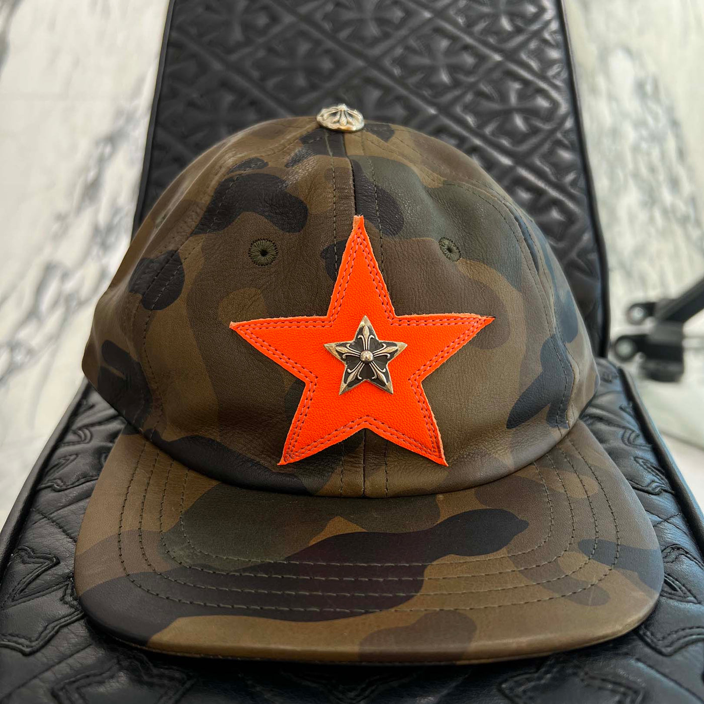 CHROME HEARTS Star Leather Patch Camouflage Leather Trucker Cap Size ONE SIZE (51-61) クロムハーツ スター レザーパッチ カモフラージュ レザートラッカーキャップ サイズONE SIZE (51-61)