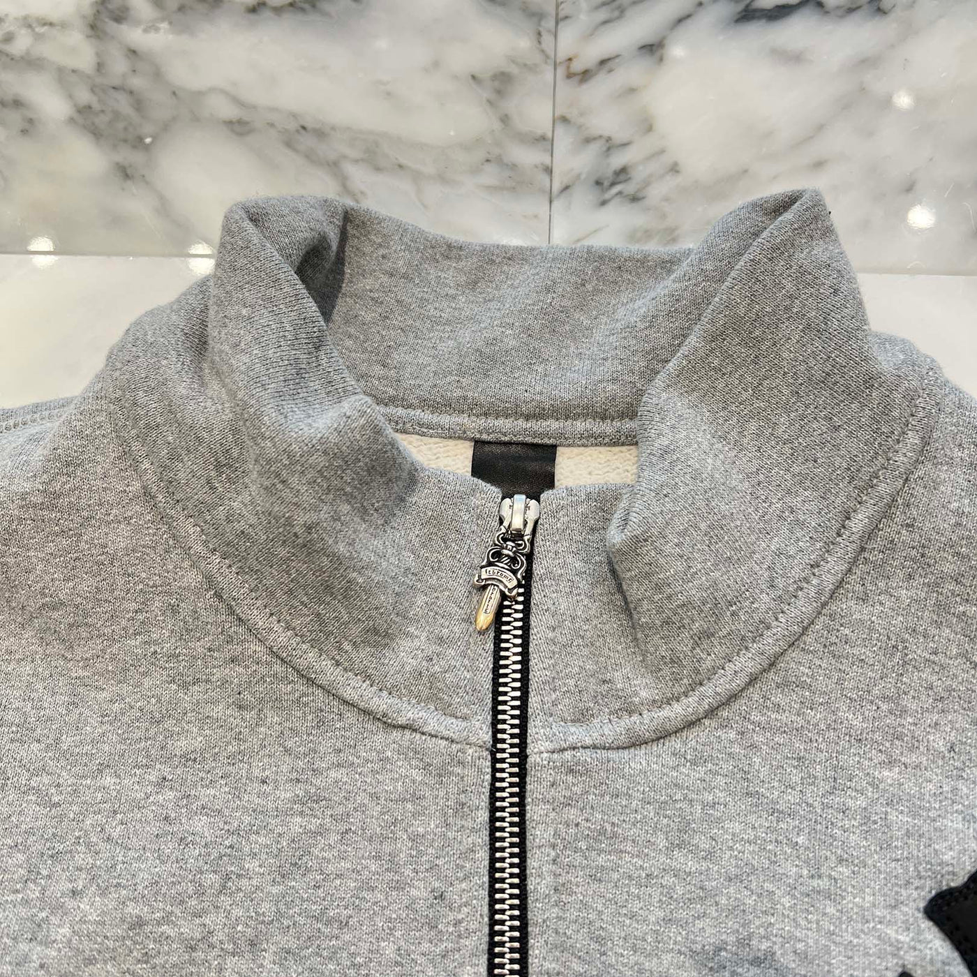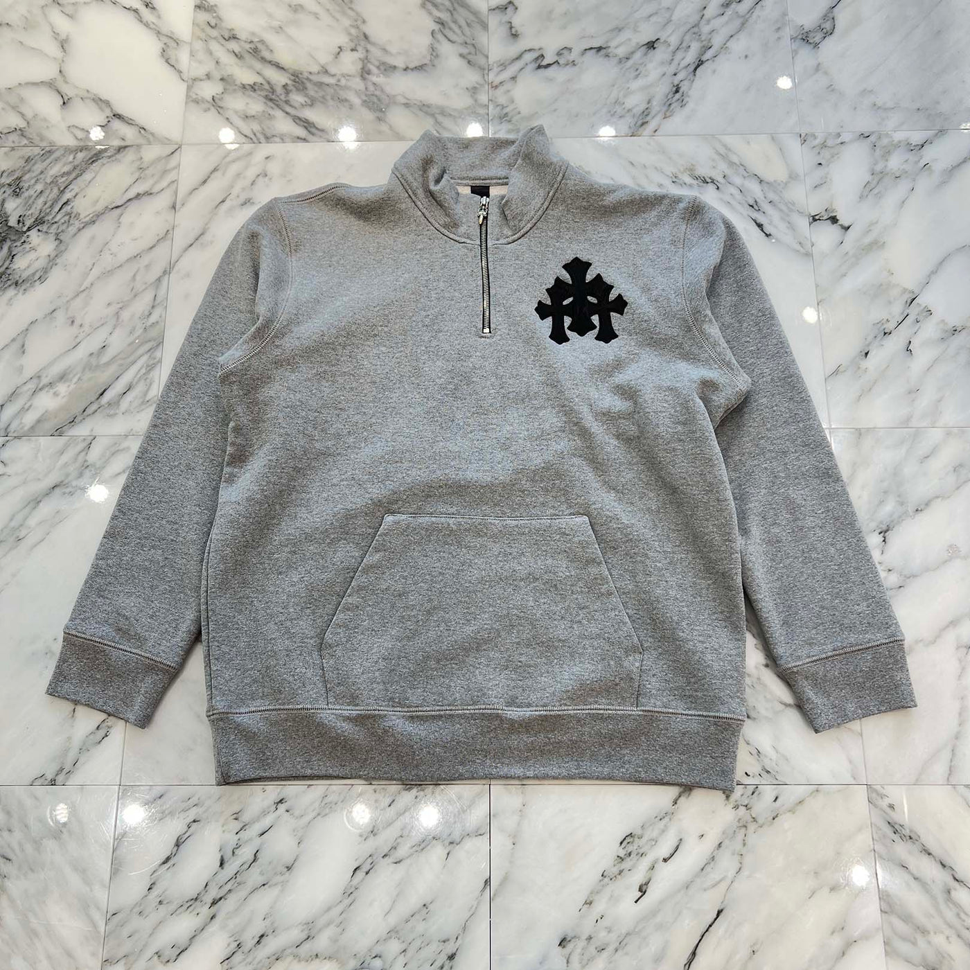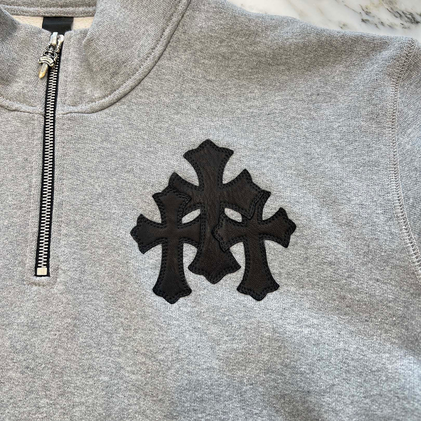 CHROME HEARTS Y NOT Cemetery Cross Leather Patch Half Zip Sweatshirt Size XL クロムハーツ ワイノット セメタリークロス レザーパッチ ハーフジップ スウェットシャツ サイズXL