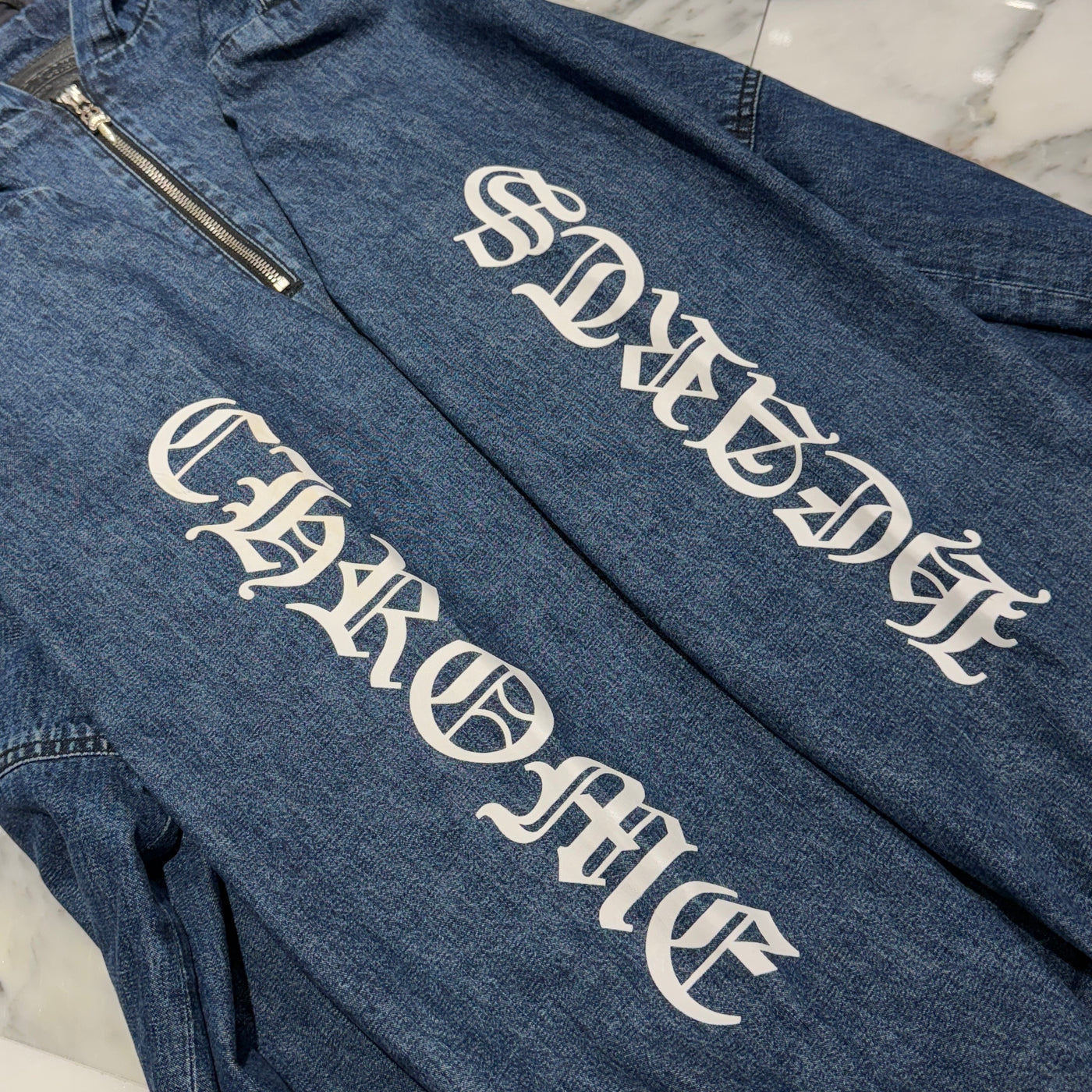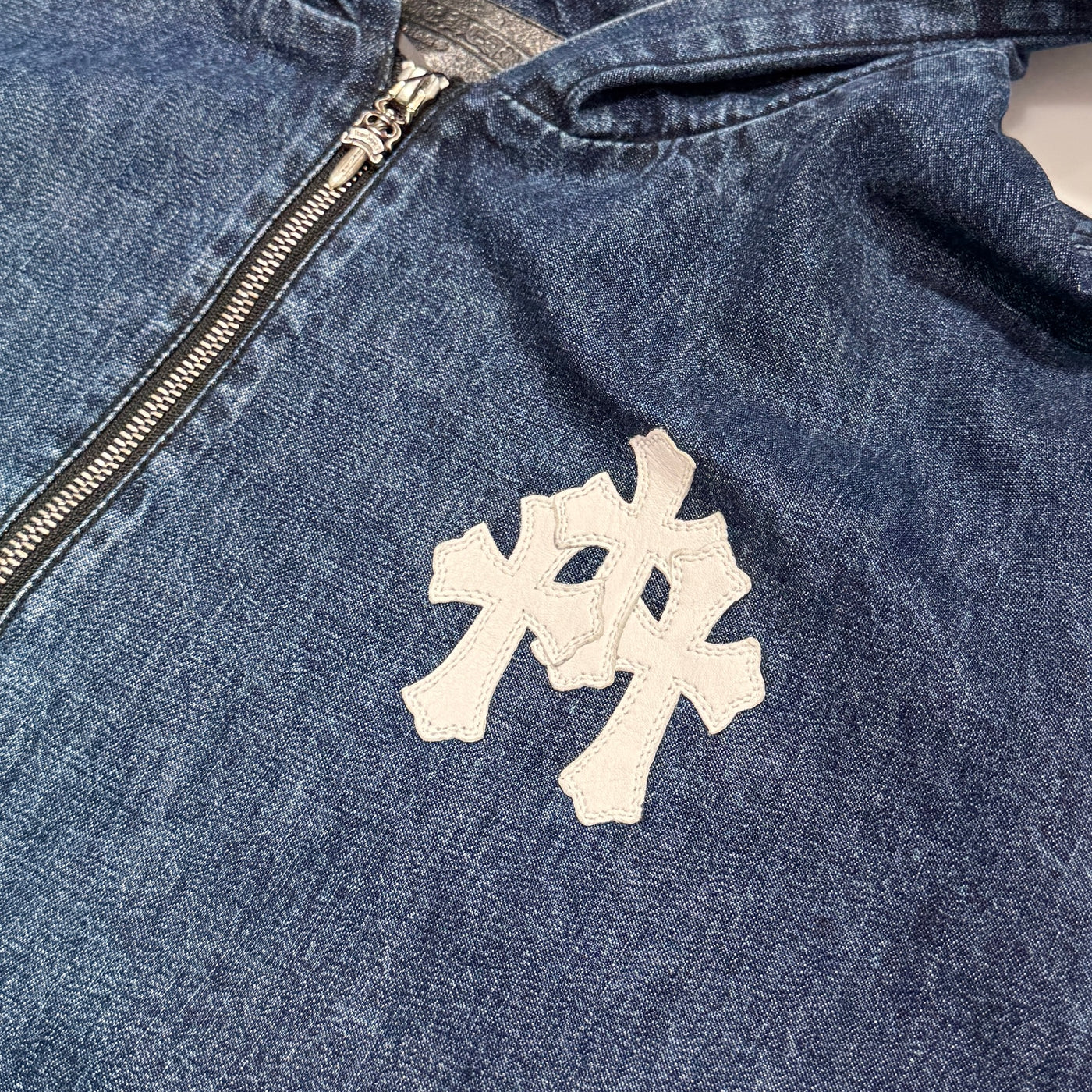 CHROME HEARTS 2024AW Leather Cemetery Triple Cross Denim Anorak Jacket Size XL クロムハーツ レザーセメタリートリプルクロス デニム アノラック ジャケット サイズXL