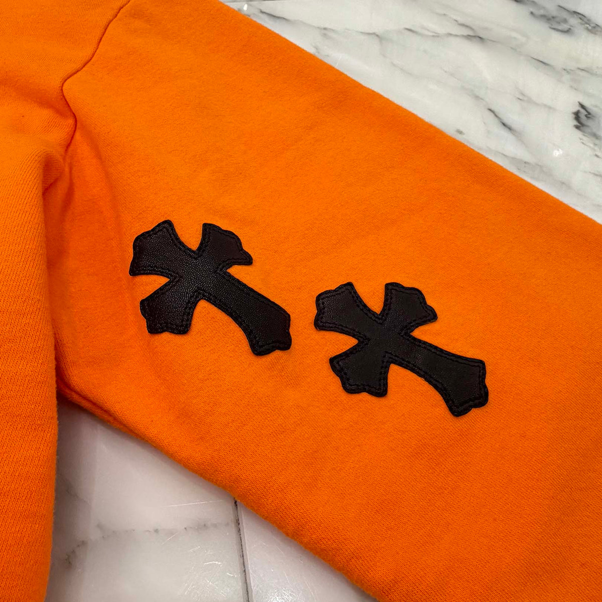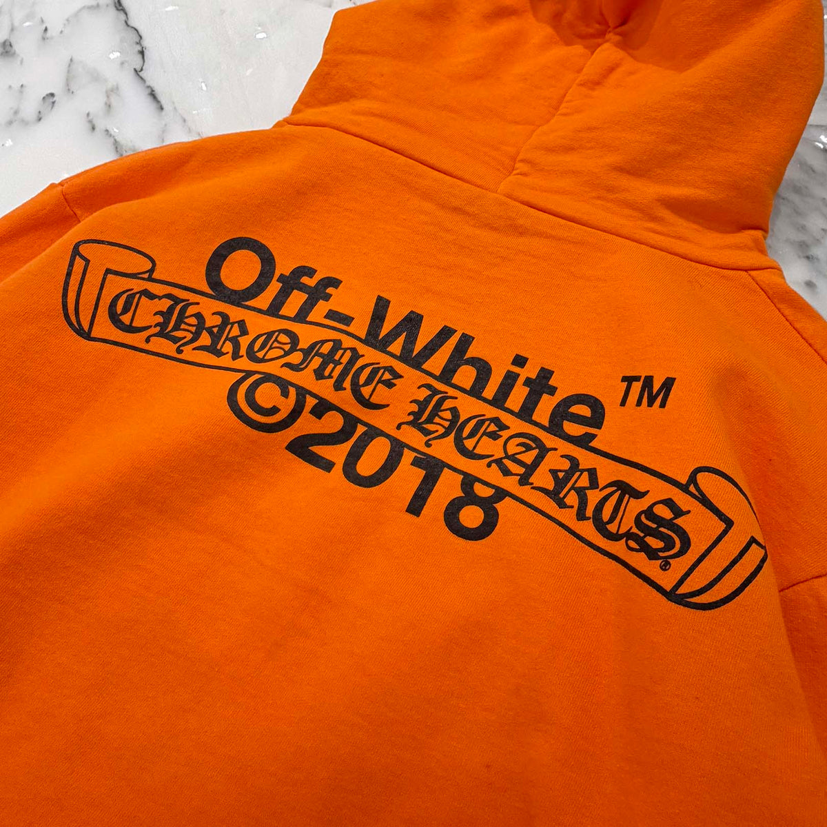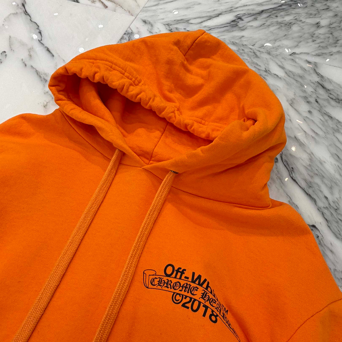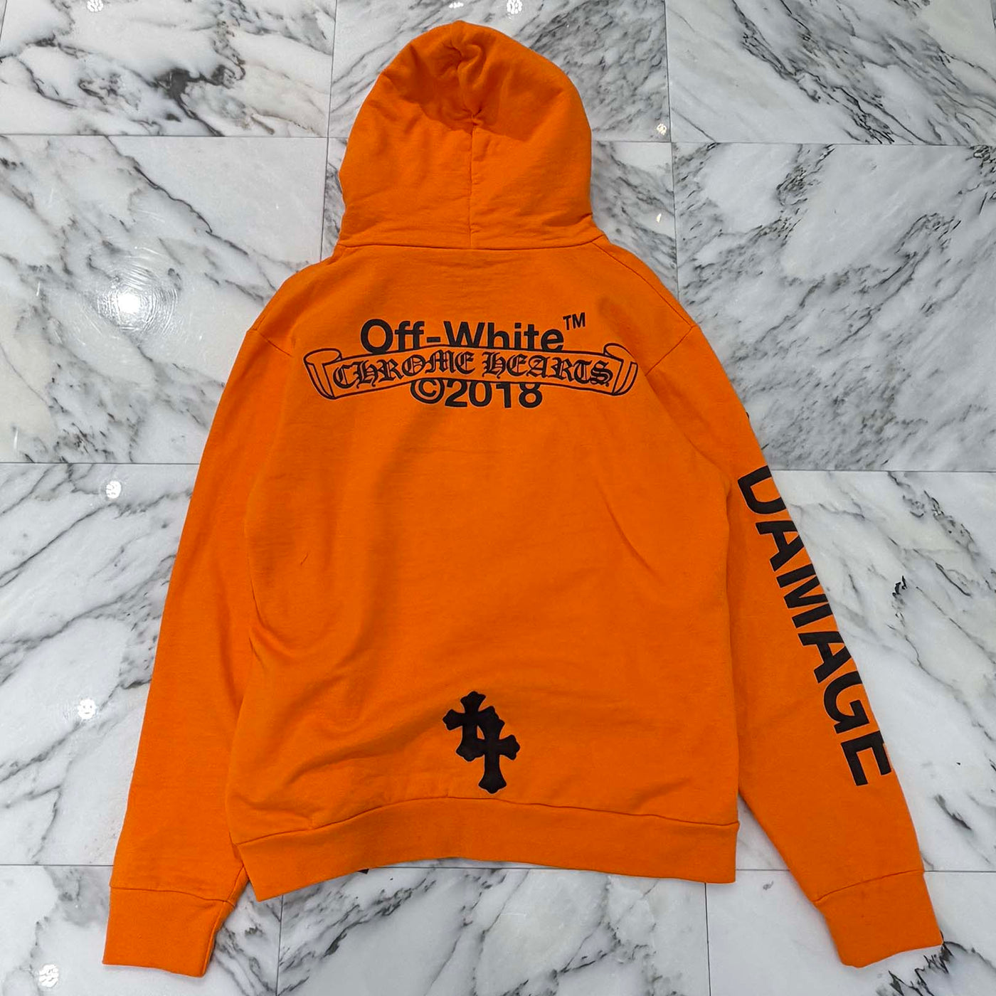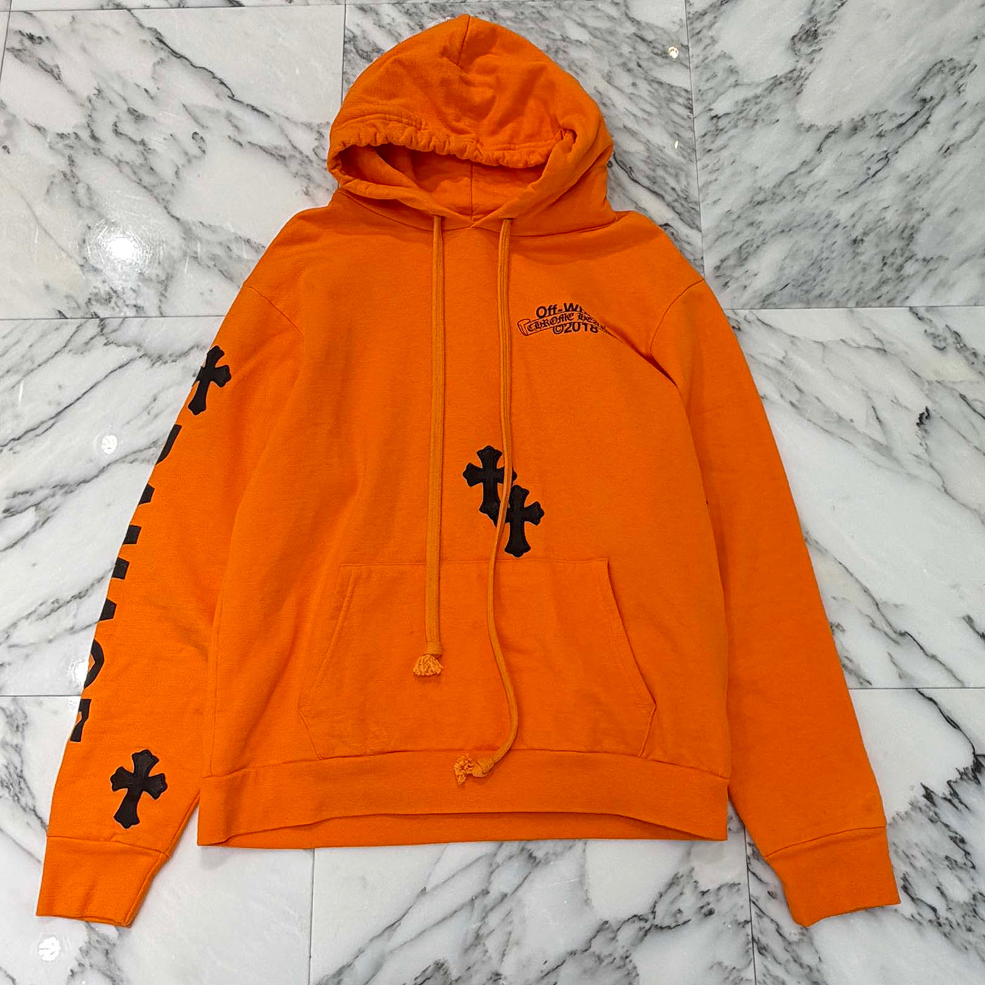 CHROME HEARTS × OFF-WHITE 2018SS Leather Cross Patch HD PLVR V Size L クロムハーツ × オフホワイト レザークロスパッチ プルオーバーフーディ サイズL