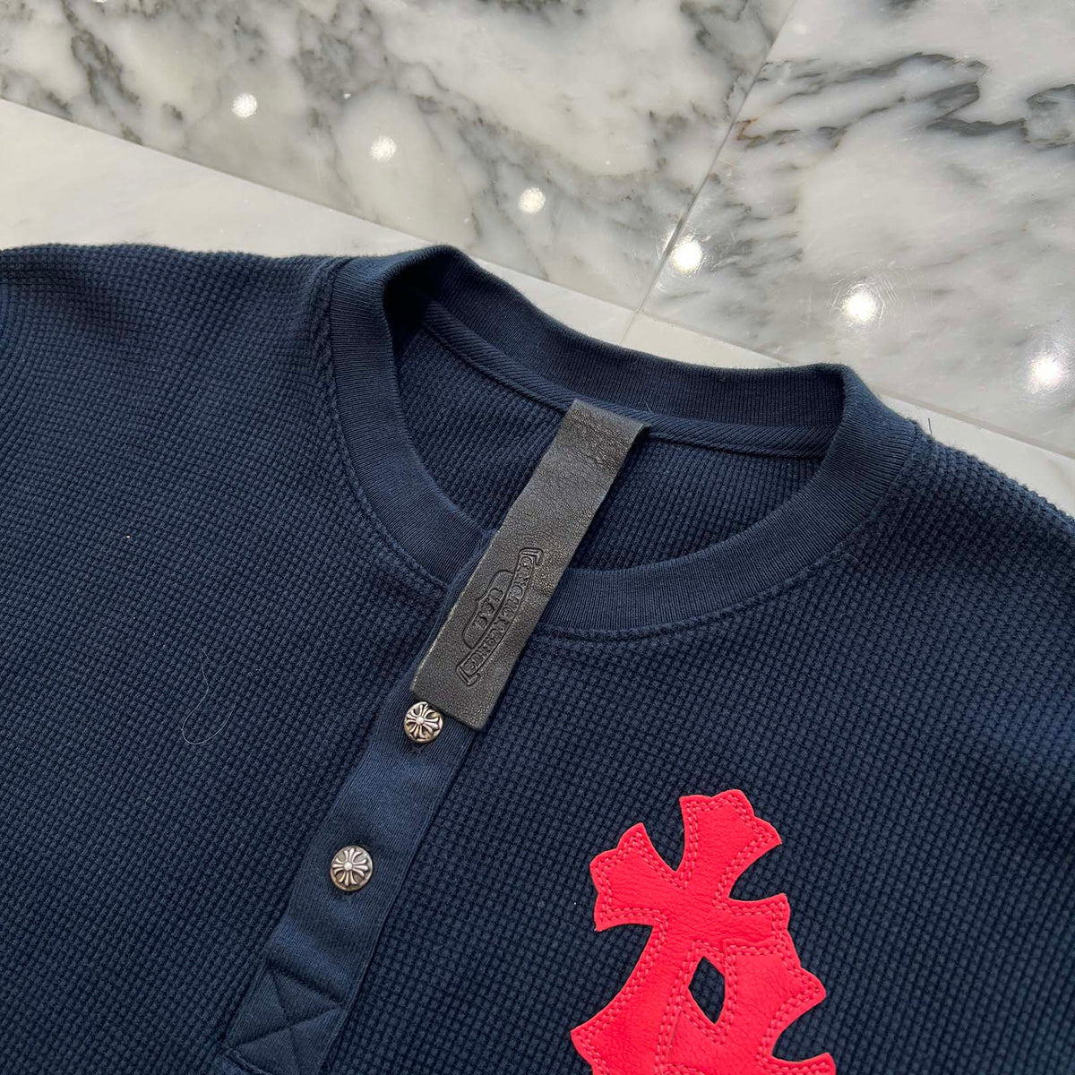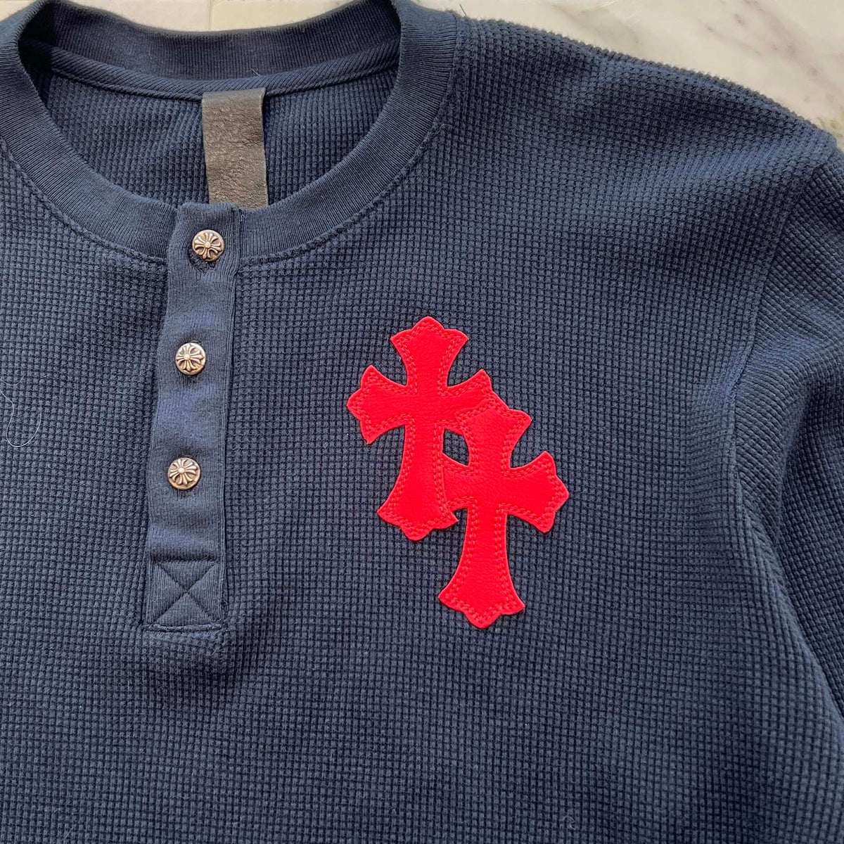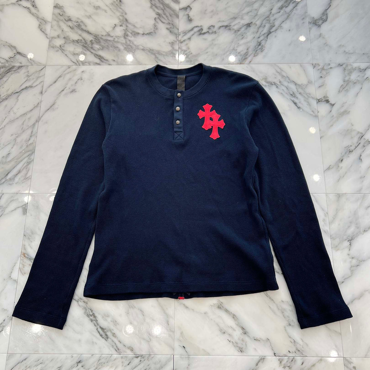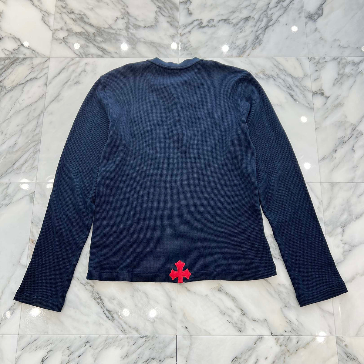 CHROME HEARTS Y NOT Leather Cross Patch Polo Thermal Long Sleeve Tee Size S クロムハーツ ワイノット レザークロスパッチ ポロ サーマル ロングスリーブ Tシャツ サイズS