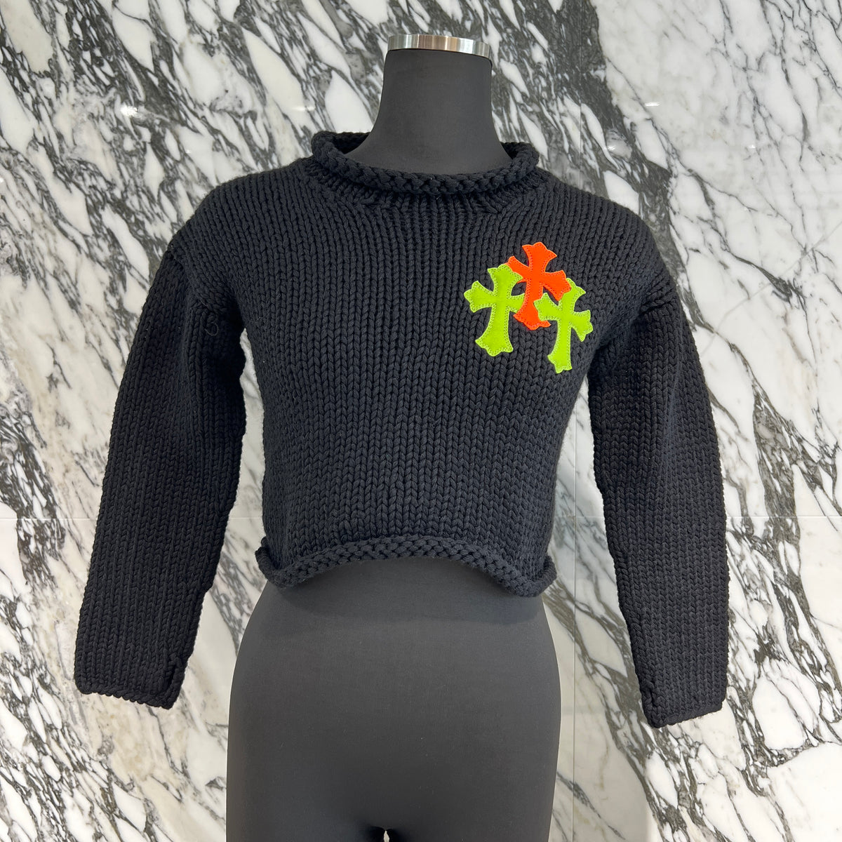 CHROME HEARTS 3 Cross Leather Patch Cashmere Cropped Knit Sweater Size 8Y クロムハーツ 3 クロスレザーパッチ カシミヤ クロップド ニットセーター サイズ8Y