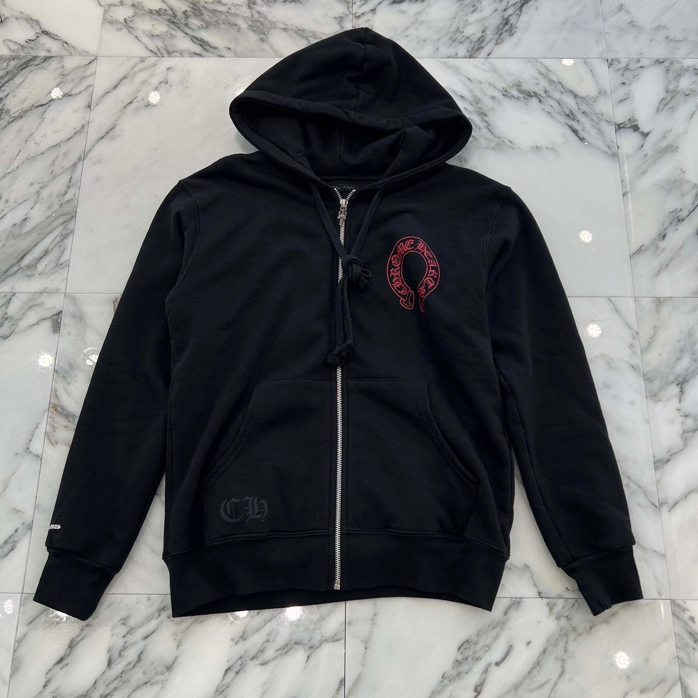 CHROME HEARTS Red Horseshoe Cemetery Cross Zip Up Hoodie Size S クロムハーツ レッド ホースシュー セメタリークロス ジップアップフーディ サイズS