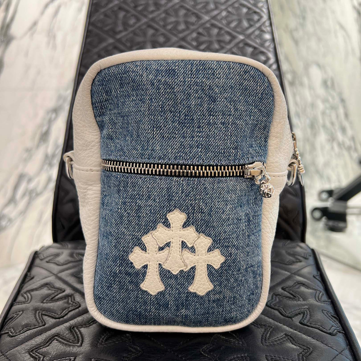 CHROME HEARTS TAKAMINI 3 Cemetery Cross Patch Denim Shoulder Bag クロムハーツ タカミニ 3セメタリークロスパッチデニムショルダーバッグ