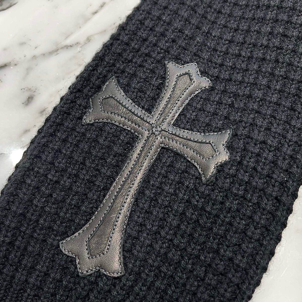 CHROME HEARTS Y NOT Cross Leather Patch Cashmere Knit Sweater Size S クロムハーツ ド ワイノット クロスレザーパッチ カシミヤ ニット セーター サイズS