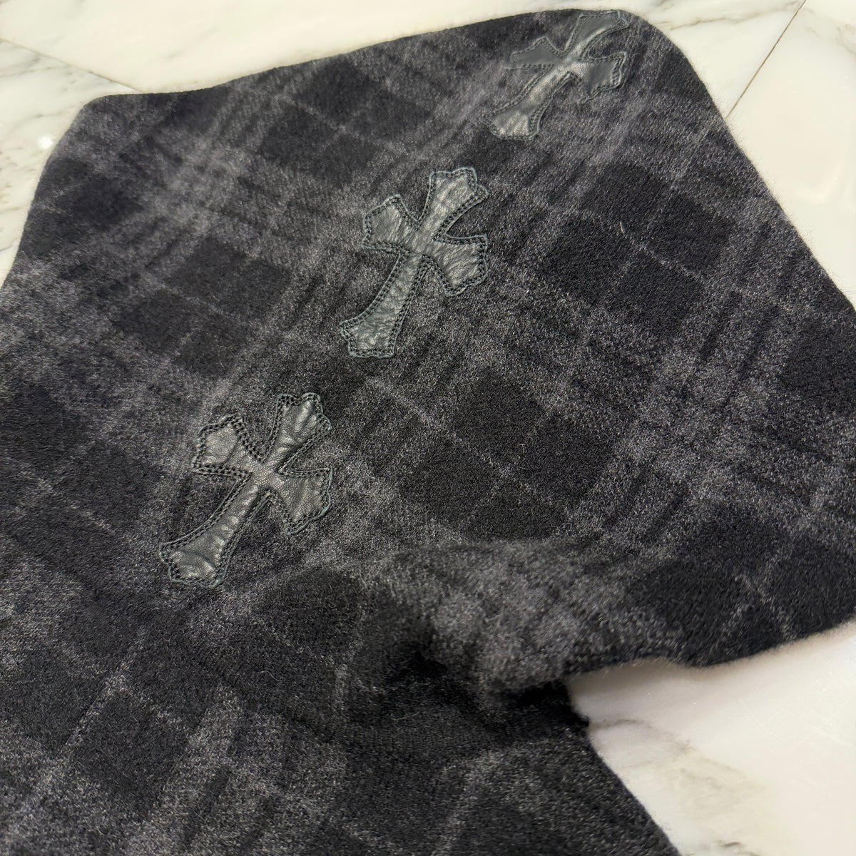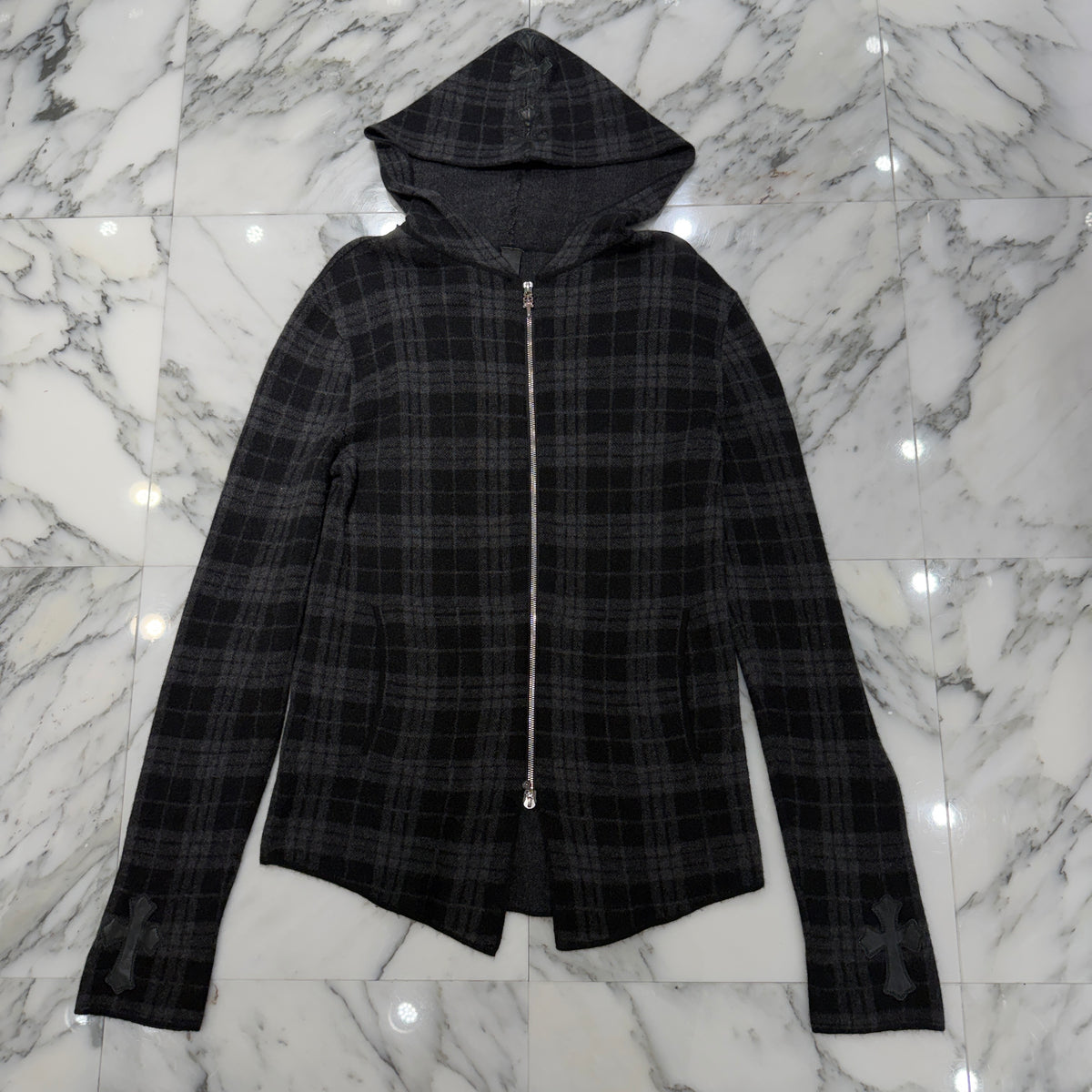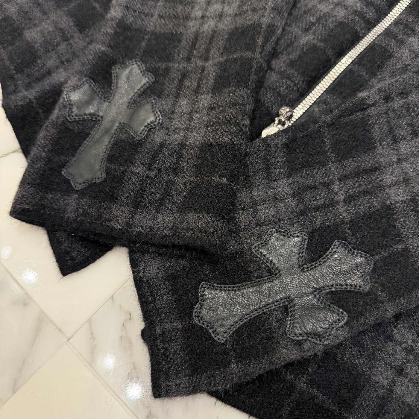 CHROME HEARTS Y NOT Leather Cross Patch Cashmere Zip Up Hoodie Size M クロムハーツ ワイノット レザークロスパッチ カシミヤ ジップアップ フーディ サイズM