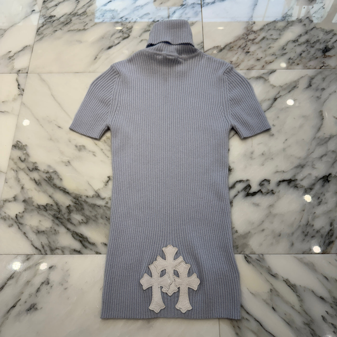 CHROME HEARTS Y NOT Triple Cross Leather Patch Cashmere Short Sleeve Knit Dress Size S クロムハーツ ワイノット トリプルクロスレザーパッチ カシミア ショートスリーブニット ワンピース サイズS