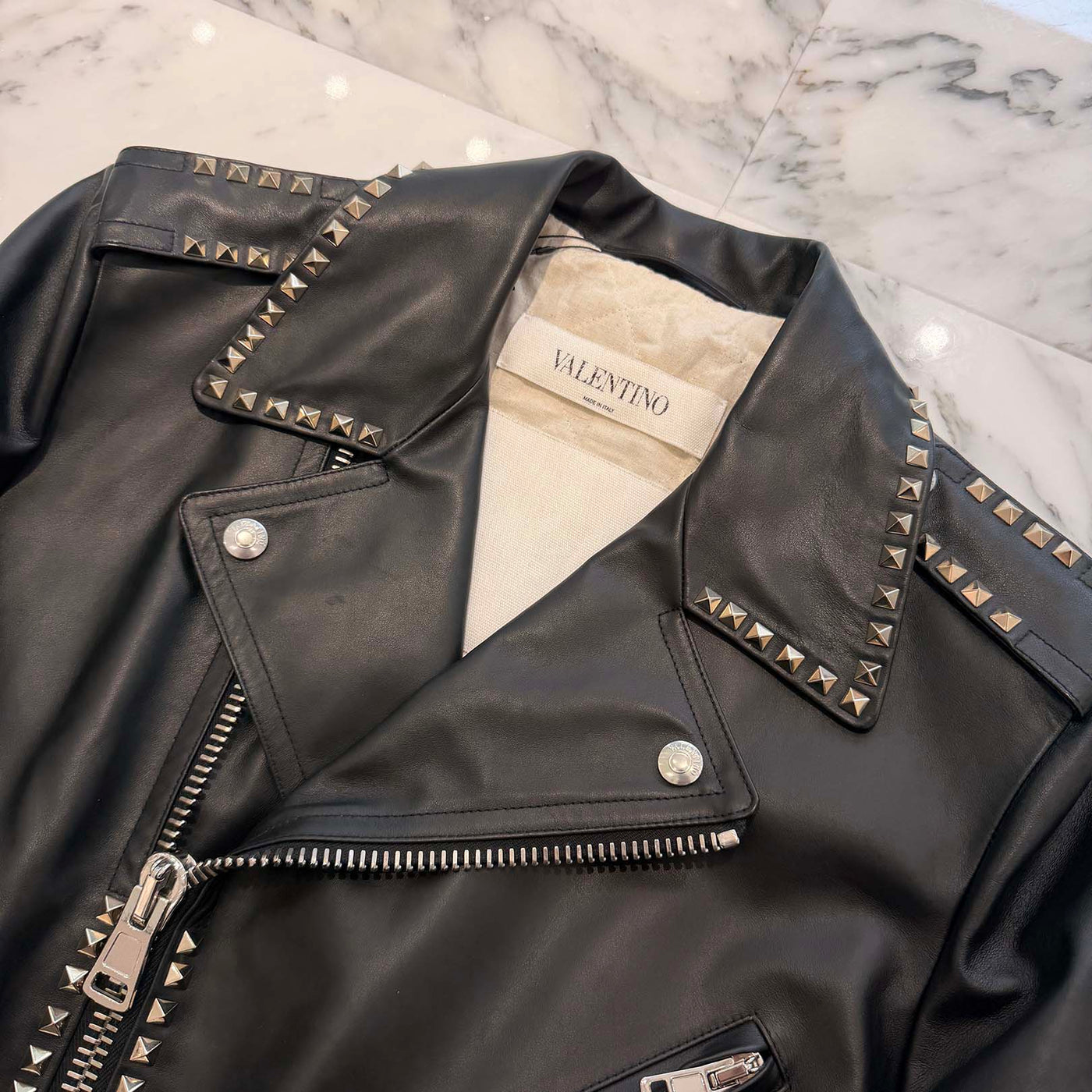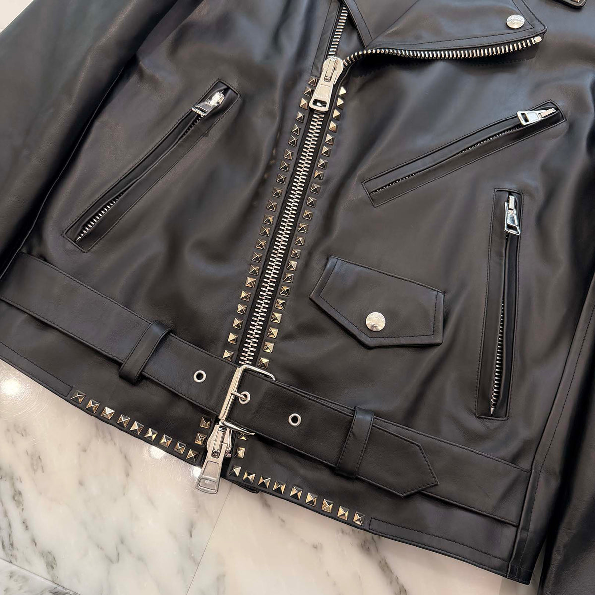 VALENTINO Rock Stud Leather Double Rider Jacket Size 46 ヴァレンティノ ロックスタッズ レザー ダブルライダースジャケット サイズ46