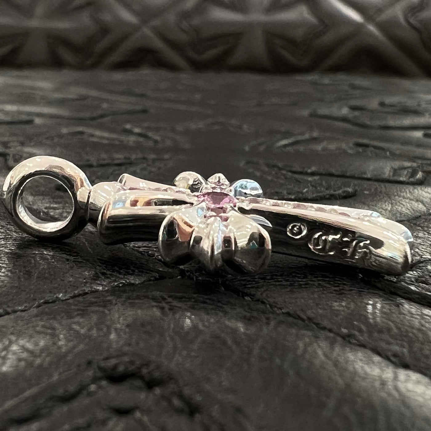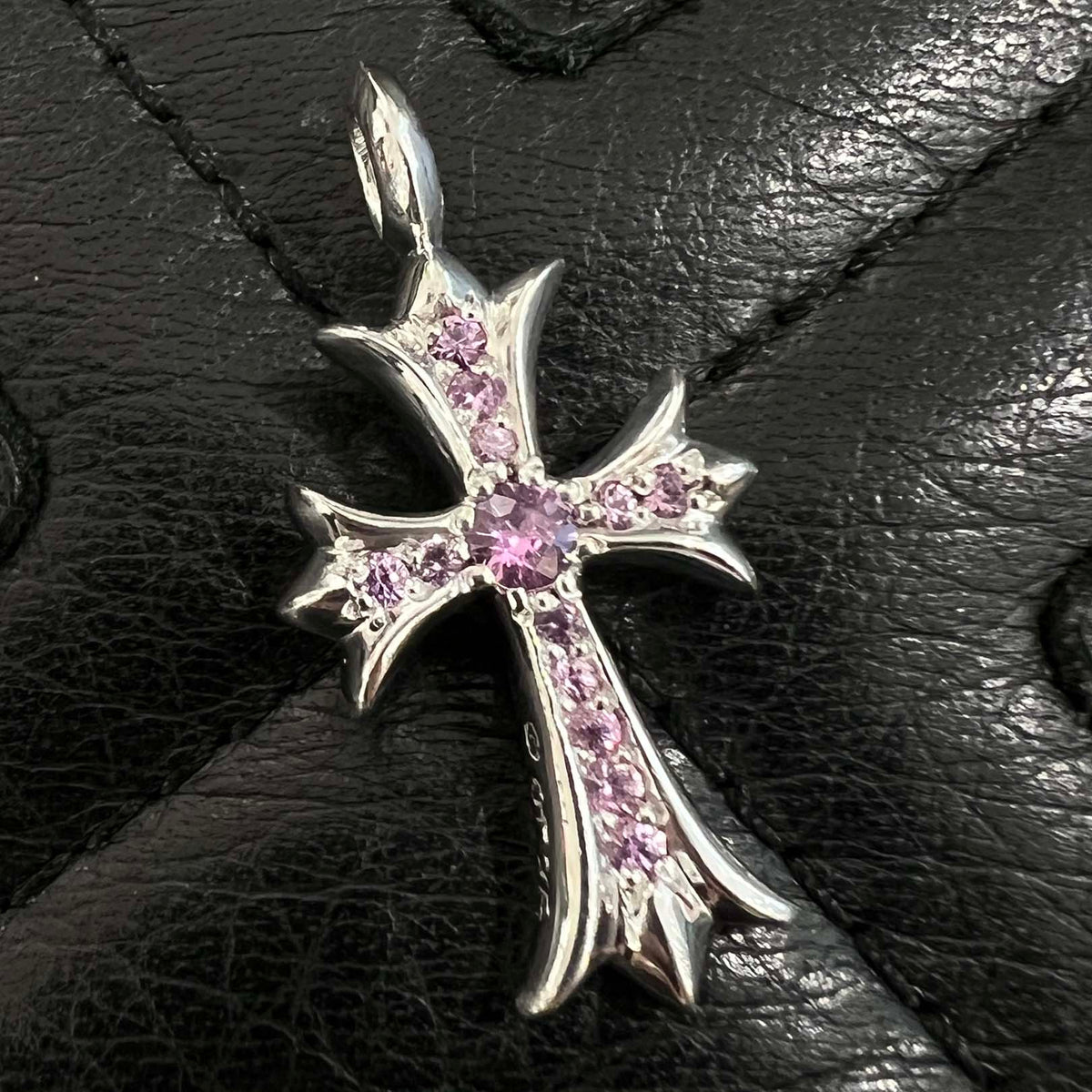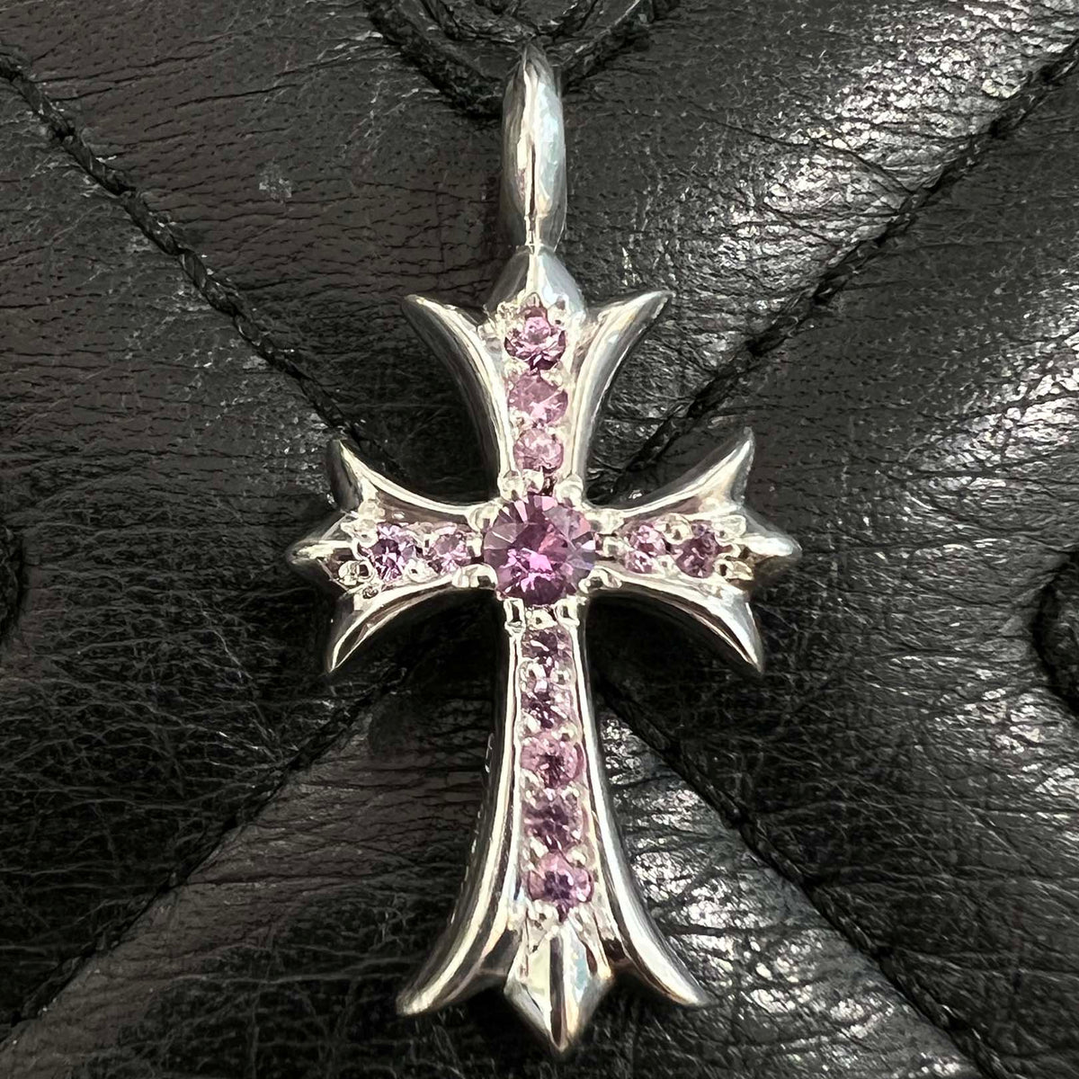 CHROME HEARTS 18K WG Tiny Fat Cross Pave Pink Sapphire Pendant Top 18K ホワイトゴールド クロムハーツ タイニーファットクロス パヴェピンクサファイア ペンダントトップ