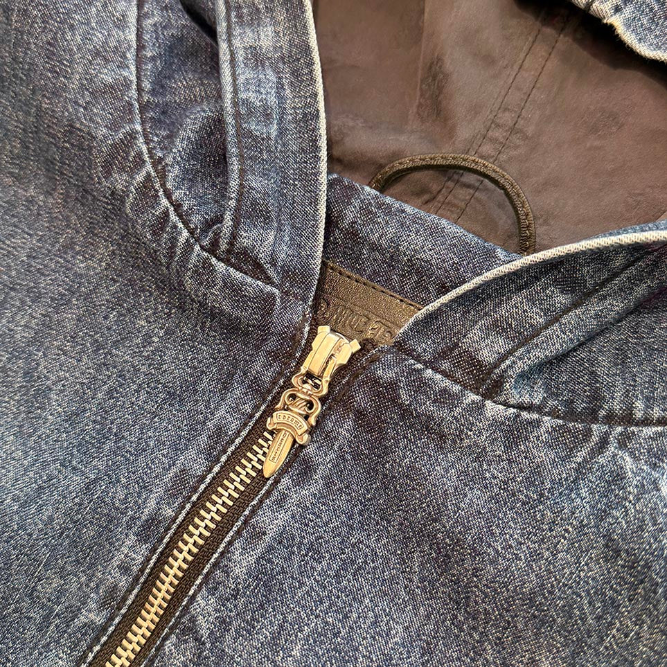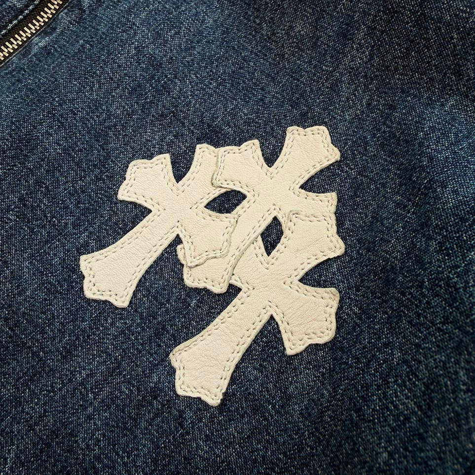 CHROME HEARTS 2024AW Leather Cemetery Triple Cross Denim Anorak Jacket Size XL クロムハーツ レザーセメタリートリプルクロス デニム アノラック ジャケット サイズXL