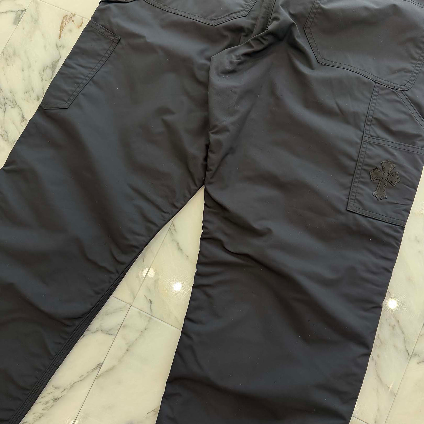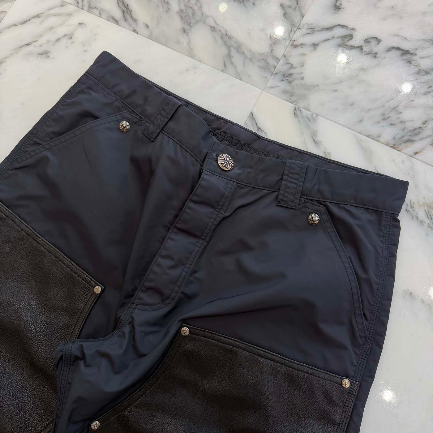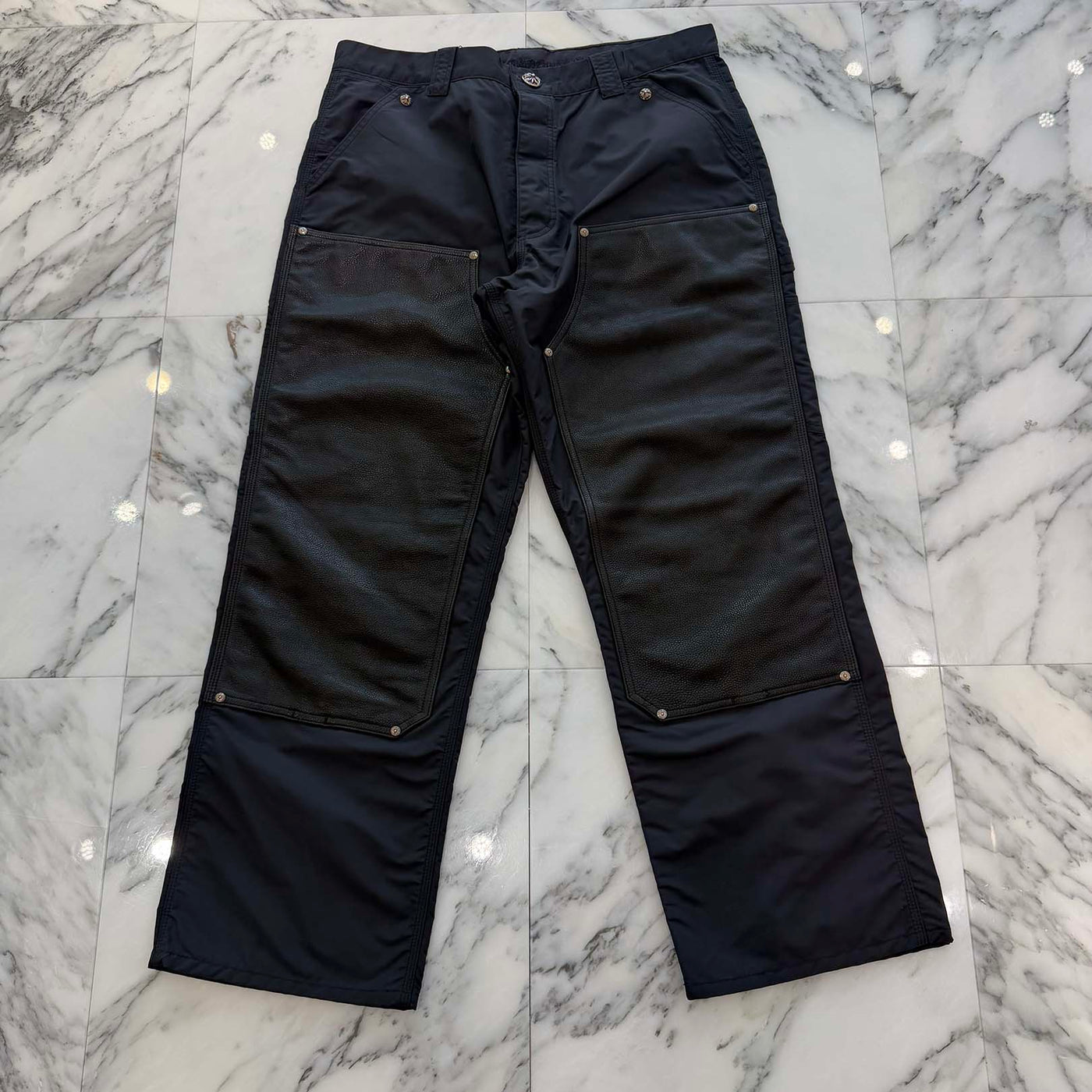 CHROME HEARTS Carpenter Leather Cross Patch Nylon Leather Work Pants Size 36 クロムハーツ カーペンター レザークロスパッチ ナイロン レザー 切替 ワークパンツ サイズ36
