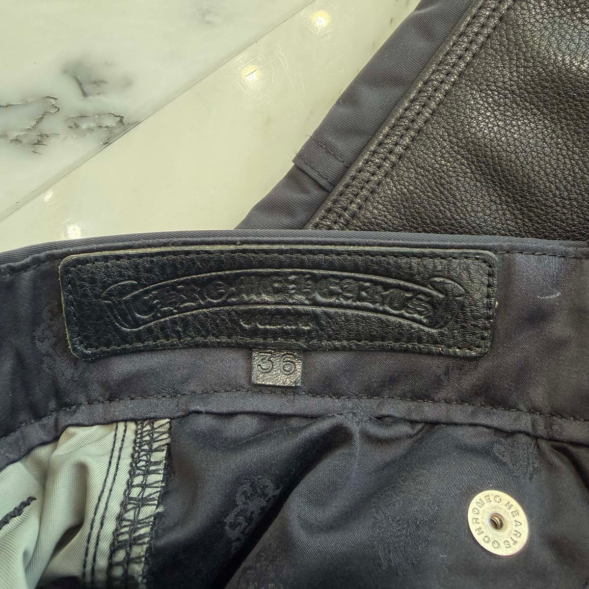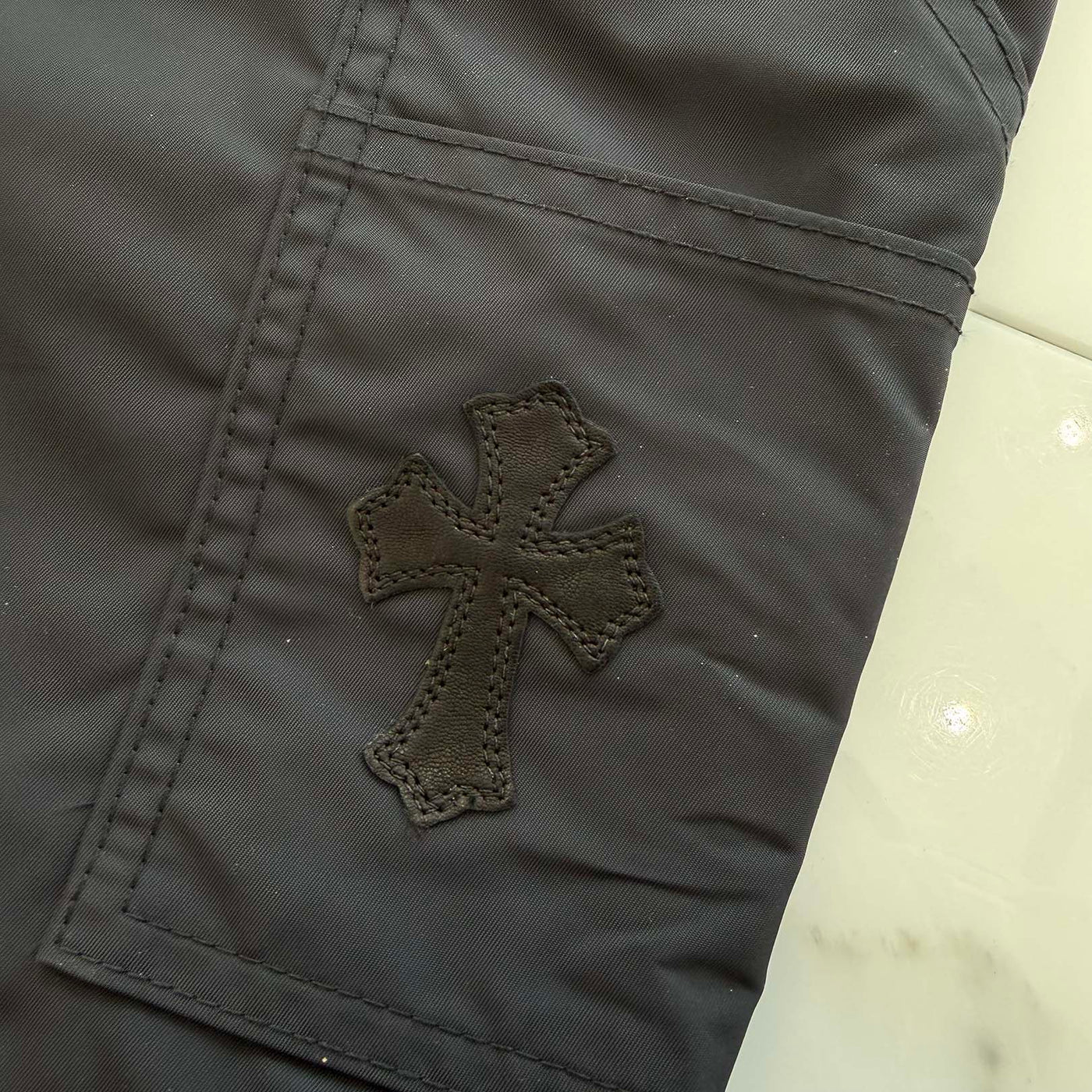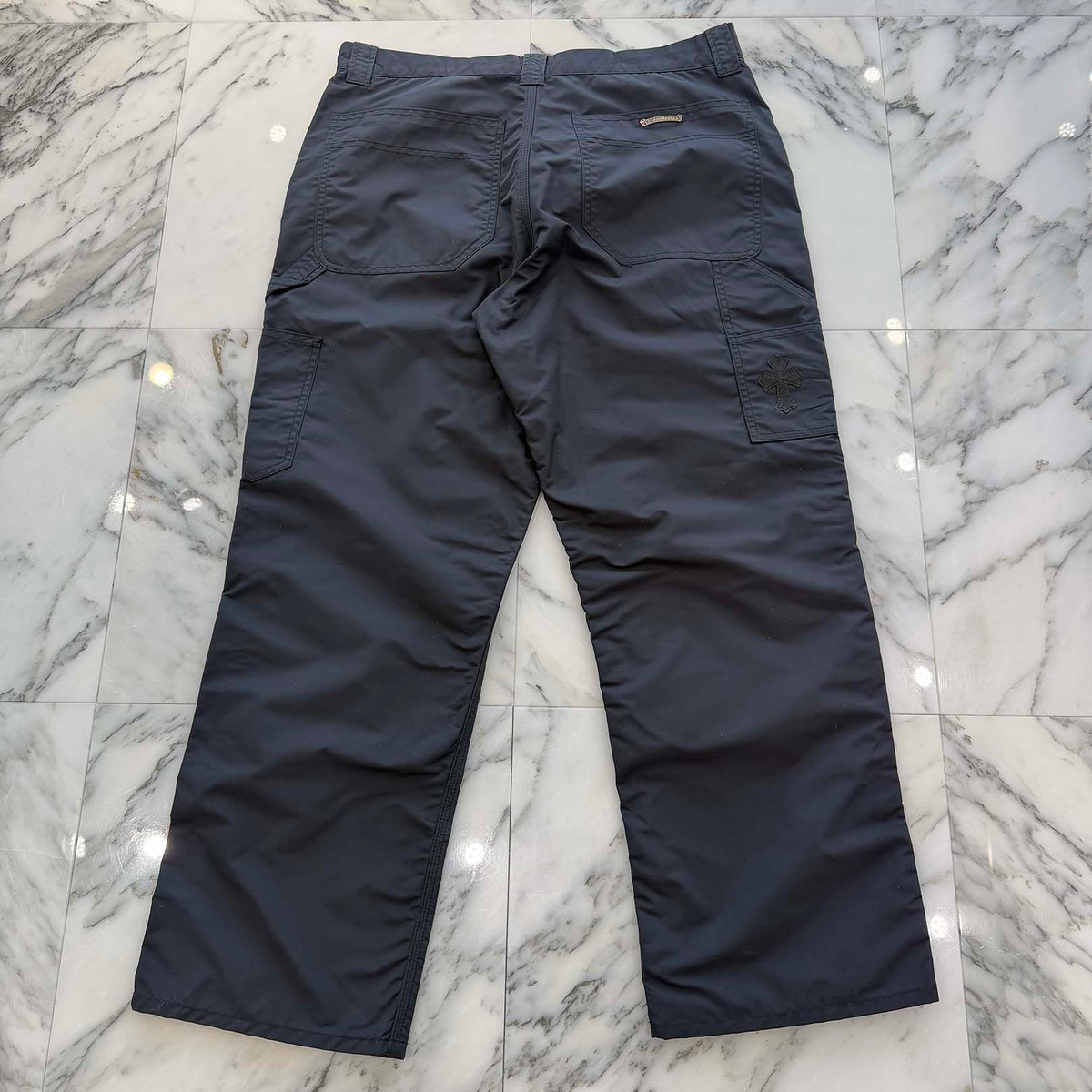 CHROME HEARTS Carpenter Leather Cross Patch Nylon Leather Work Pants Size 36 クロムハーツ カーペンター レザークロスパッチ ナイロン レザー 切替 ワークパンツ サイズ36