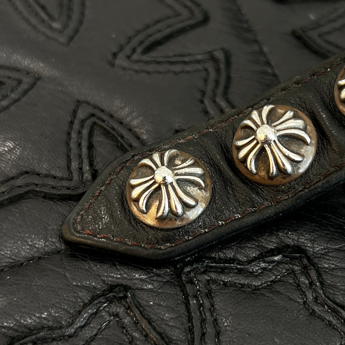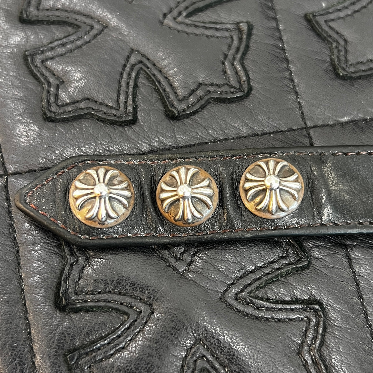 CHROME HEARTS 3BTN 2SNP LEATHER BRACELET クロムハーツ クロスボール 3ボタン 2スナップ レザーブレスレット