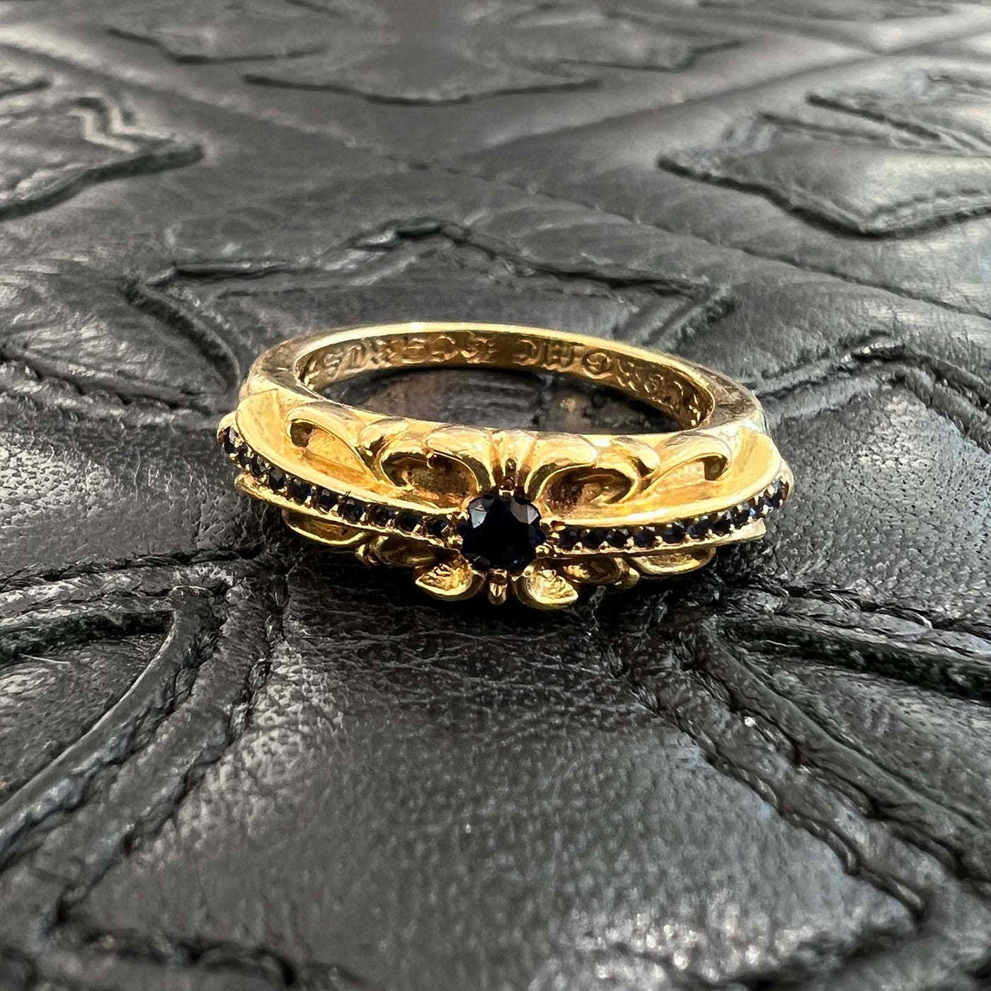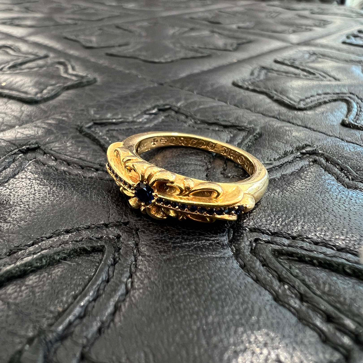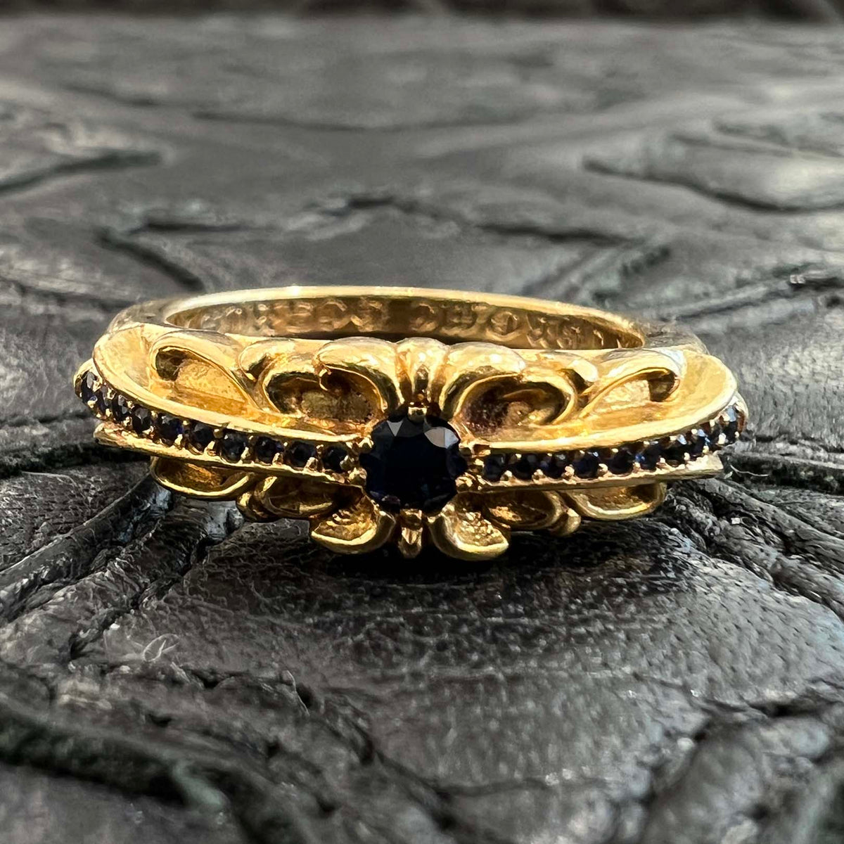 CHROME HEARTS 22K Baby Classic Floral Cross Ring Sapphire Size 13号 クロムハーツ 22K ベイビークラシック フローラルクロス リング サファイヤ サイズ13号