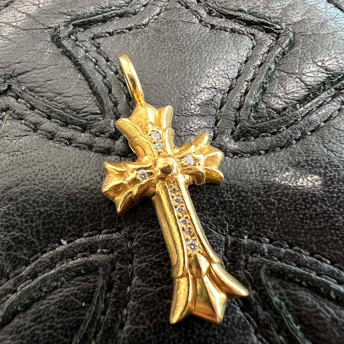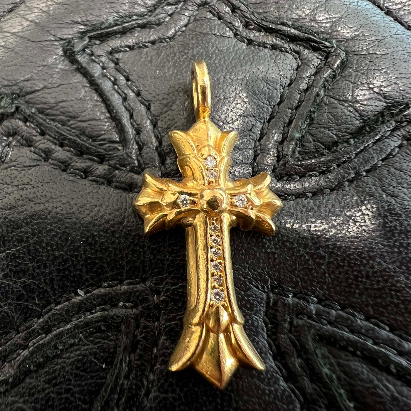 CHROME HEARTS 22K Double CH Cross Charm Pave Diamond Pendant Top クロムハーツ 22K ダブルCHクロス チャーム パヴェダイヤモンド ペンダントトップ