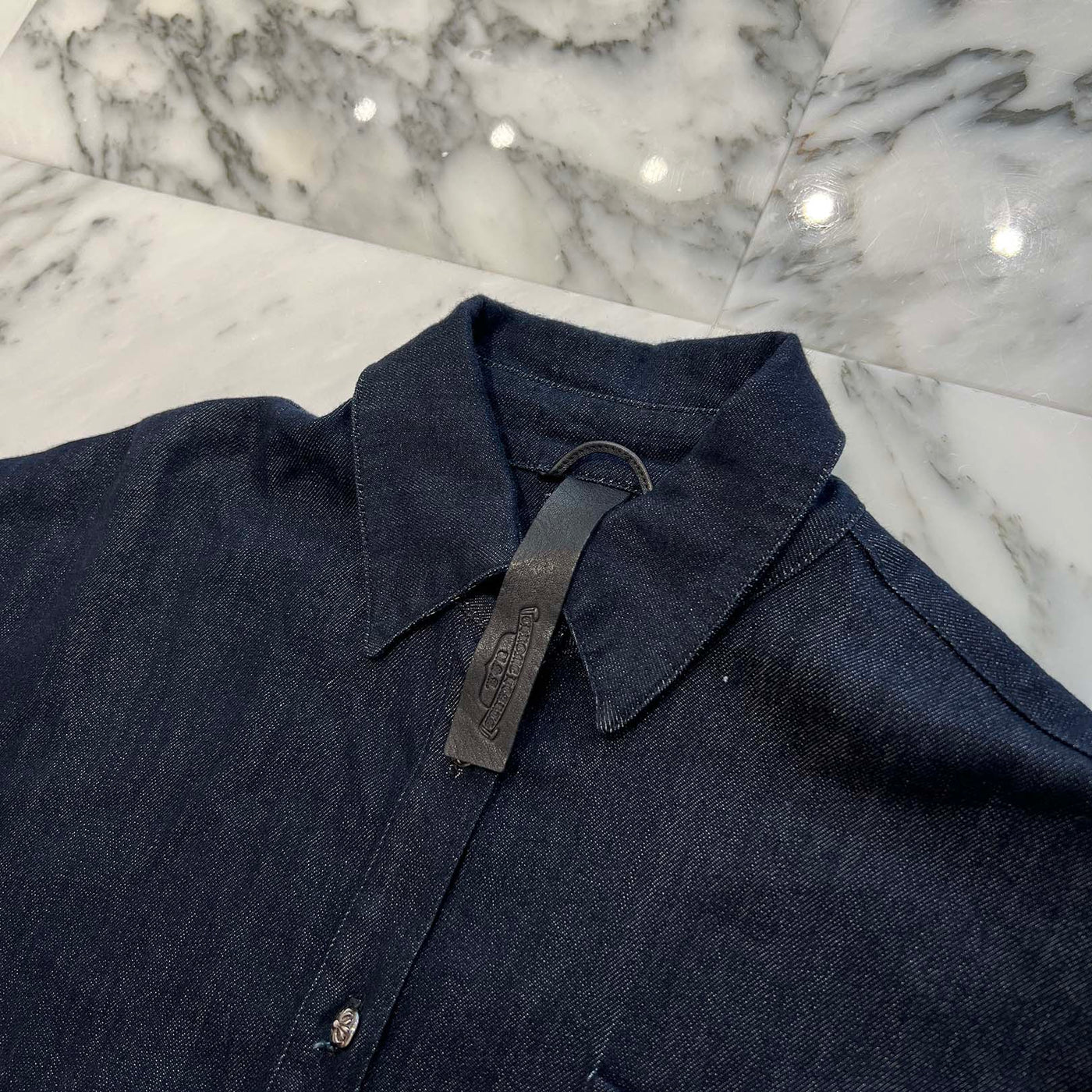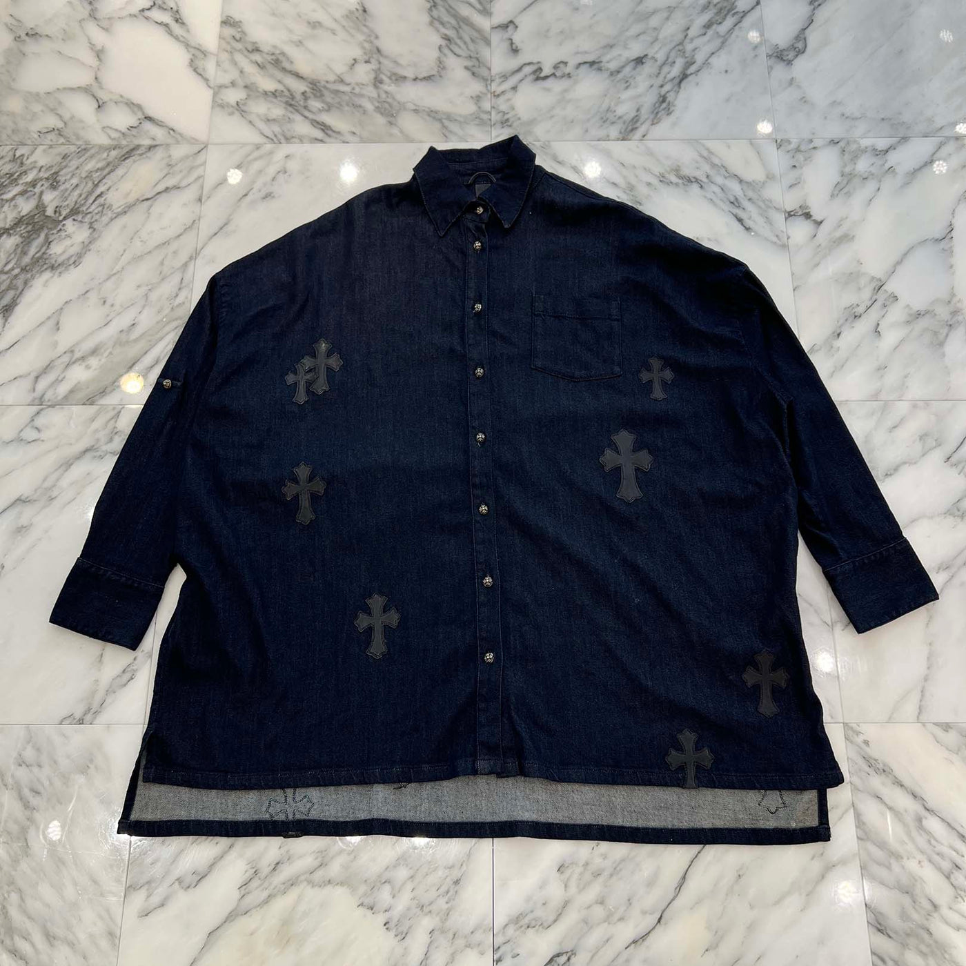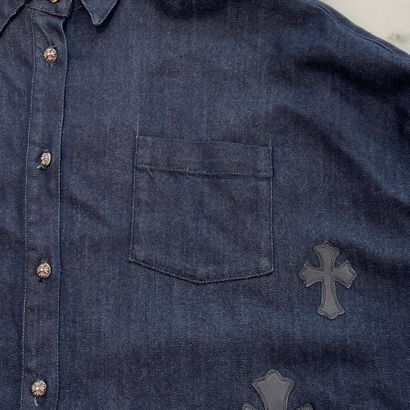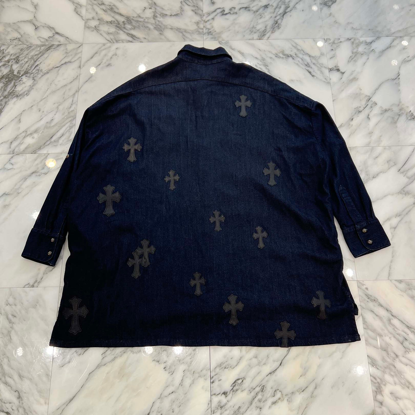 CHROME HEARTS Y NOT Mahal Kita Cemetery Cross Leather Patch Denim Shirt Size S クロムハーツ ワイノット マハルキタ セメタリークロスレザーパッチ デニムシャツ サイズS